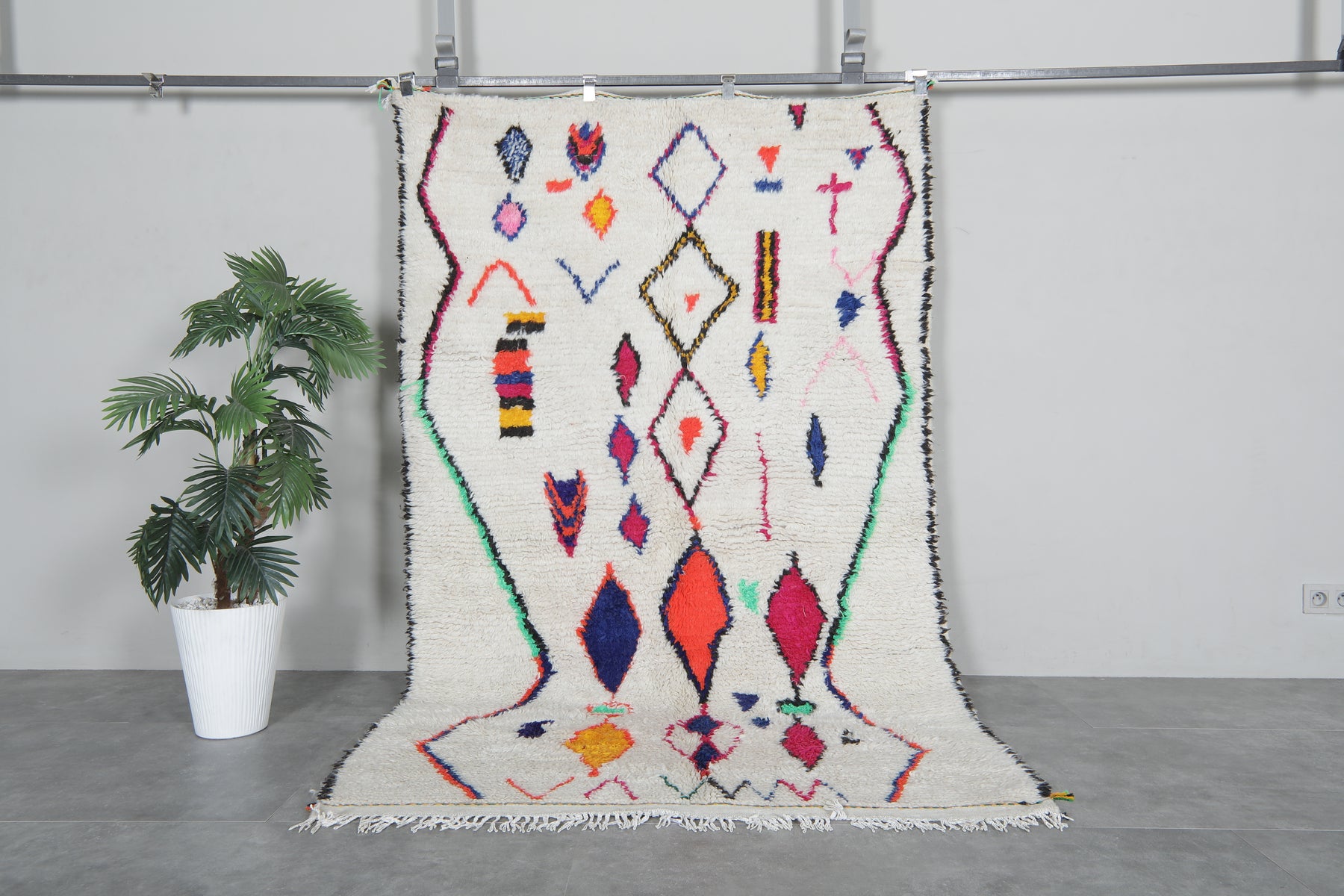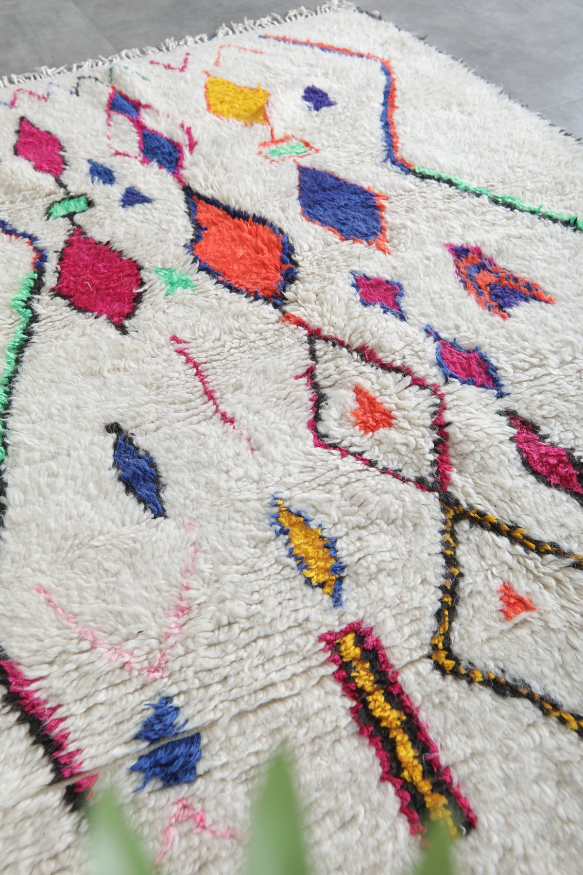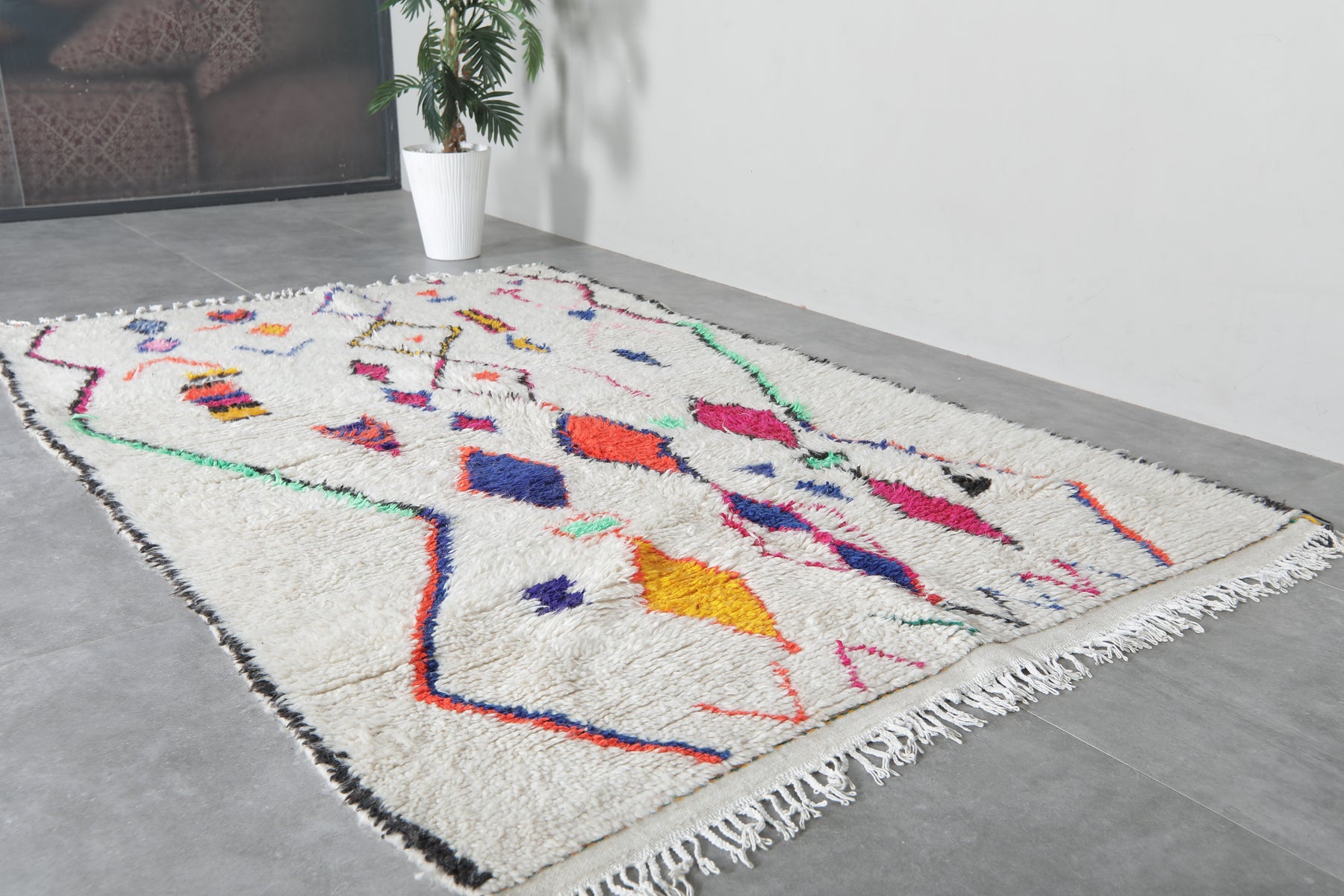 Bring the beauty of Moroccan craftsmanship to your home with this Handmade Berber Rug, sized at 4.7 x 7.6 feet (146 CM x 233 CM). Featuring intricate, colorful motifs inspired by traditional Berber culture, this rug is a vibrant centerpiece for any space.