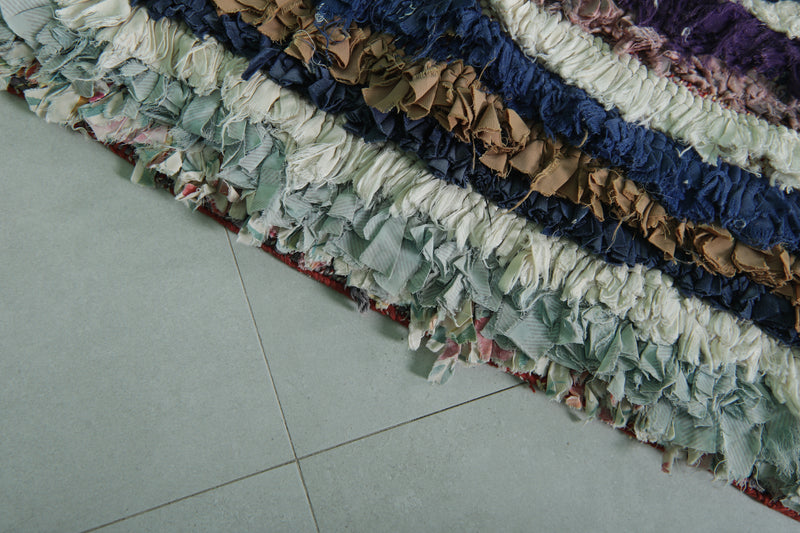 Add warmth and texture to your home with this Colorful Moroccan Berber Rug, measuring 2.6 x 5.6 FT. Featuring vibrant striped patterns in earthy and bold tones, this handwoven rug brings traditional Moroccan craftsmanship to modern spaces. Perfect for entryways, living rooms, or as an accent rug, it is crafted from recycled materials, ensuring sustainability and uniqueness. Durable and versatile, this Berber rug is an eco-friendly choice that enhances any decor.