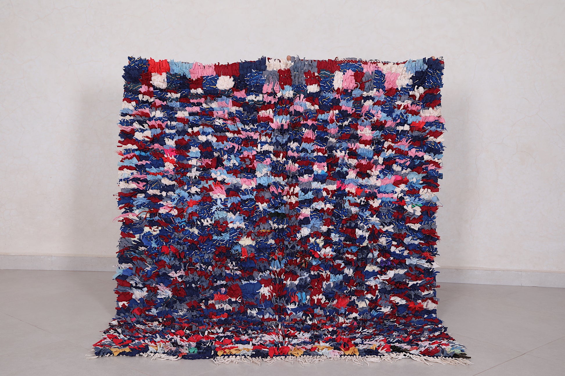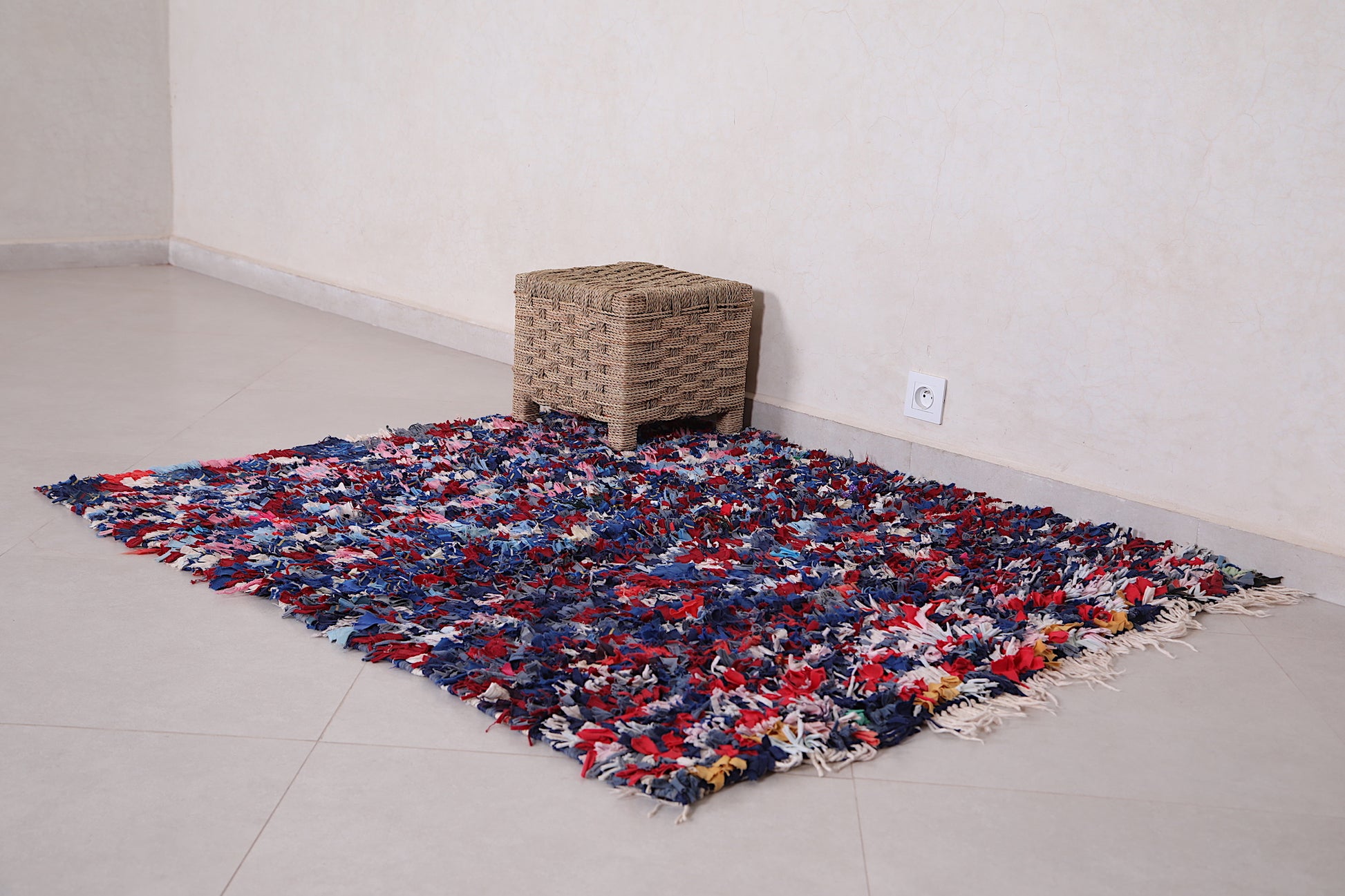 Colorful Moroccan Boucherouite Rug 4.2 x 4.9 Feet - Vibrant Handmade Decor