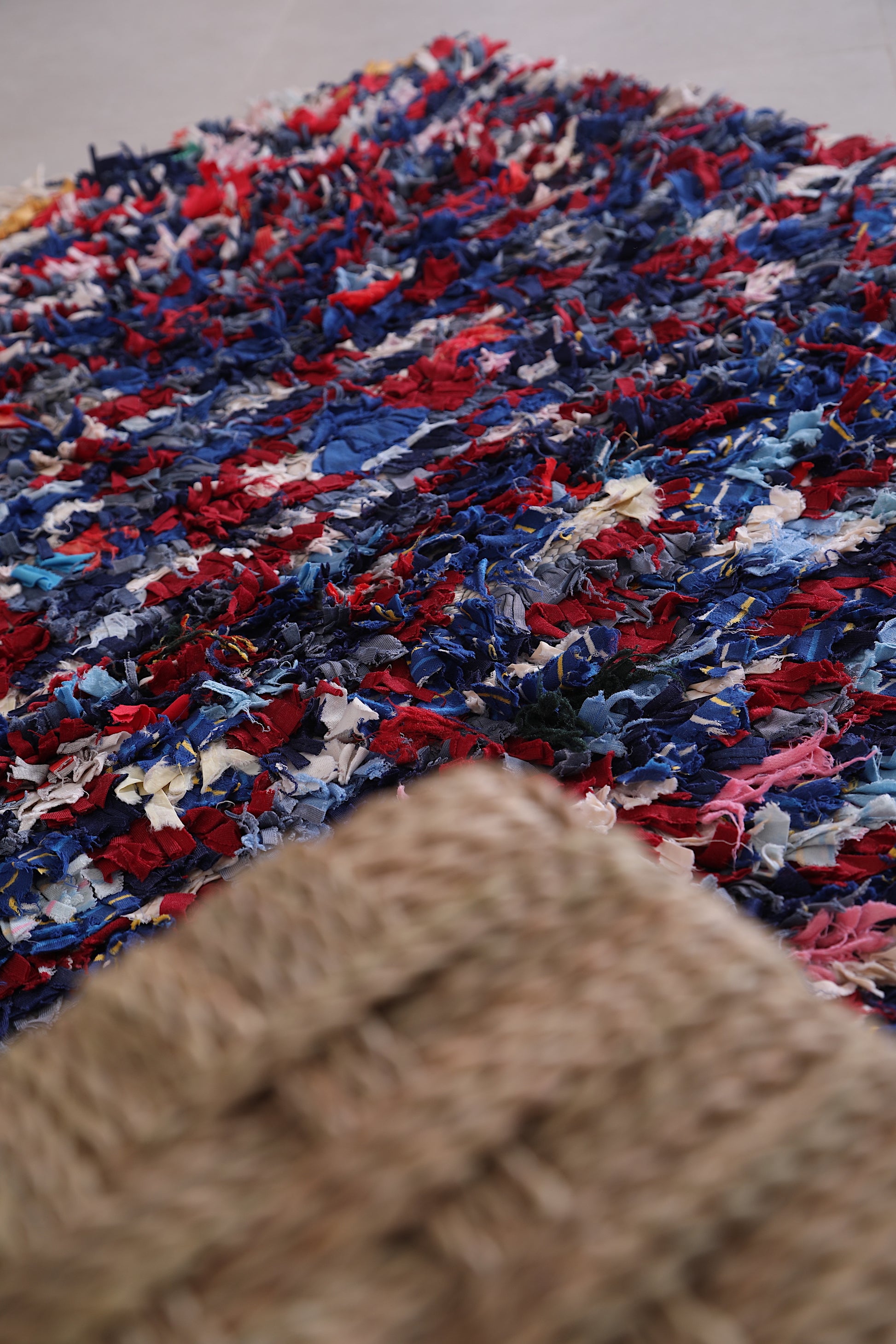 Add a splash of color to your living space with this Moroccan Boucherouite rug, measuring 4.2 FT x 4.9 FT. This handwoven piece features a vibrant mosaic of colors and textures, made from upcycled fabric scraps, showcasing traditional Berber craftsmanship. Perfect as a standout decor item for cozy areas, it brings sustainability and artistry together.