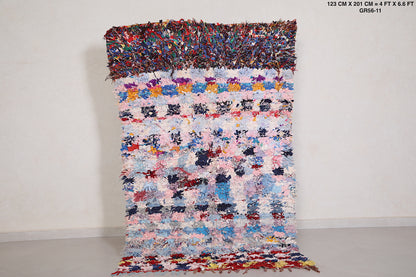 Transform your home with this handwoven Moroccan Boucherouite Rug, measuring 4 FT x 6.6 FT. Featuring a unique checkerboard design with vibrant hues and intricate textures, this eco-friendly masterpiece blends traditional craftsmanship with contemporary style.
