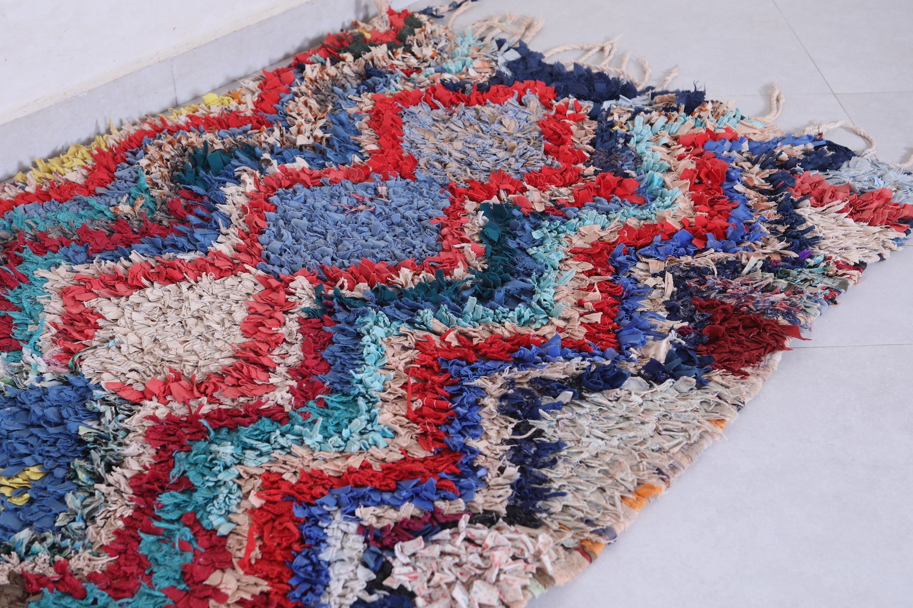 Brighten up your space with this Colorful Moroccan Boucherouite Rug (3 x 5.9 FT), a handmade eco-friendly masterpiece full of personality and charm.
