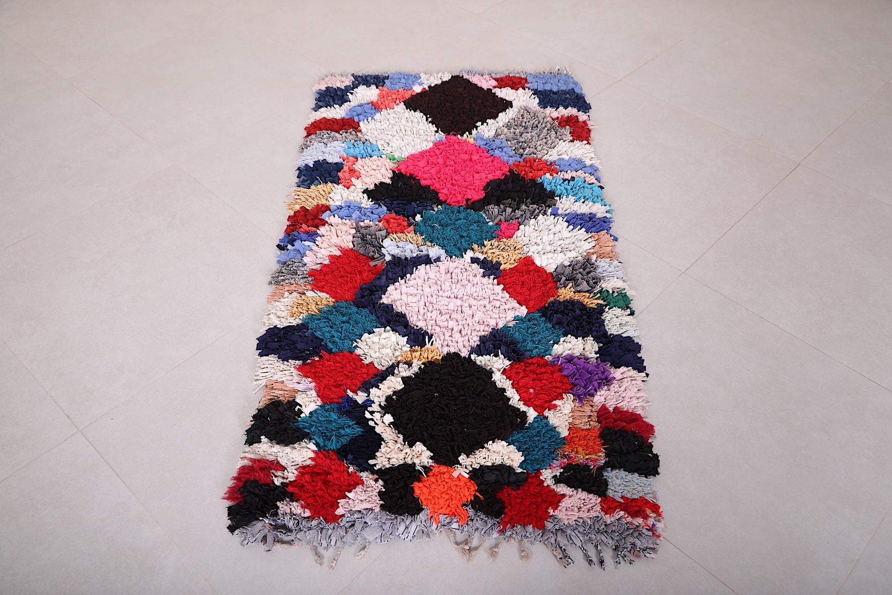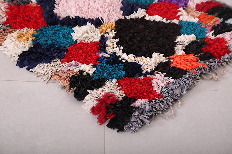 Brighten up your space with this Colorful Moroccan Boucherouite Rug, measuring 2.4 x 4.8 FT. This stunning handwoven piece showcases playful mix-bold diamond patterns in vibrant hues, bringing energy and charm to any room. Crafted from recycled textiles, it is eco-friendly and uniquely designed, perfect for smaller areas like bedrooms, entryways, or as a standout accent rug. Durable and one of a kind, this rug blends traditional Moroccan craftsmanship with modern flair.