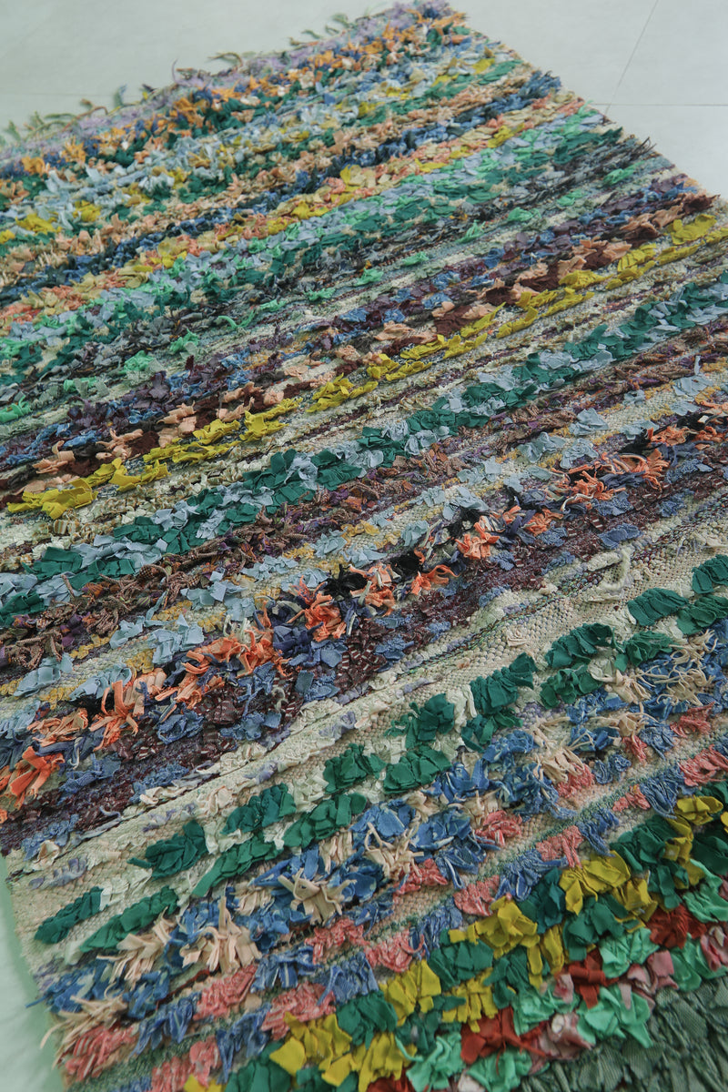 Bring warmth and vibrancy to your home with this handwoven Moroccan Boucherouite rug, featuring multicolor stripes that blend tradition with modern artistry. Measuring 3.3 x 6 feet, this stunning piece is perfect for living rooms, bedrooms, or statement areas, adding a cozy and inviting atmosphere to any space.