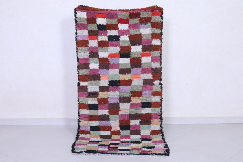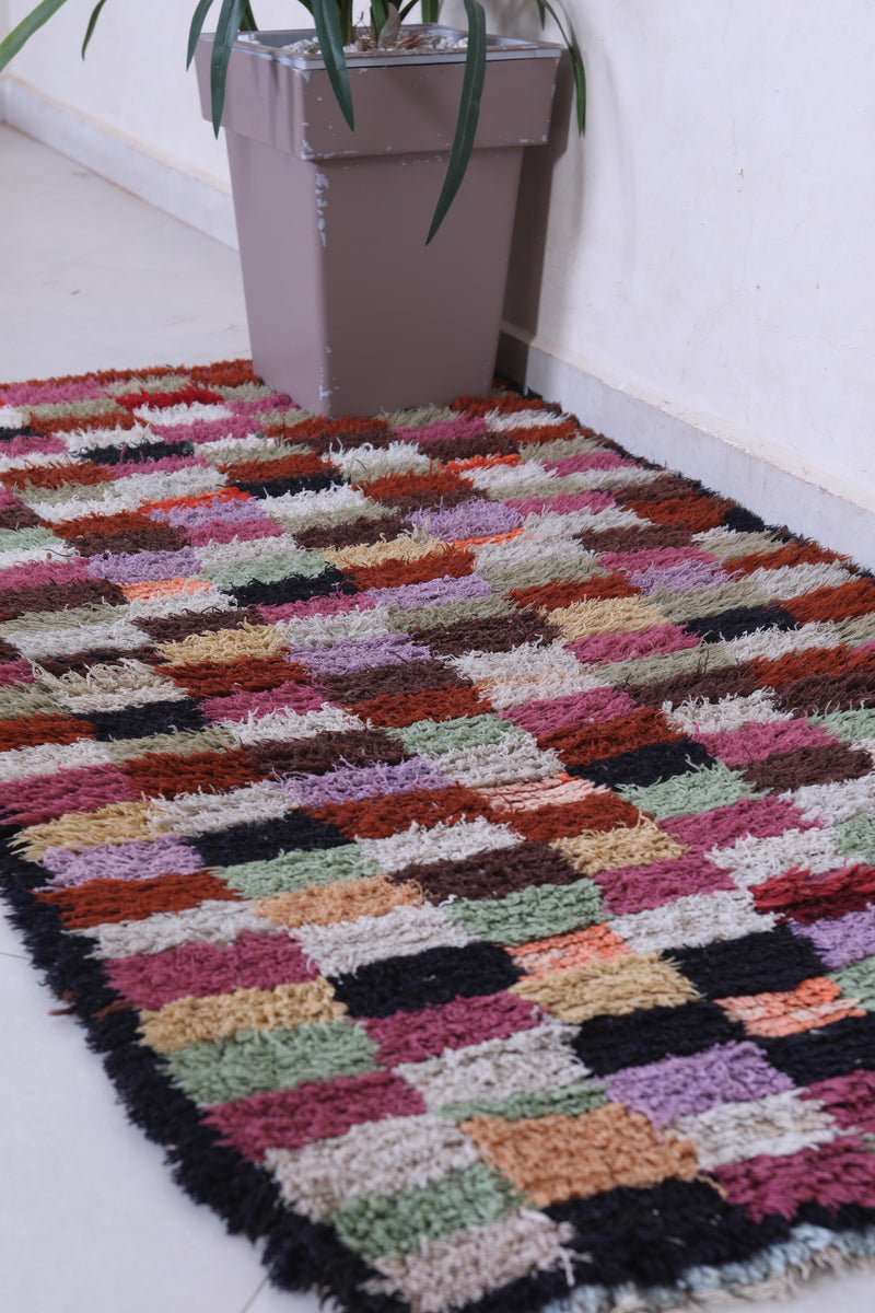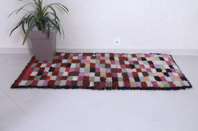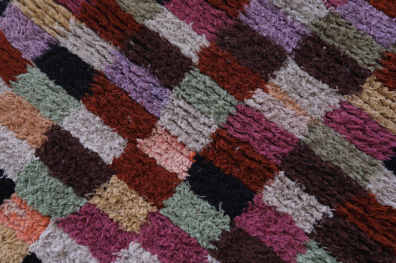 Moroccan Runner Rug – Multicolored Checkered Design 2.7 x 5.5 FT