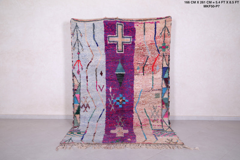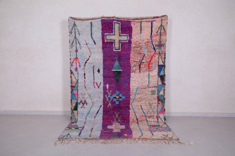 This 5.4 x 8.5 feet handmade Moroccan contemporary rug features a bold mix of vibrant colors and intricate tribal symbols, blending traditional craftsmanship with a modern artistic touch. Handwoven from high-quality wool, it offers a plush, soft, and durable texture that enhances any space. Perfect for living rooms, bedrooms, or creative interiors, this statement rug adds warmth, character, and a unique visual appeal while complementing both bohemian and eclectic décor styles.