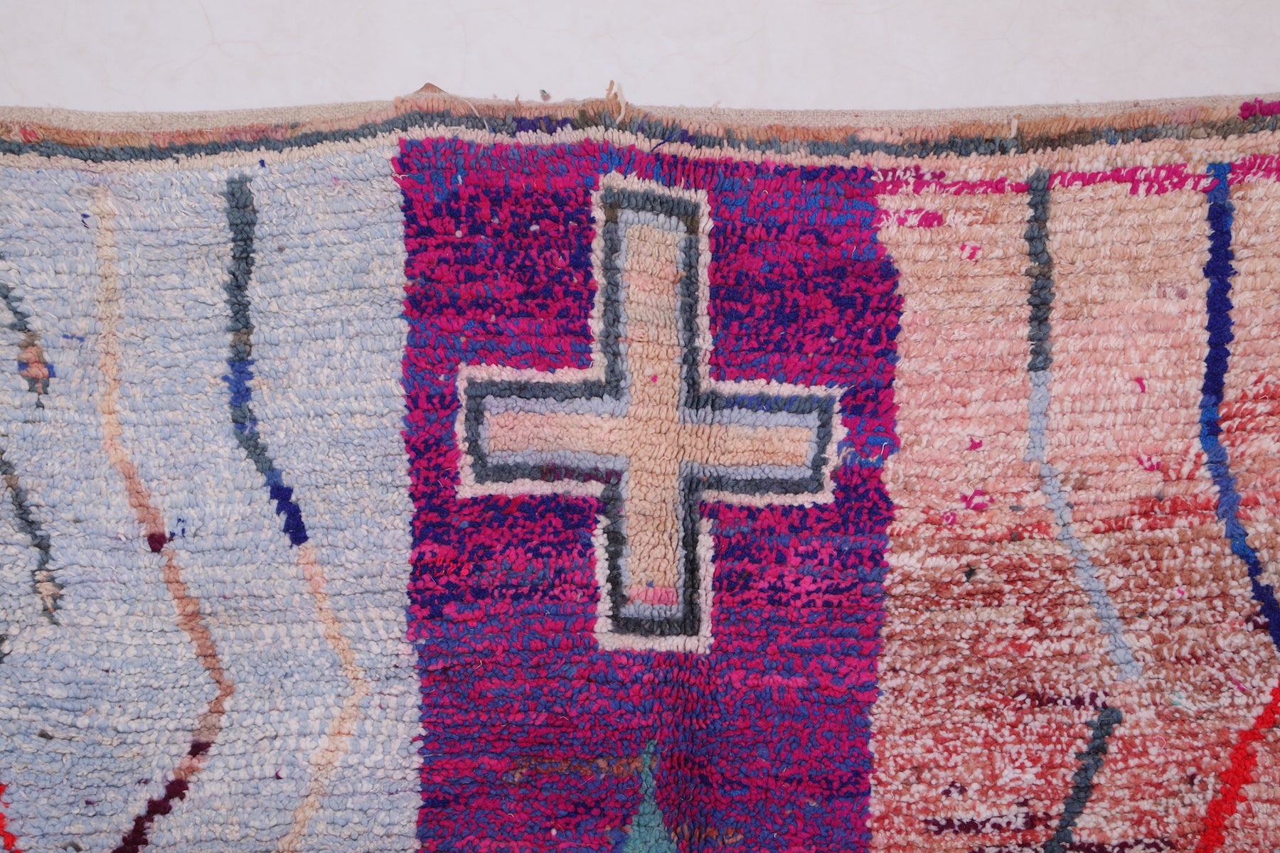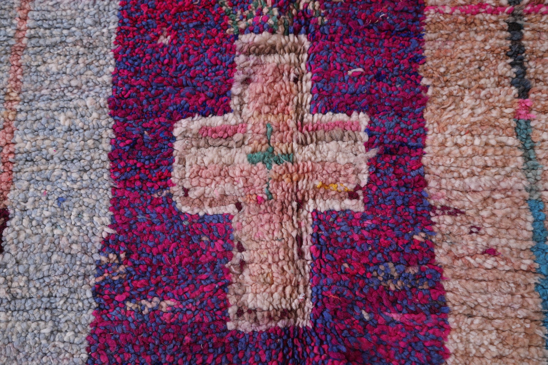 • Rich multicolored patterns with intricate Moroccan tribal symbols.