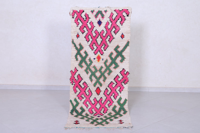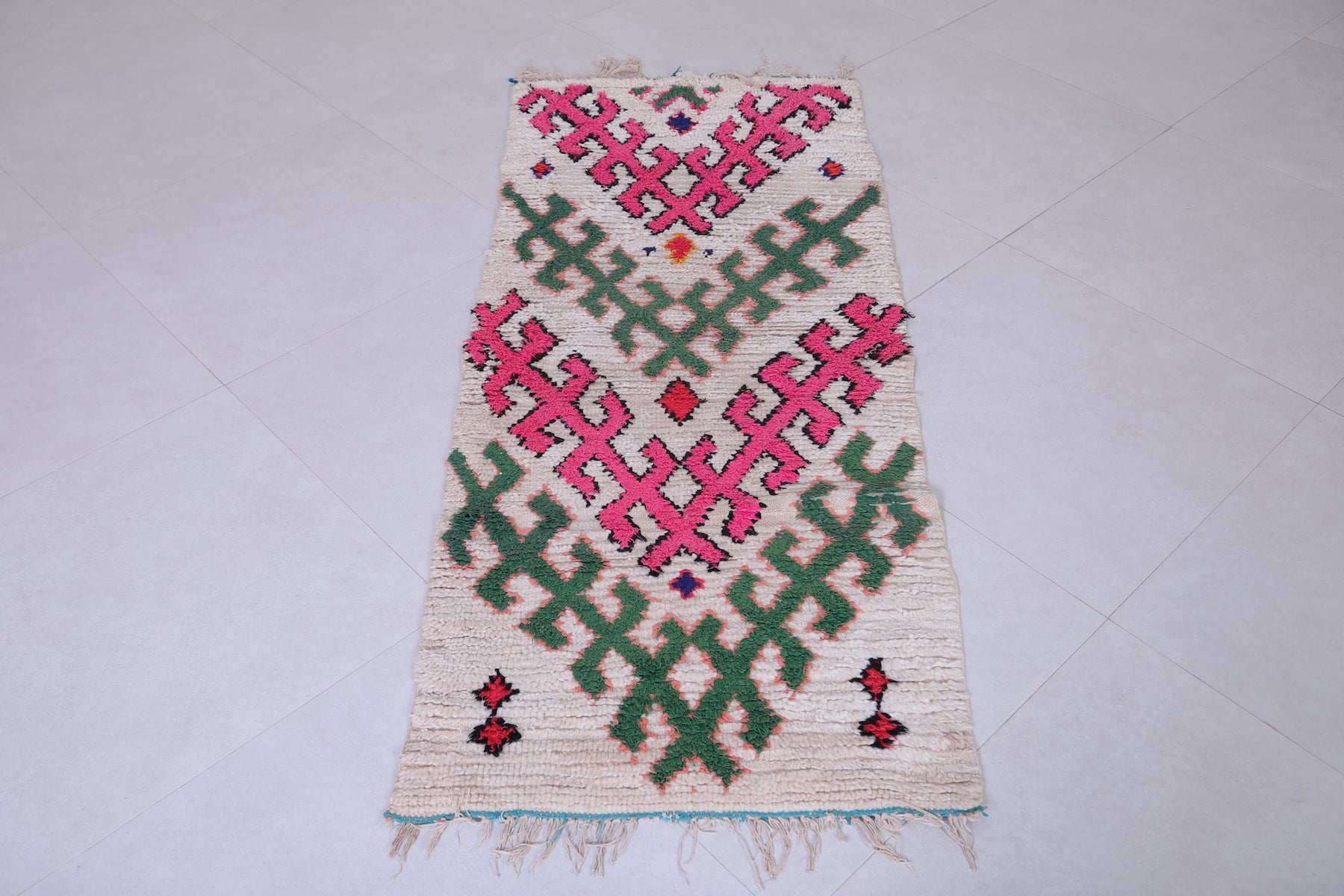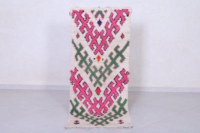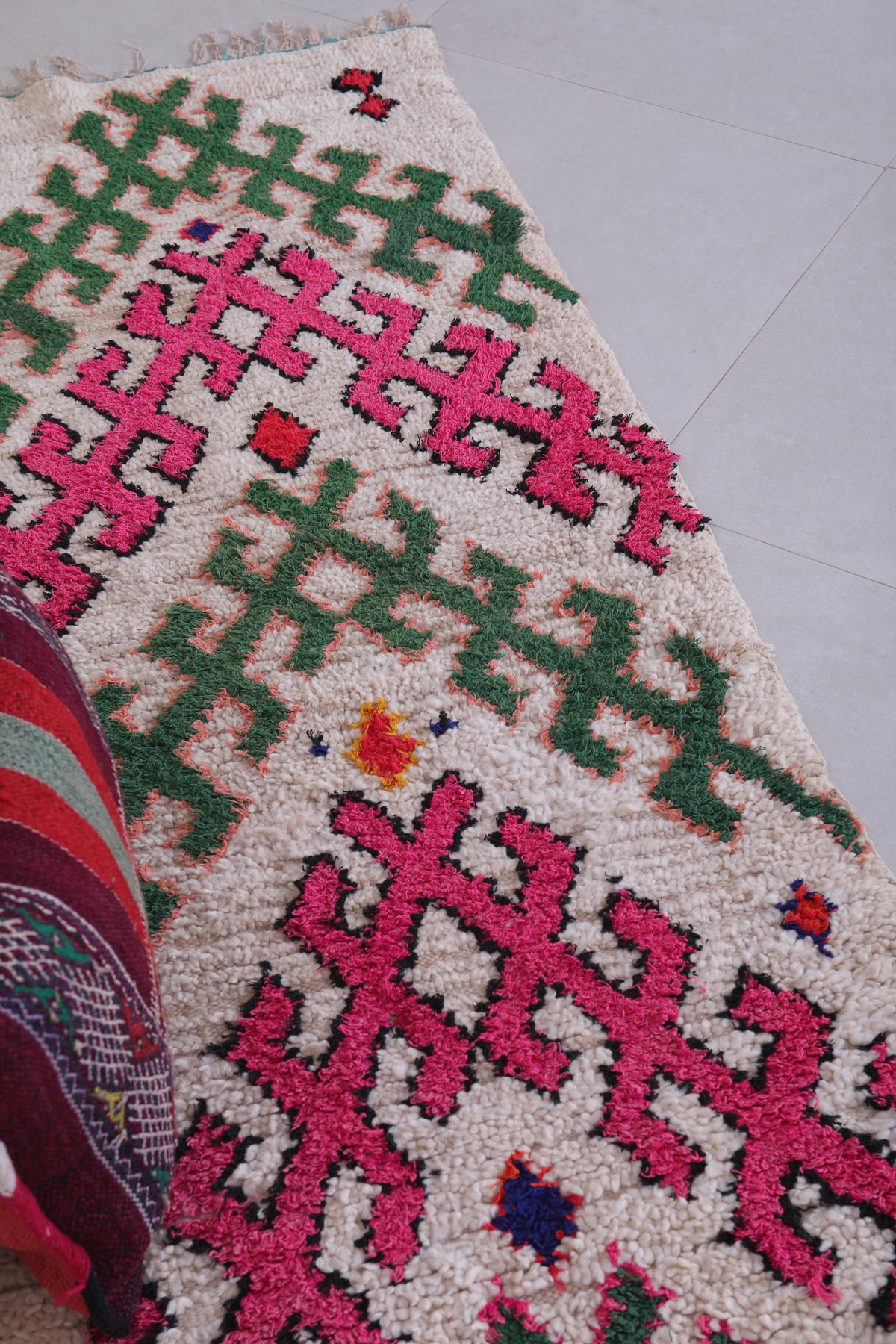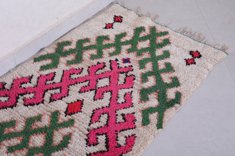 Bring bold artistry into your home with this Colorful Moroccan Hallway Rug (2.3 x 5.6 FT), featuring intricate pink and green motifs on a soft cream background.