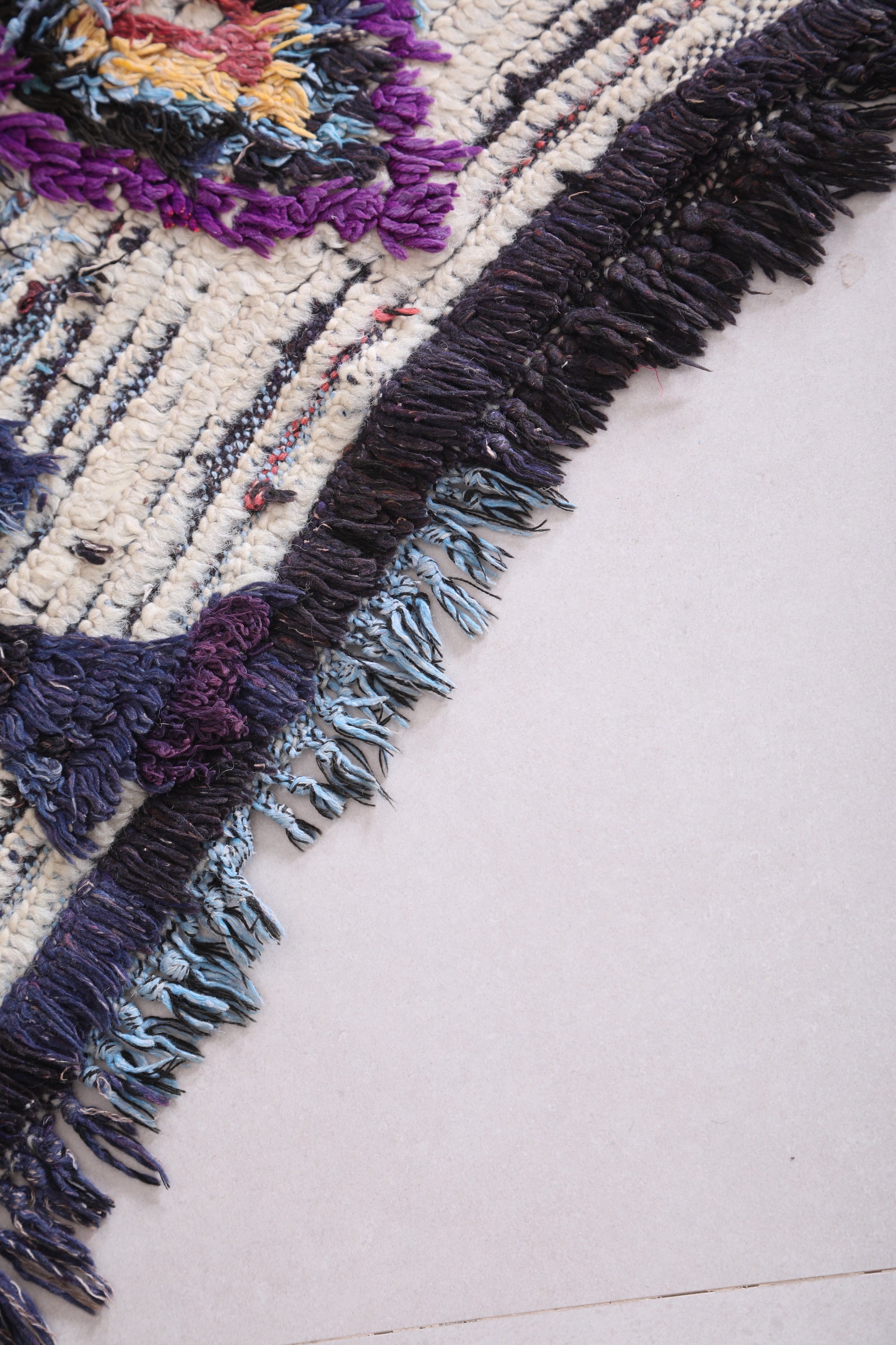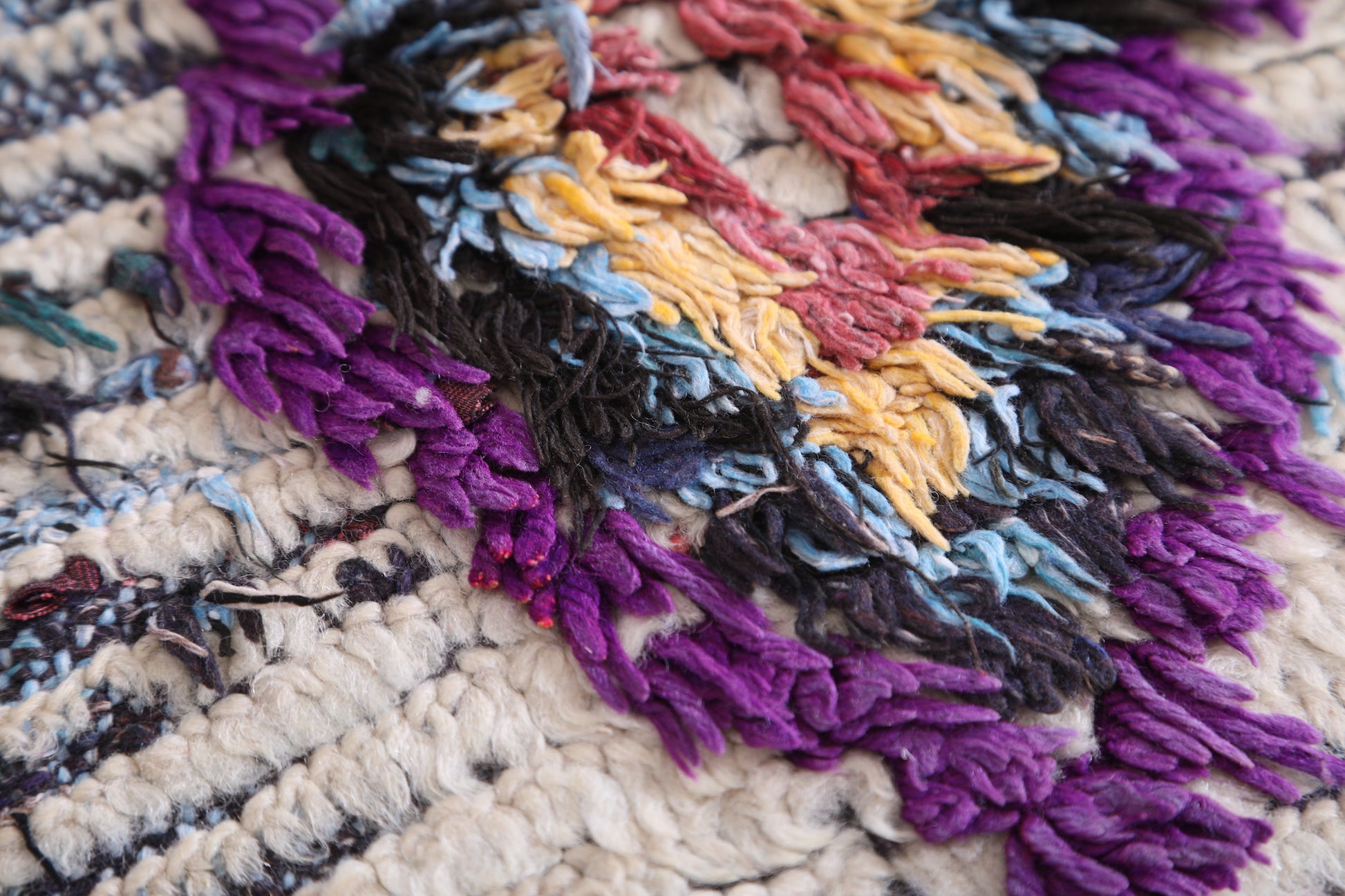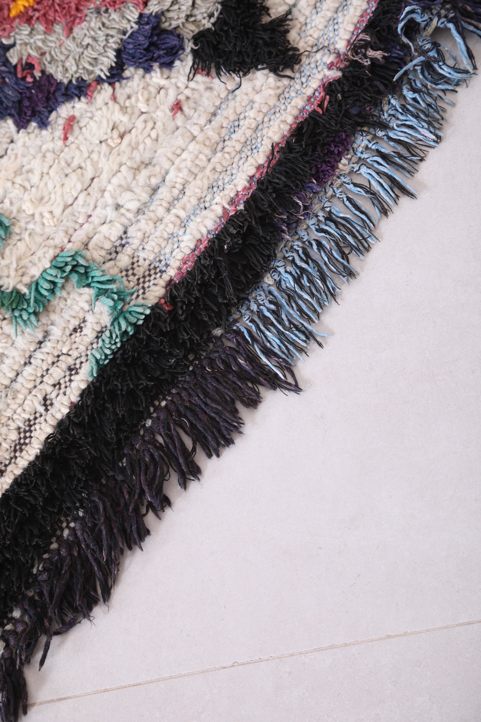 • Handwoven in Morocco using traditional Berber Boucherouite techniques