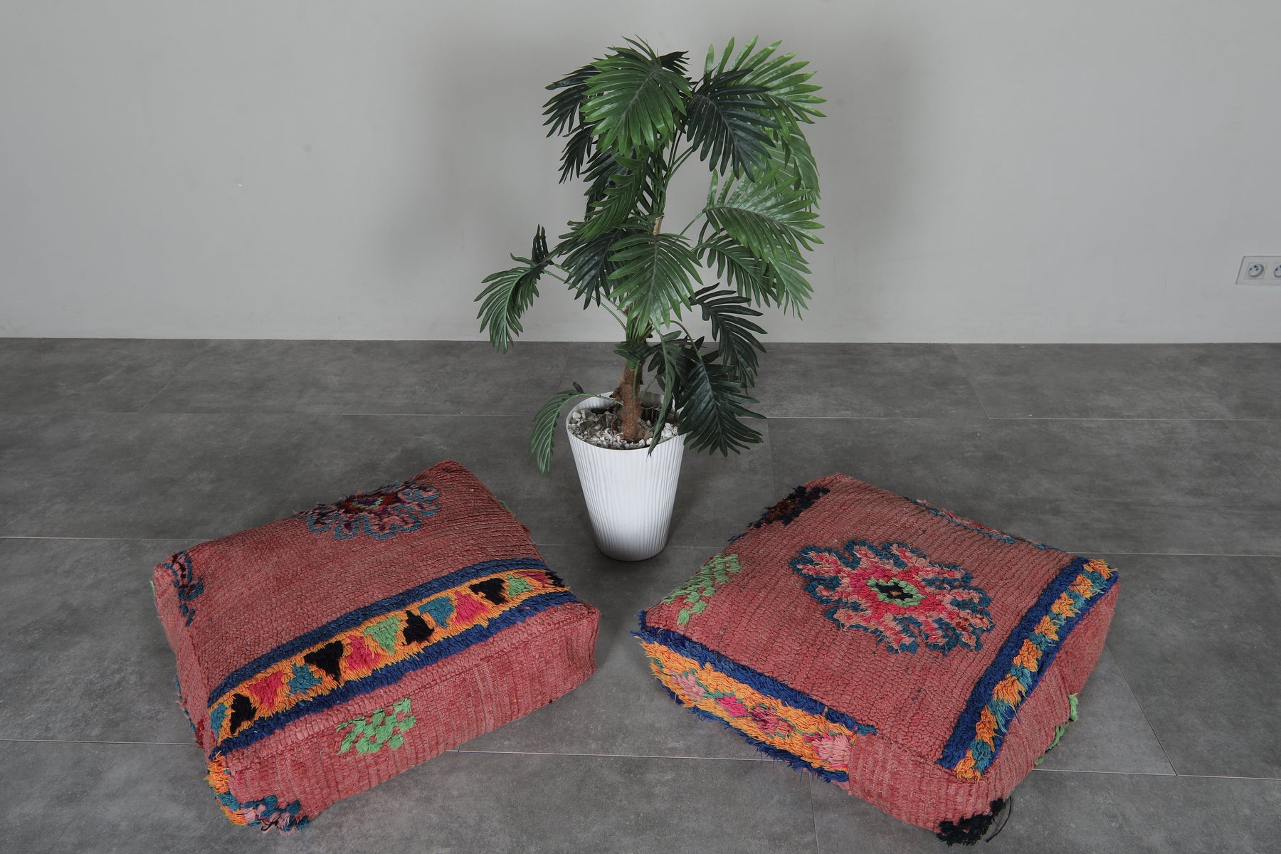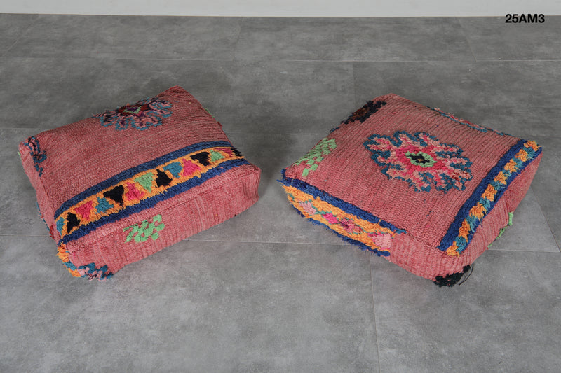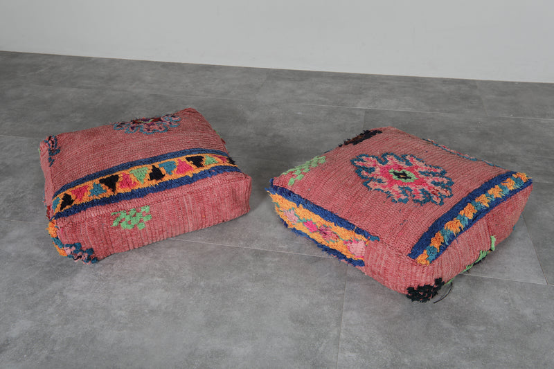 These two vintage poufs ottoman are made by Very Old Moroccan rug.
