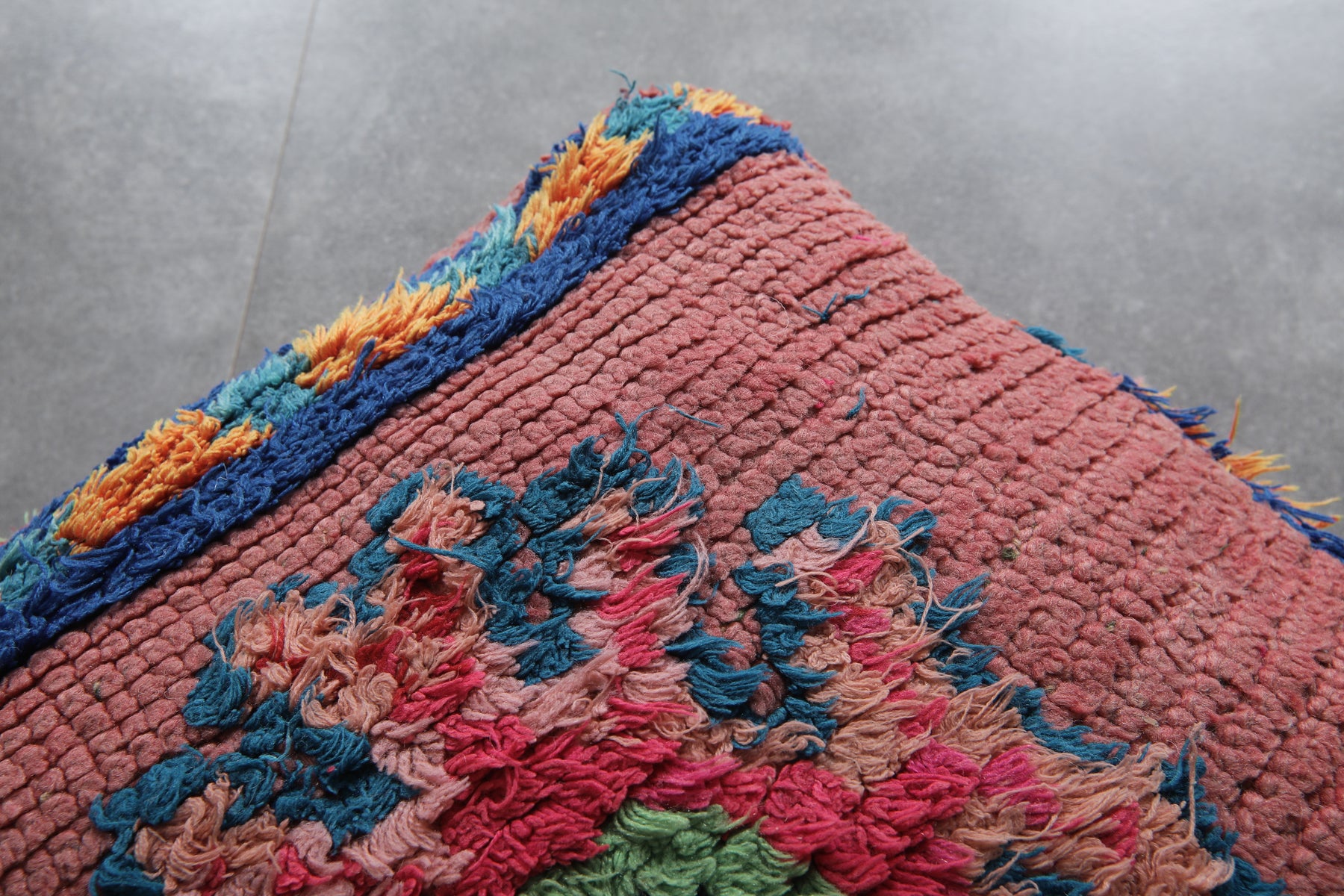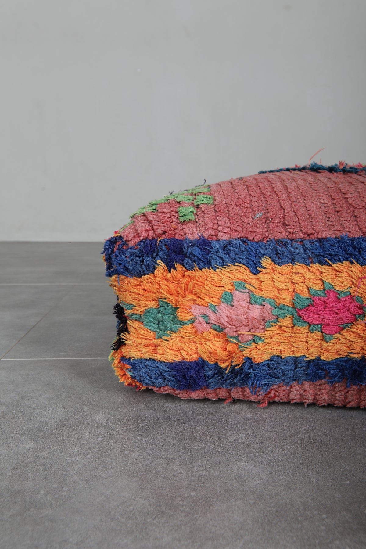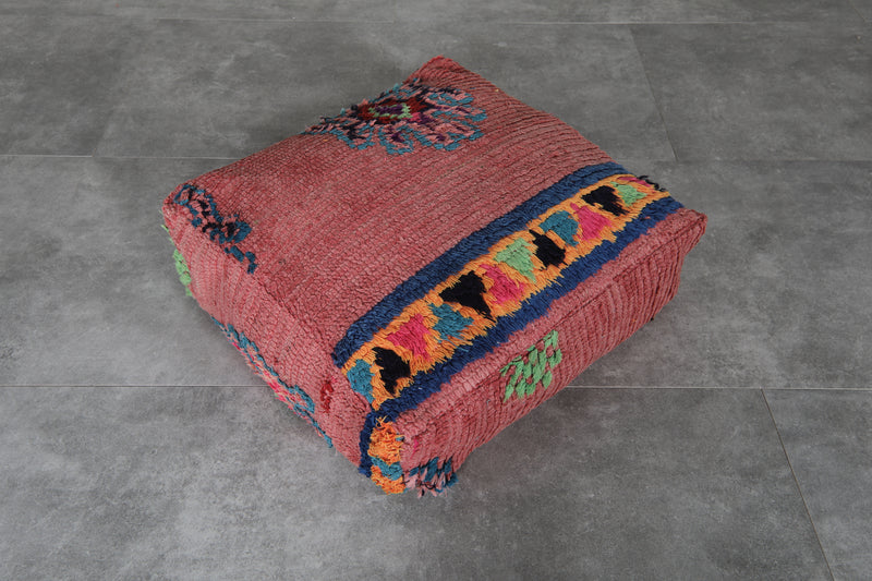 Add a burst of vibrant energy to your home with this set of pink Moroccan poufs, featuring bold floral and tribal patterns. Each 24x24” pouf is crafted from repurposed vintage wool rugs, making them perfect as boho seating, footrests, or decorative accents.