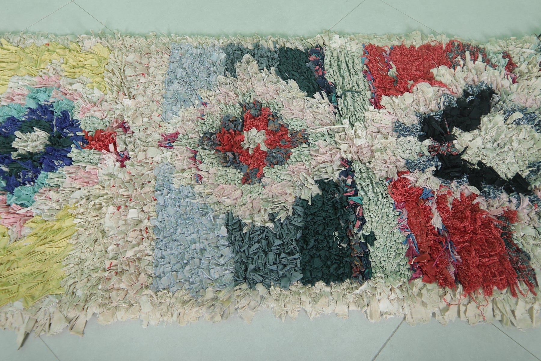 Elevate your home decor with this Moroccan rug, measuring 2.3 x 5.5 feet. Handwoven by skilled artisans, this vibrant piece features bold geometric patterns and a stunning mix of bright colors, creating a unique and artistic touch. Made from soft, durable textiles, it ensures long-lasting quality and plush comfort. Perfect for adding warmth and character to bedrooms, living rooms, or hallways, complementing modern or bohemian interiors.