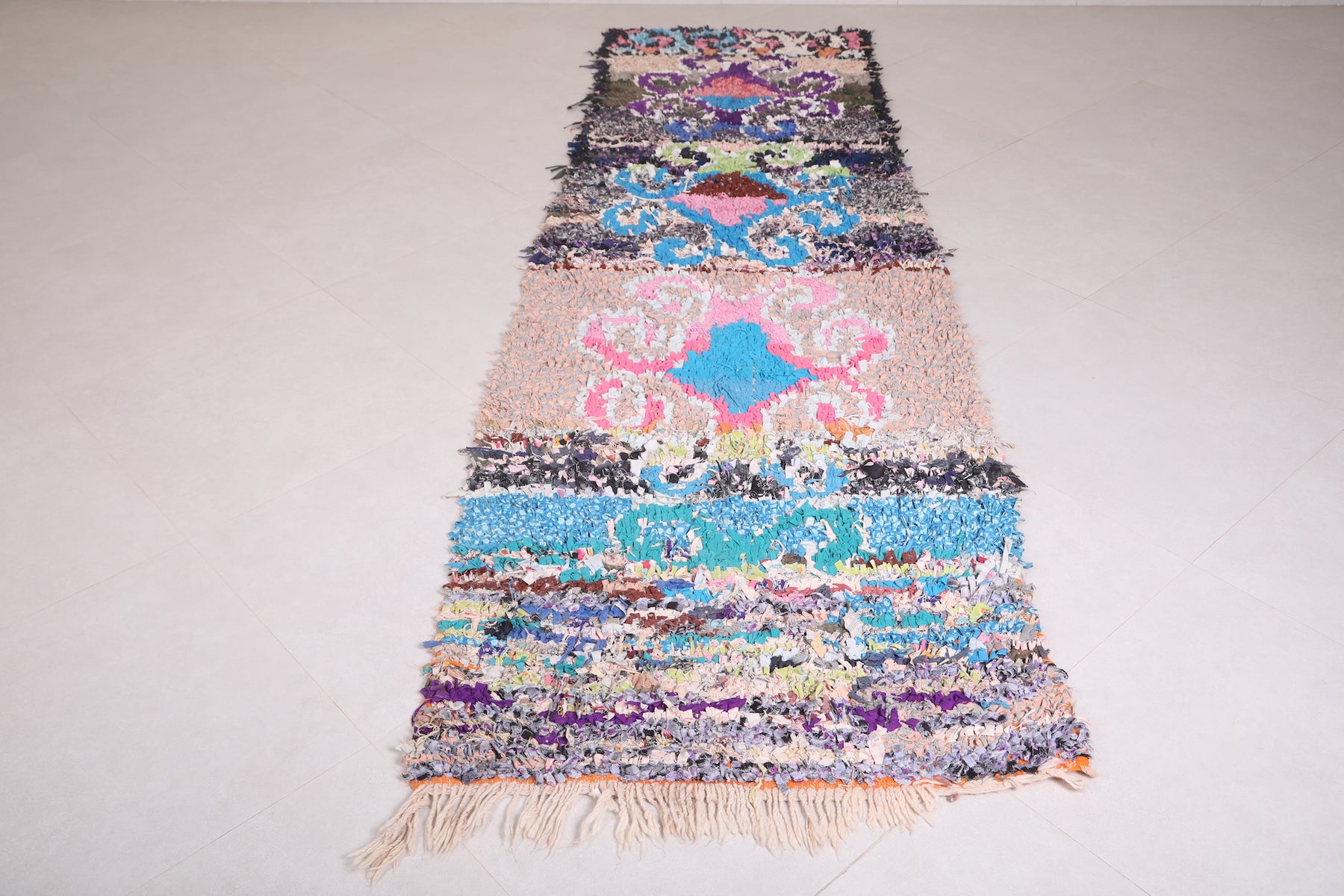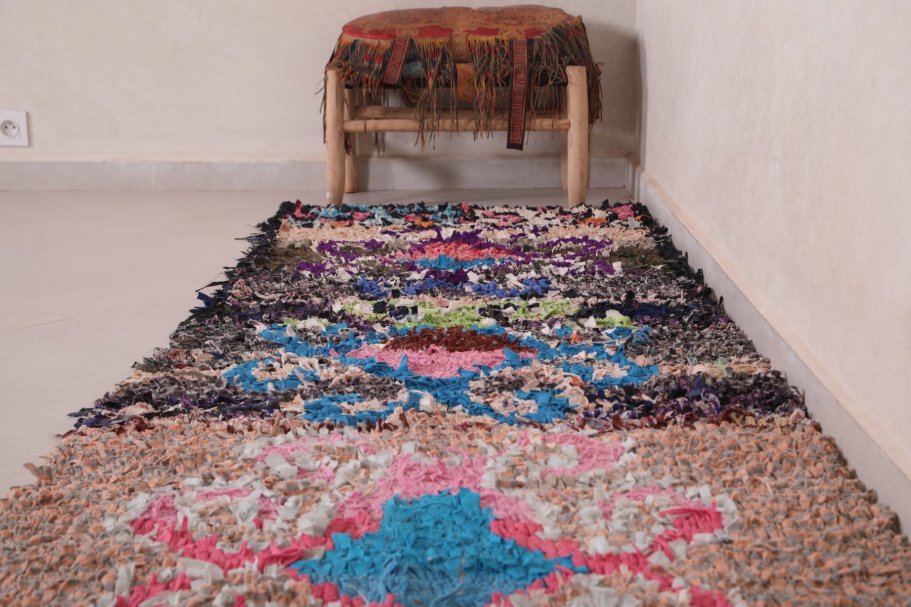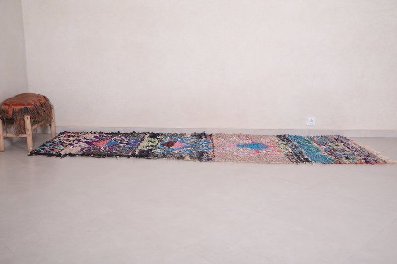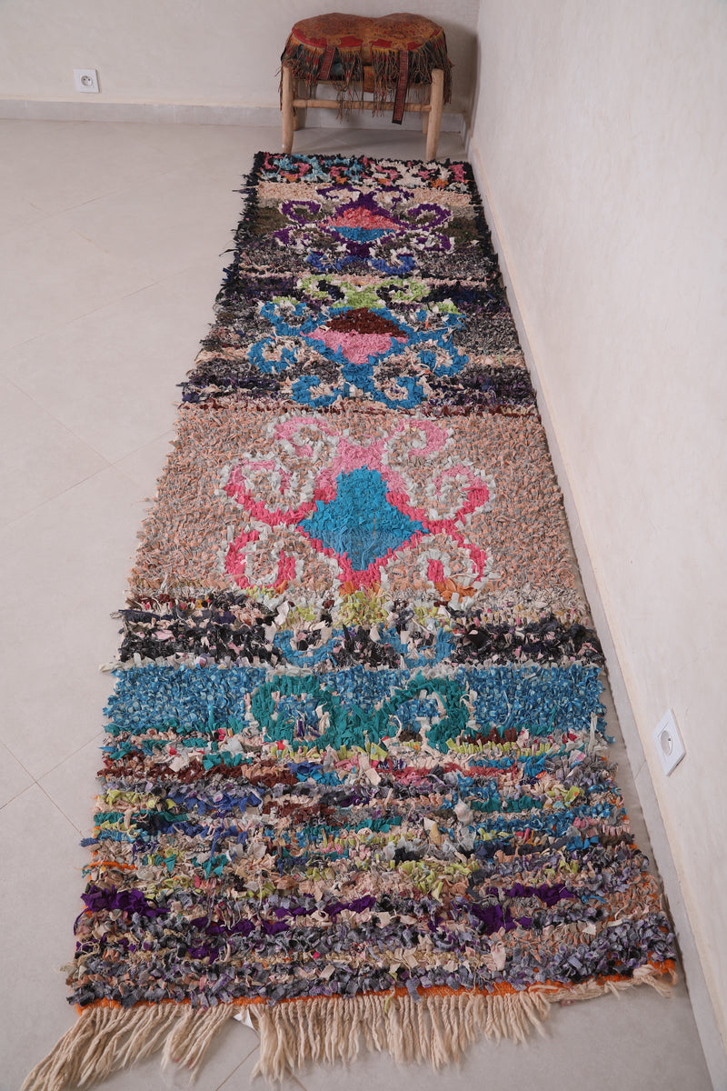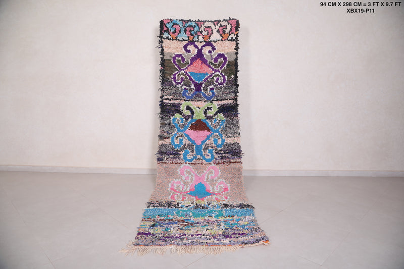 This 3 x 9.7 feet Moroccan rug brings a burst of color and artistic charm to your space. Showcasing a vibrant mix of abstract patterns, this handwoven masterpiece is crafted by skilled artisans using rich hues of pink, blue, green, and purple for a striking visual appeal. Whether styled as a hallway runner, centerpiece in a living room, or an eclectic accent piece, this rug captures the essence of Moroccan artistry and craftsmanship.
