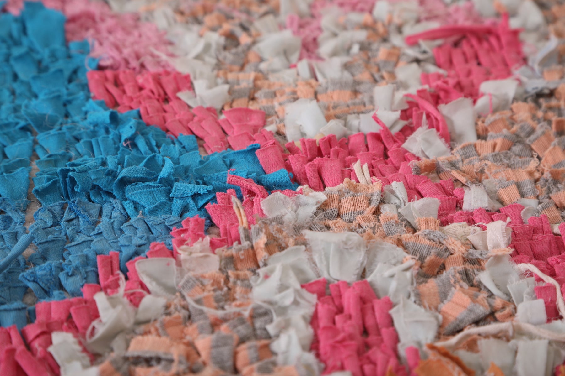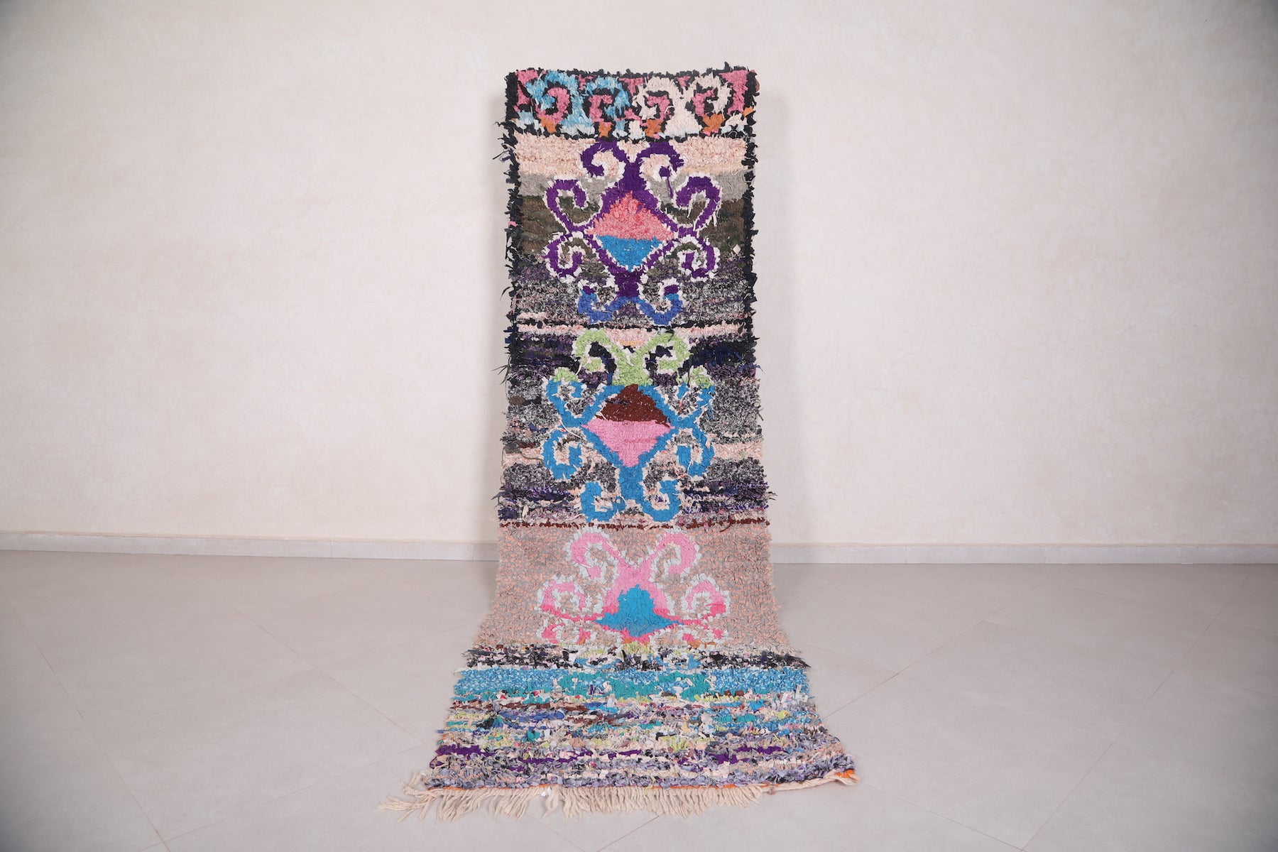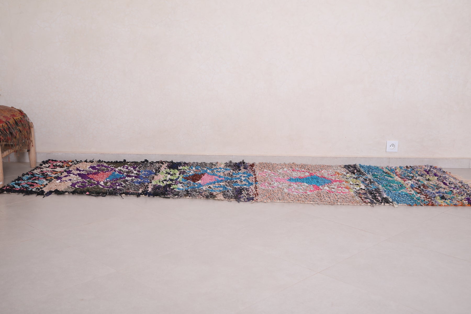 This 3 x 9.7 feet Moroccan rug brings a burst of color and artistic charm to your space. Showcasing a vibrant mix of abstract patterns, this handwoven masterpiece is crafted by skilled artisans using rich hues of pink, blue, green, and purple for a striking visual appeal. Whether styled as a hallway runner, centerpiece in a living room, or an eclectic accent piece, this rug captures the essence of Moroccan artistry and craftsmanship.