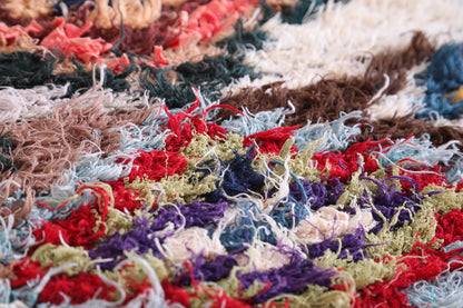 Add a splash of color and culture to your home with this vibrant Moroccan Berber rug, measuring 5.1 x 7.1 feet. Handwoven by skilled artisans, its intricate diamond patterns and rich hues evoke a sense of tradition and artistry. Perfect for creating a cozy and eclectic atmosphere, this rug is not only a visual delight but also a durable and versatile addition to your décor. Let this one-of-a-kind piece infuse warmth and personality into your living space.