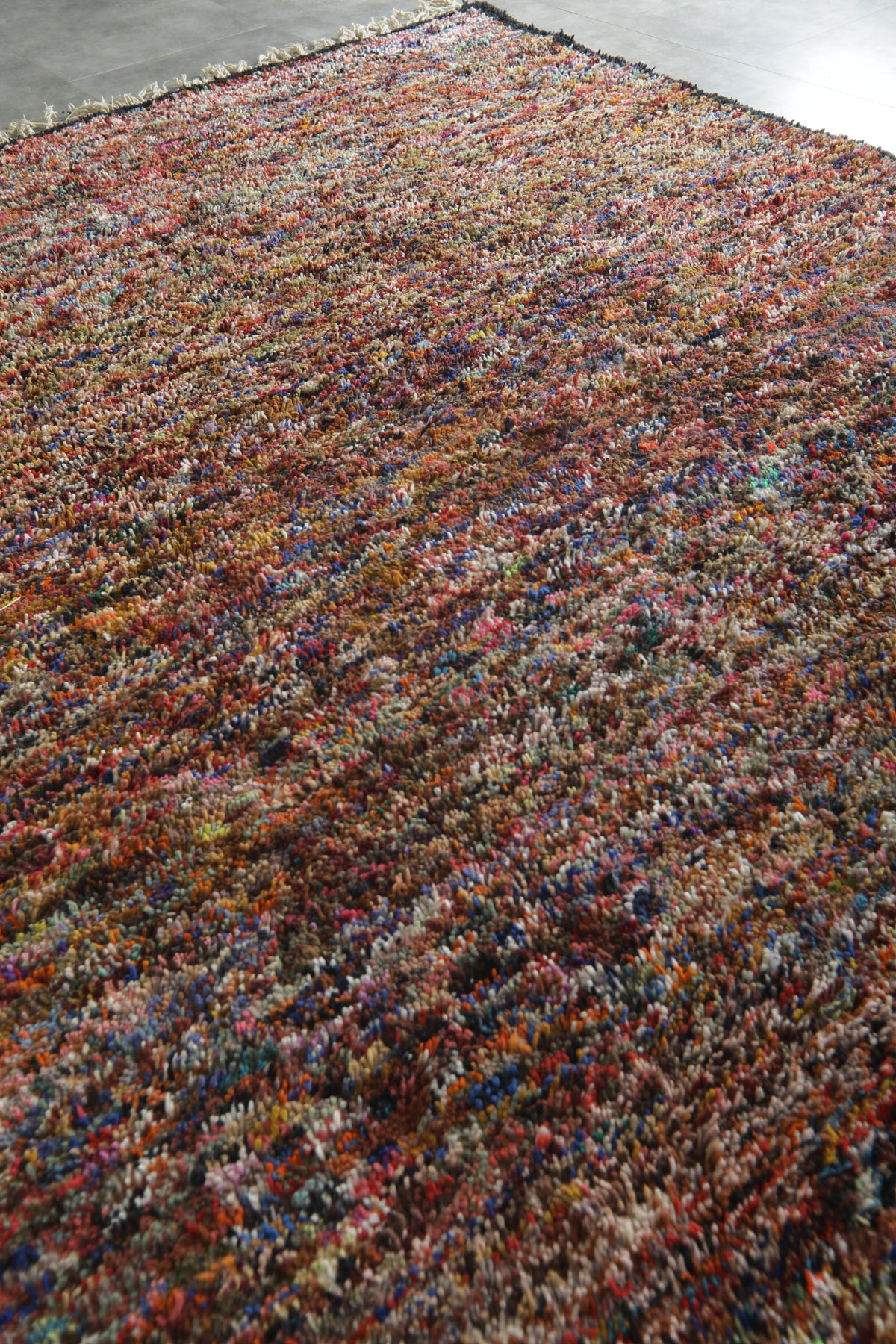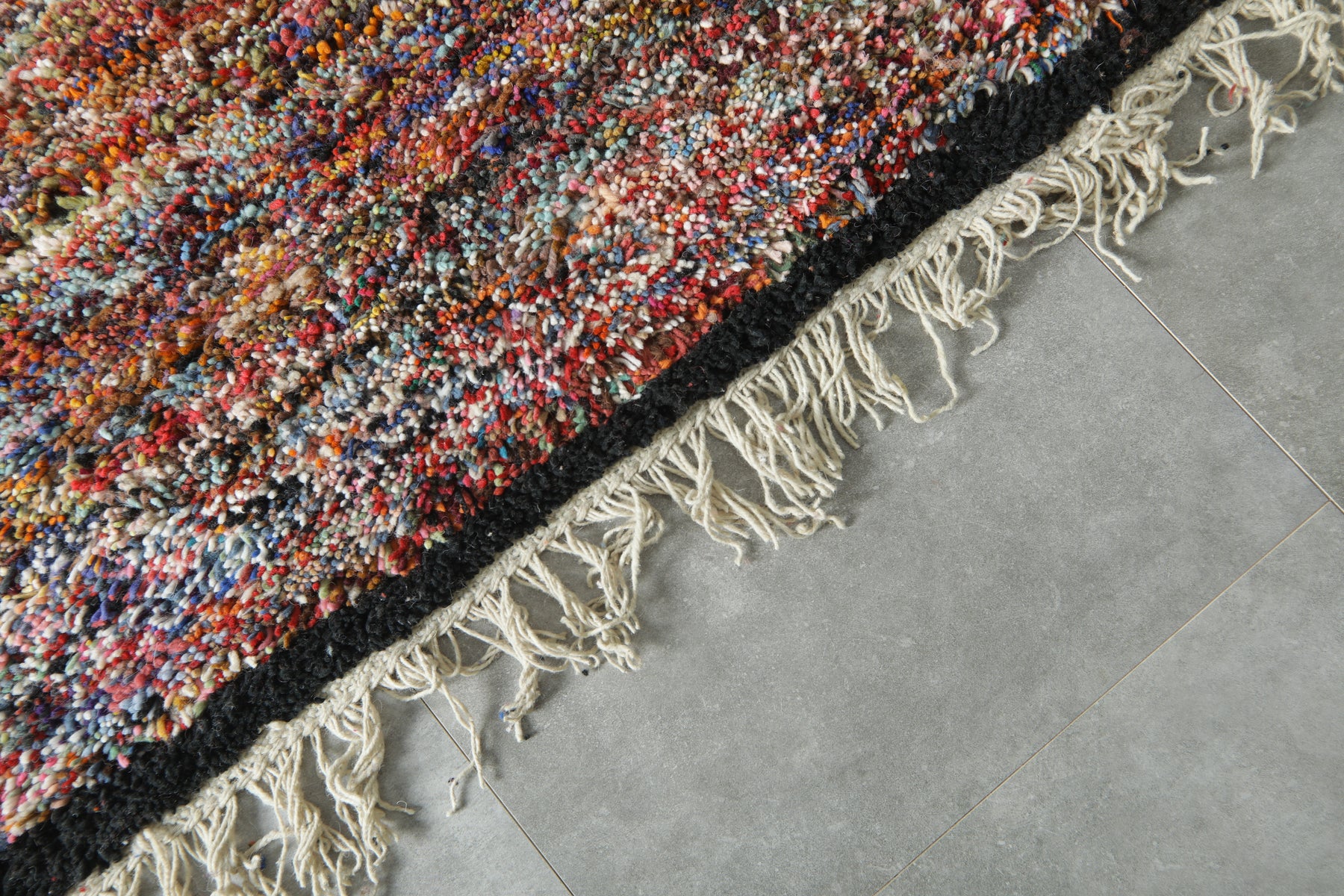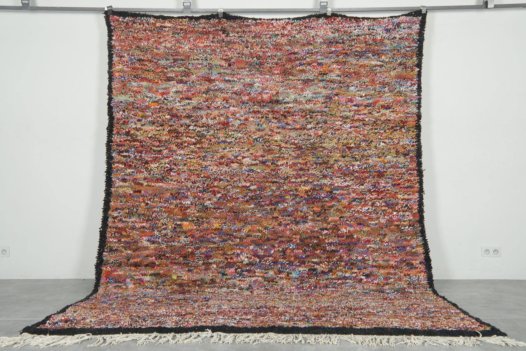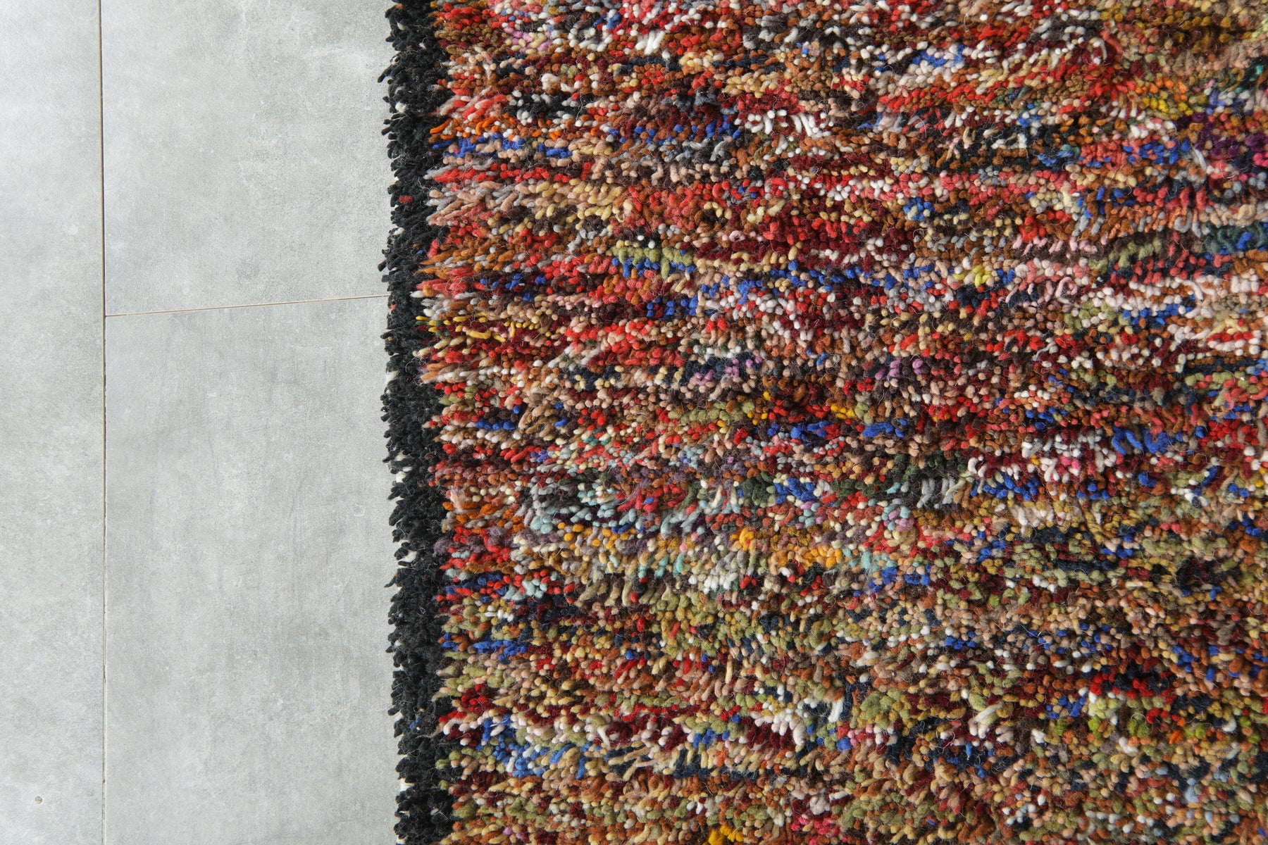 This colorful Moroccan rug, measuring 8.1 x 10.2 feet, is handwoven from high-quality wool by skilled Berber artisans. Featuring vibrant tribal patterns, this Moroccan area rug adds a lively boho touch to any room. Durable and soft, it brings authentic Moroccan craftsmanship and warmth to your home decor. Perfect for elevating your space with cultural charm and timeless style.