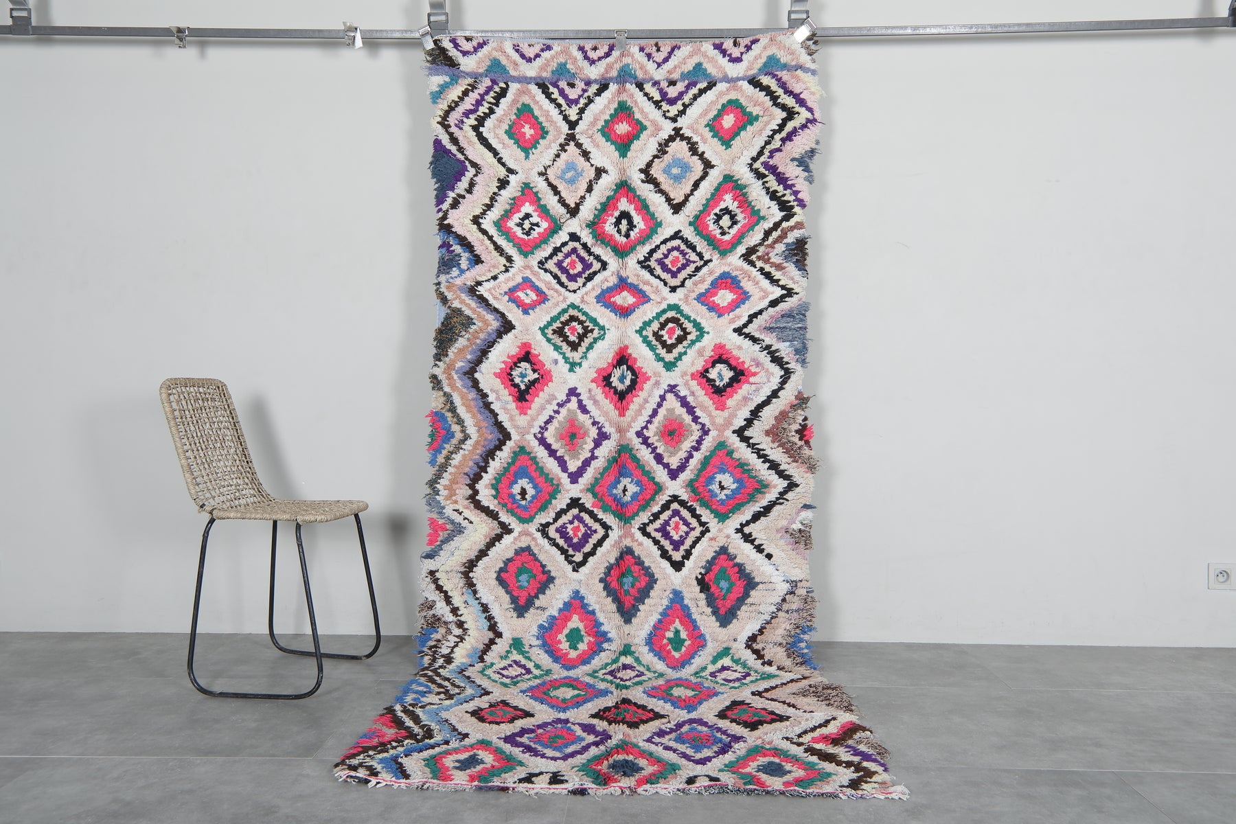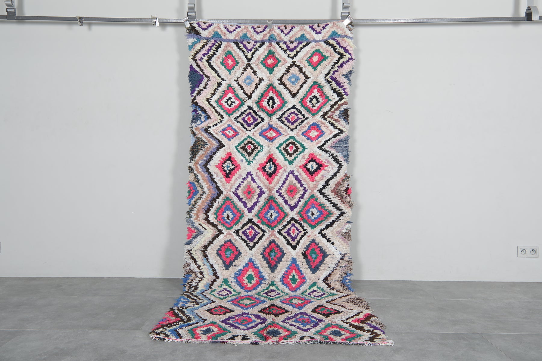 This 3.9 FT x 9.3 FT Colorful Moroccan Rug is a lively handwoven masterpiece, showcasing vibrant multicolored diamond patterns that celebrate traditional Berber design.