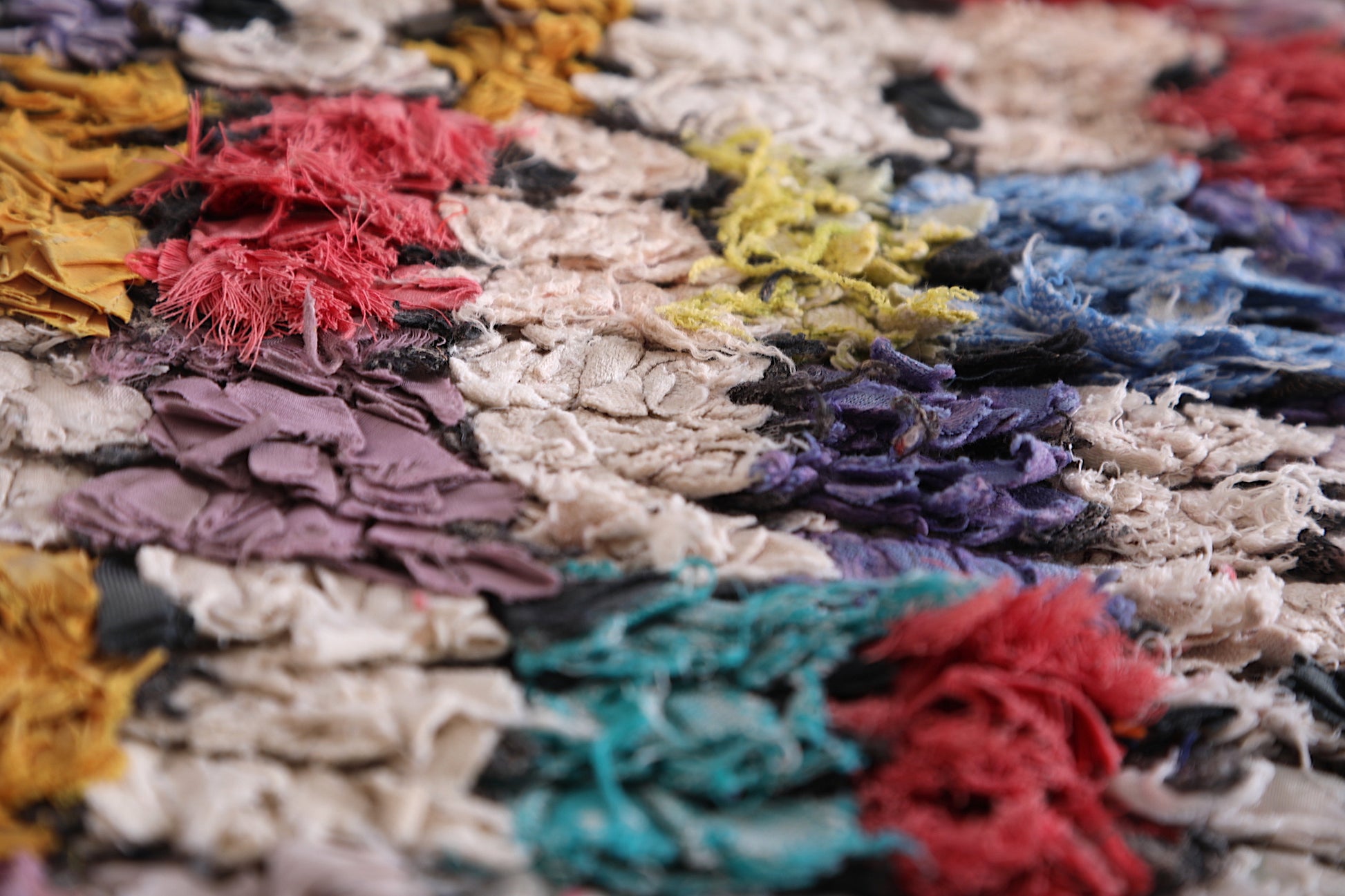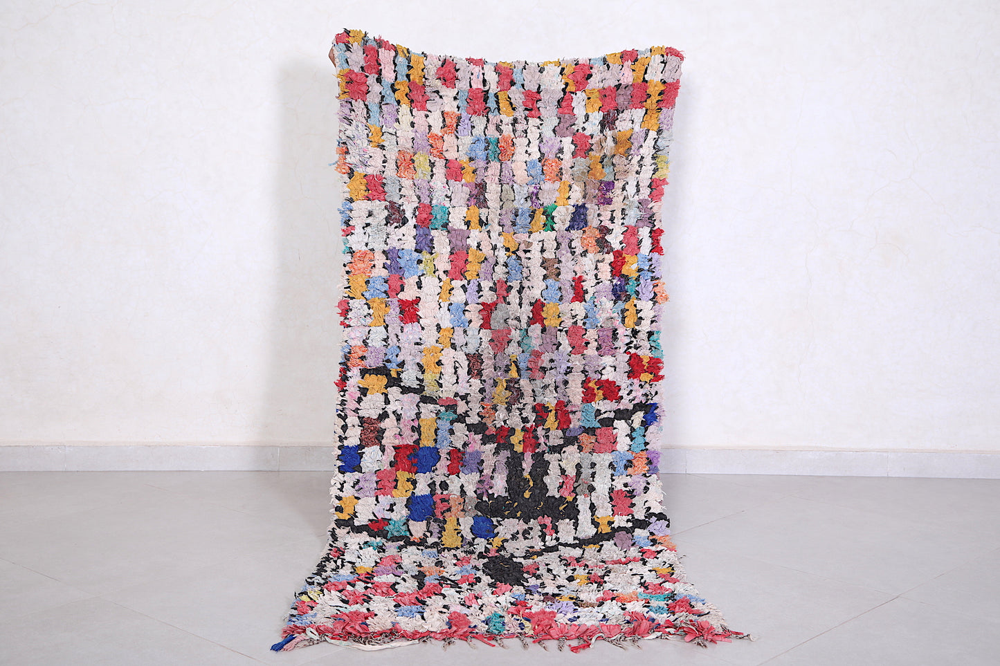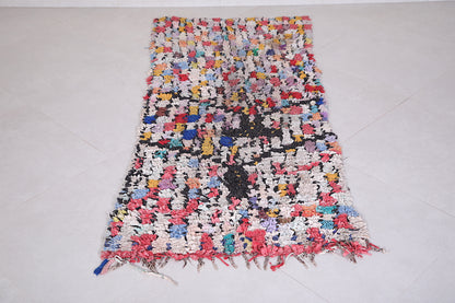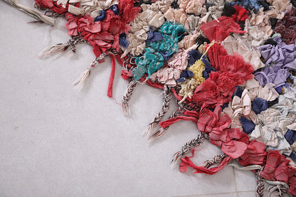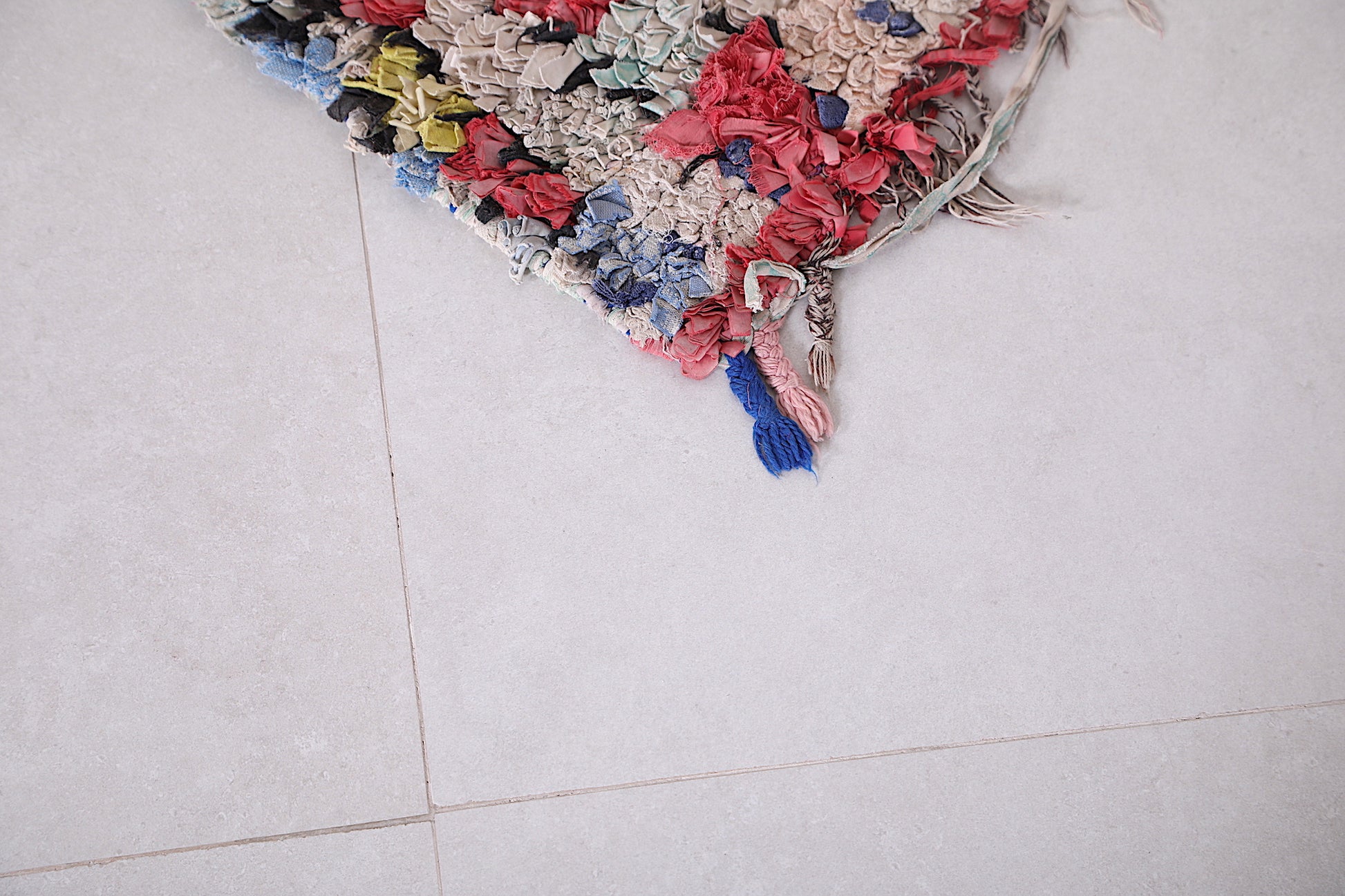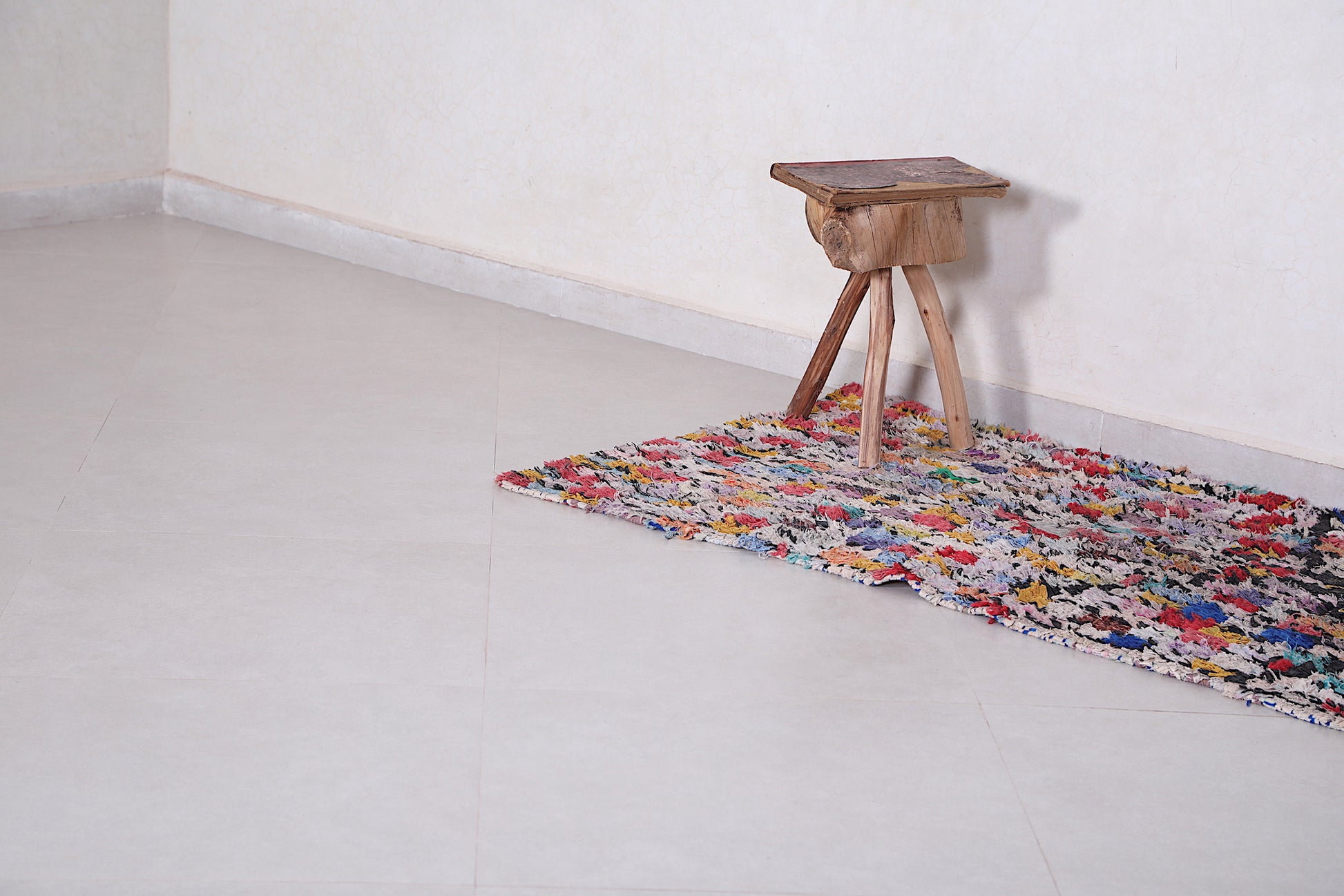 Elevate your interior with this vibrant handmade runner rug, measuring 2.6 x 6.2 FT. Showcasing an array of lively, multicolored squares, this Boucherouite-style rug is crafted from recycled fabrics, blending sustainability with artistry. Perfect for adding charm and color to hallways, entryways, or narrow spaces, this piece highlights traditional Moroccan craftsmanship.