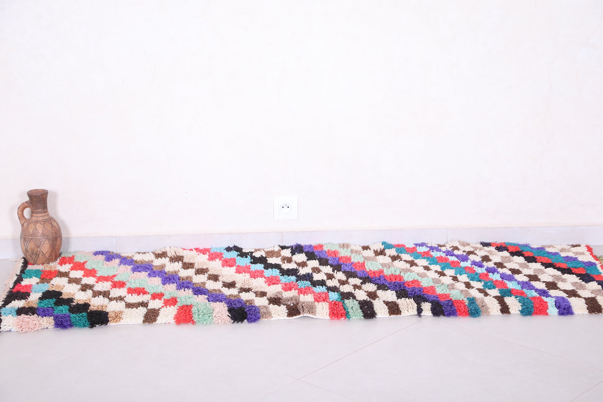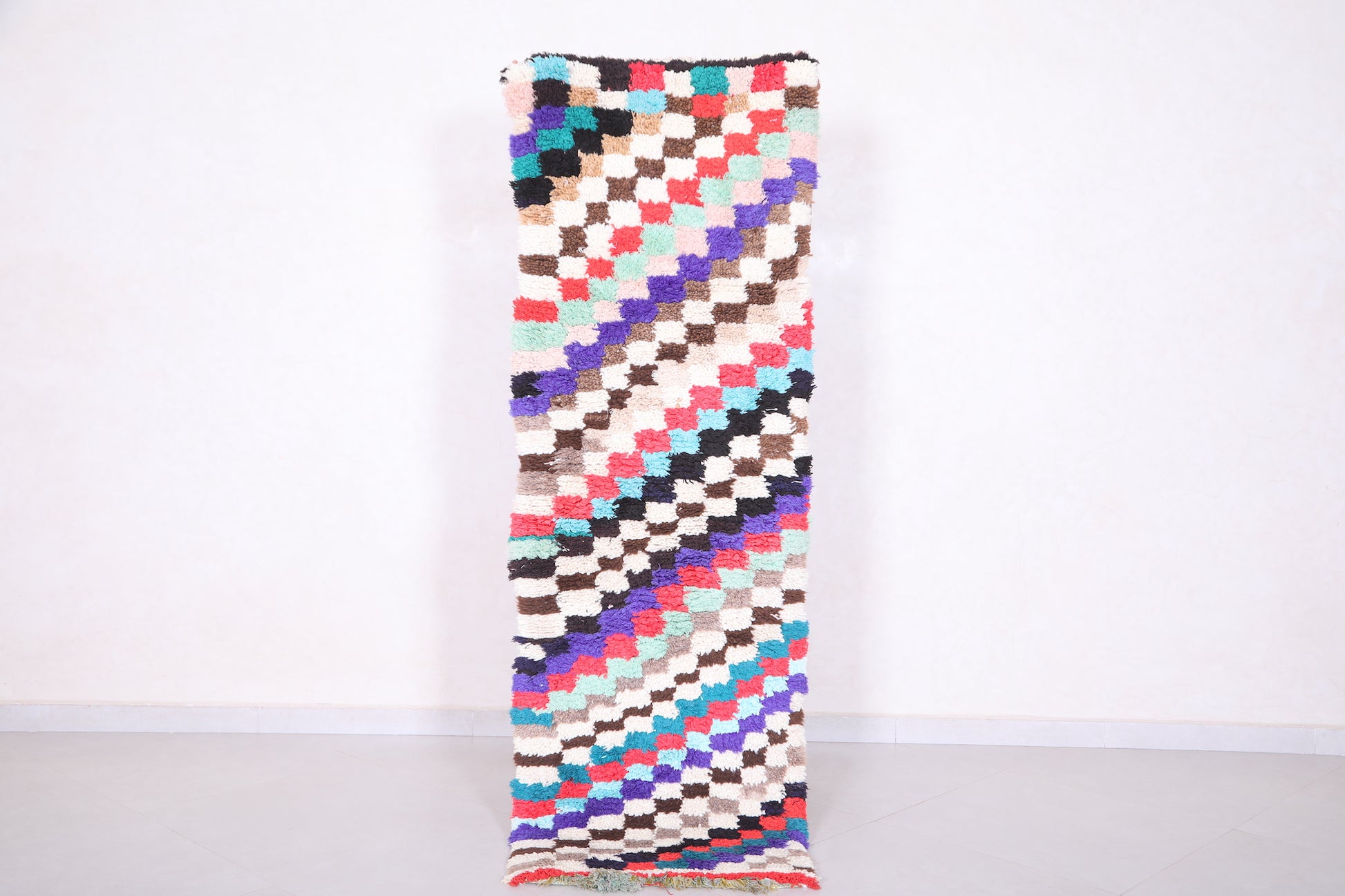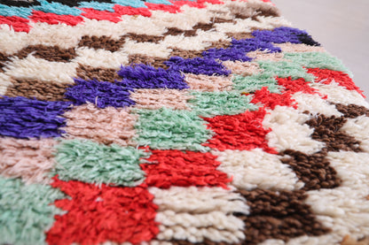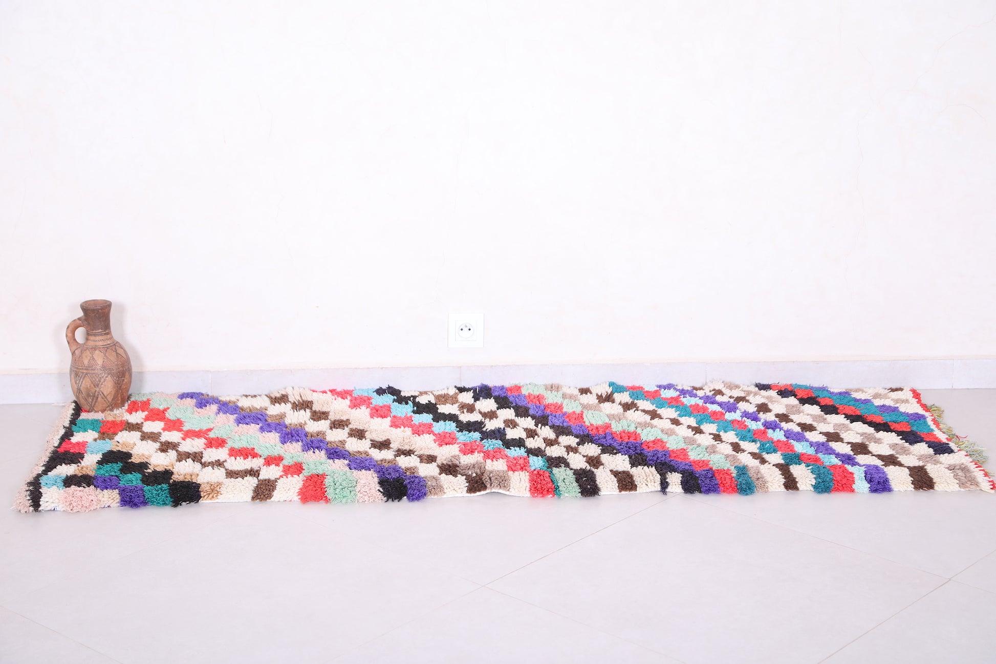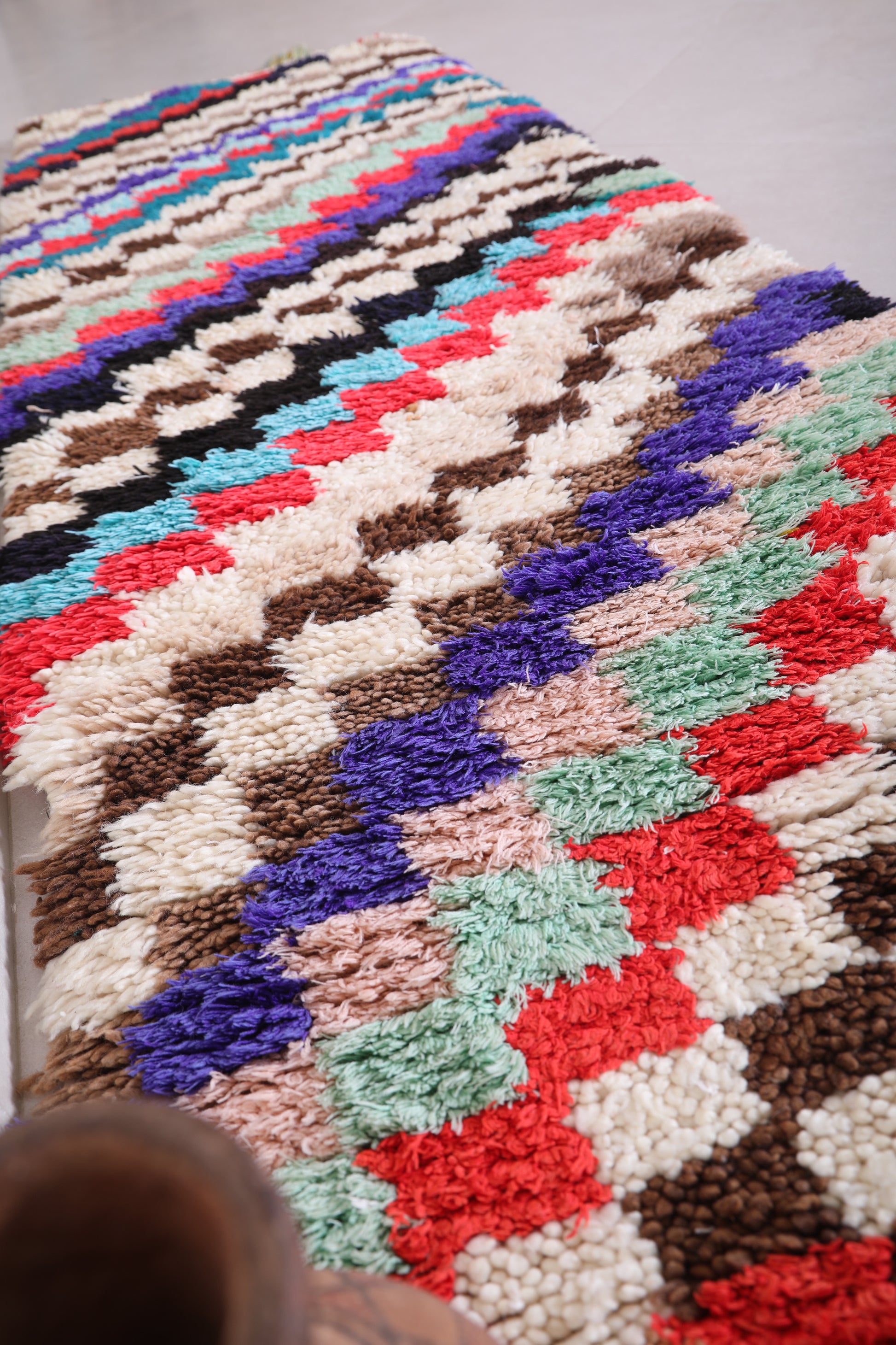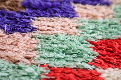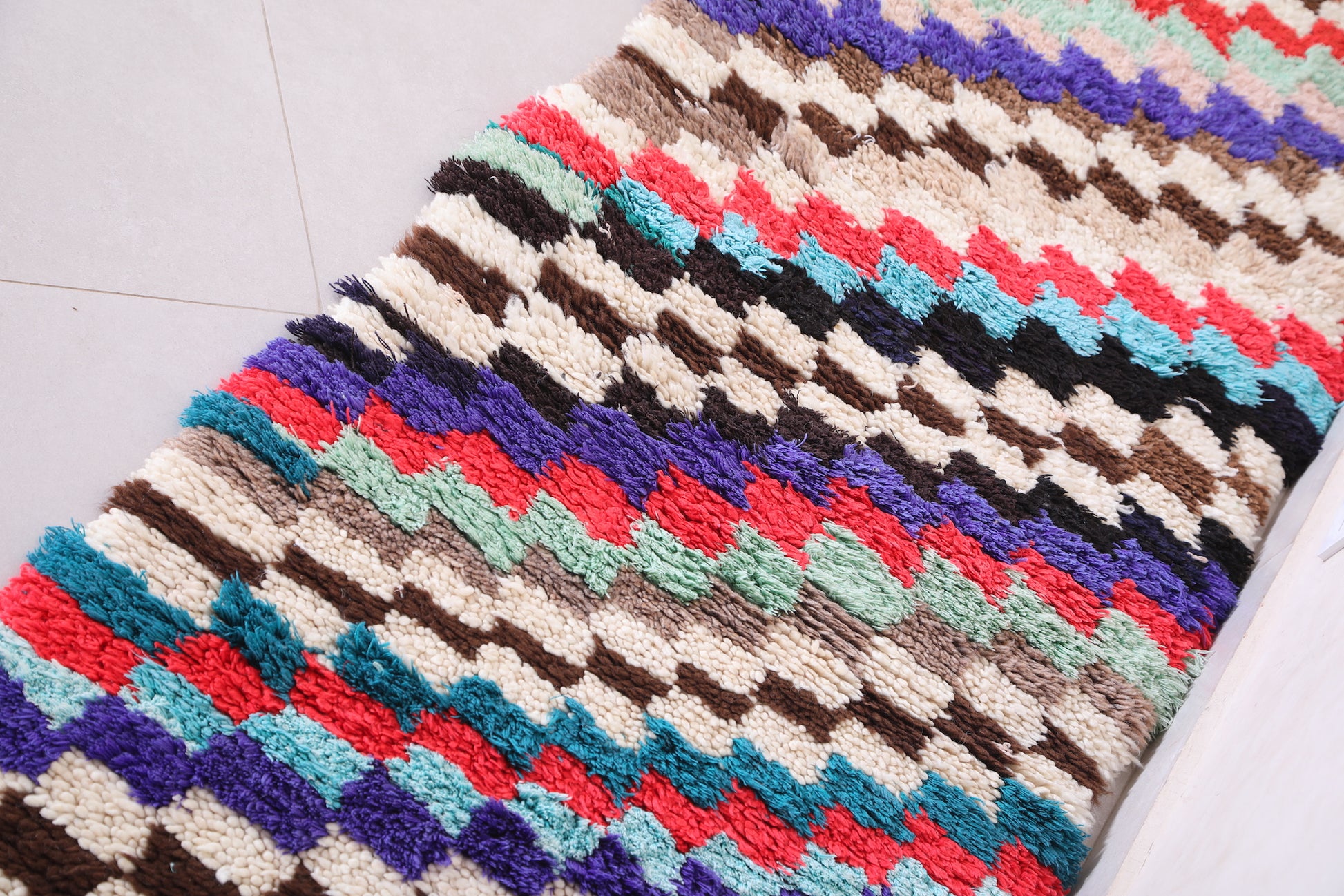 Add a striking twist to your décor with this Colorful Runner Chess Rug (2.1 x 5.5 FT), a handmade Moroccan rug featuring a vibrant checkered pattern and soft shag texture — perfect for bold, creative spaces.