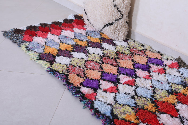 Colorful shaggy Boucherouite rug 2.4 X 6.5 Feet