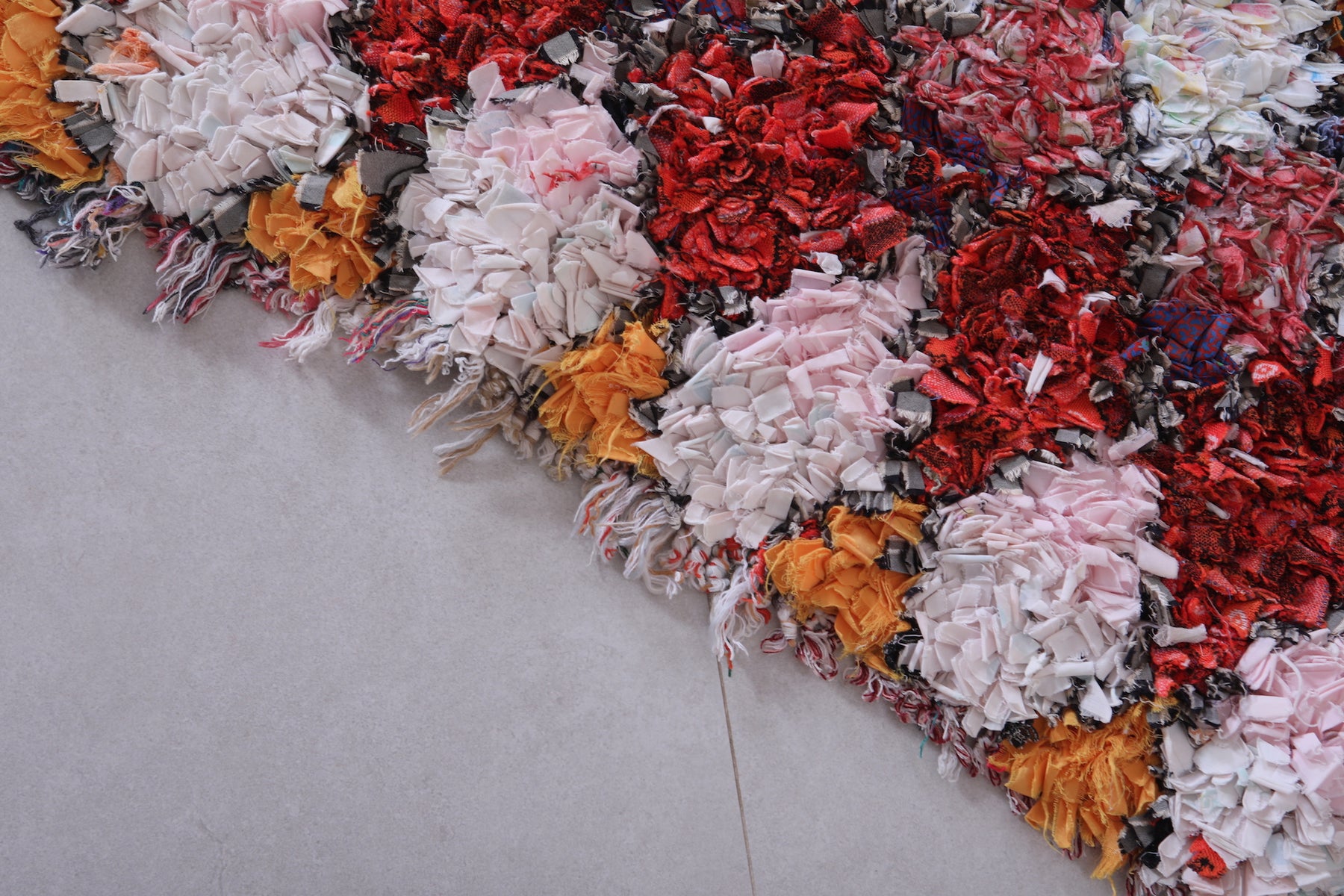 Discover Colorful Moroccan's handmade Boucherouite rug, a vibrant piece of art from Morocco. This 2.4 X 6.5 feet shaggy rug infuses any space with color and comfort!