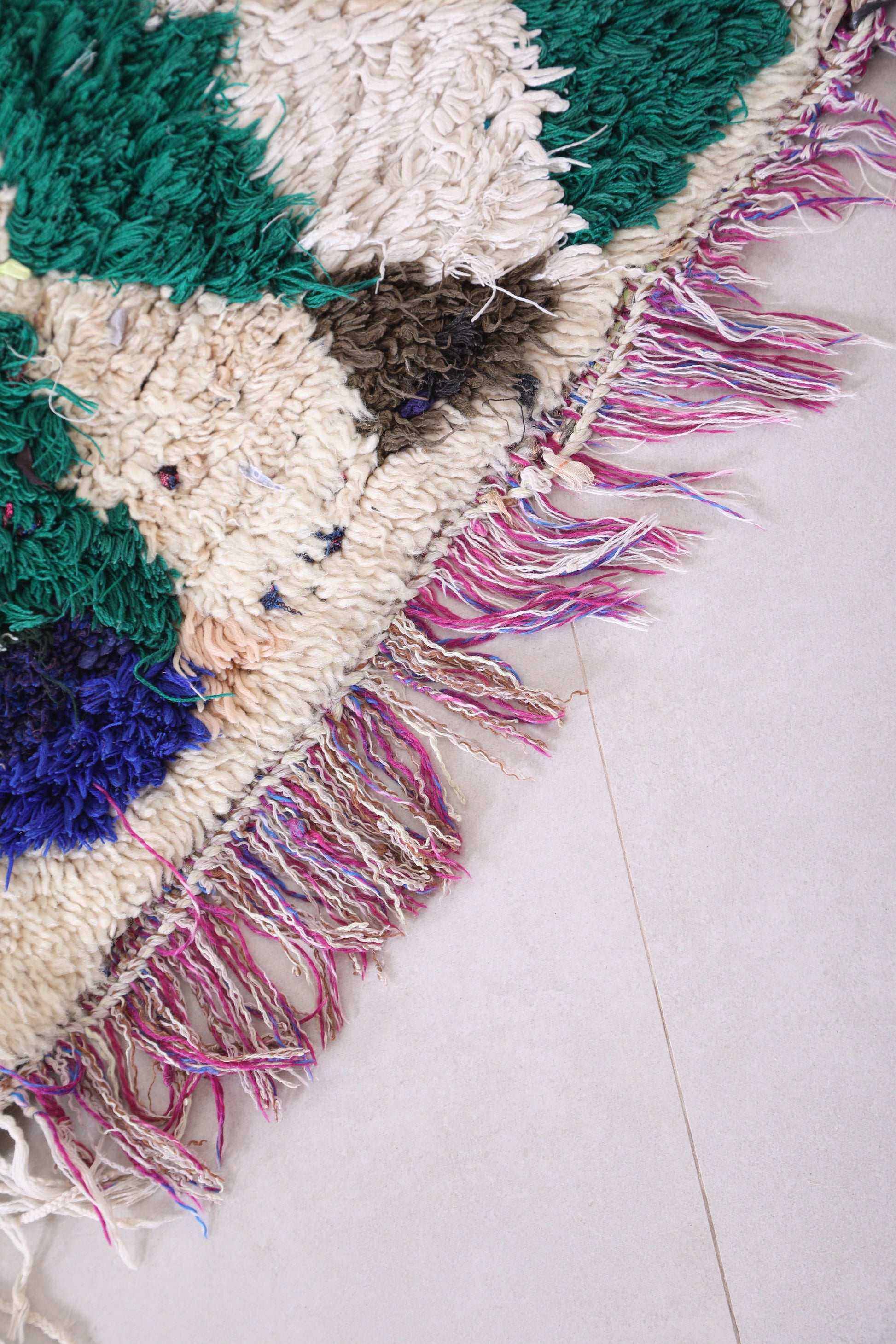 • Handwoven in Morocco using traditional Boucherouite techniques