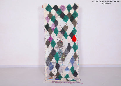 Bring bold elegance to your space with this Colorful Shaggy Runner Rug (2.6 x 6.8 FT), a handcrafted Moroccan masterpiece featuring rich diamond motifs and plush texture — perfect for adding warmth and depth to long, narrow areas.