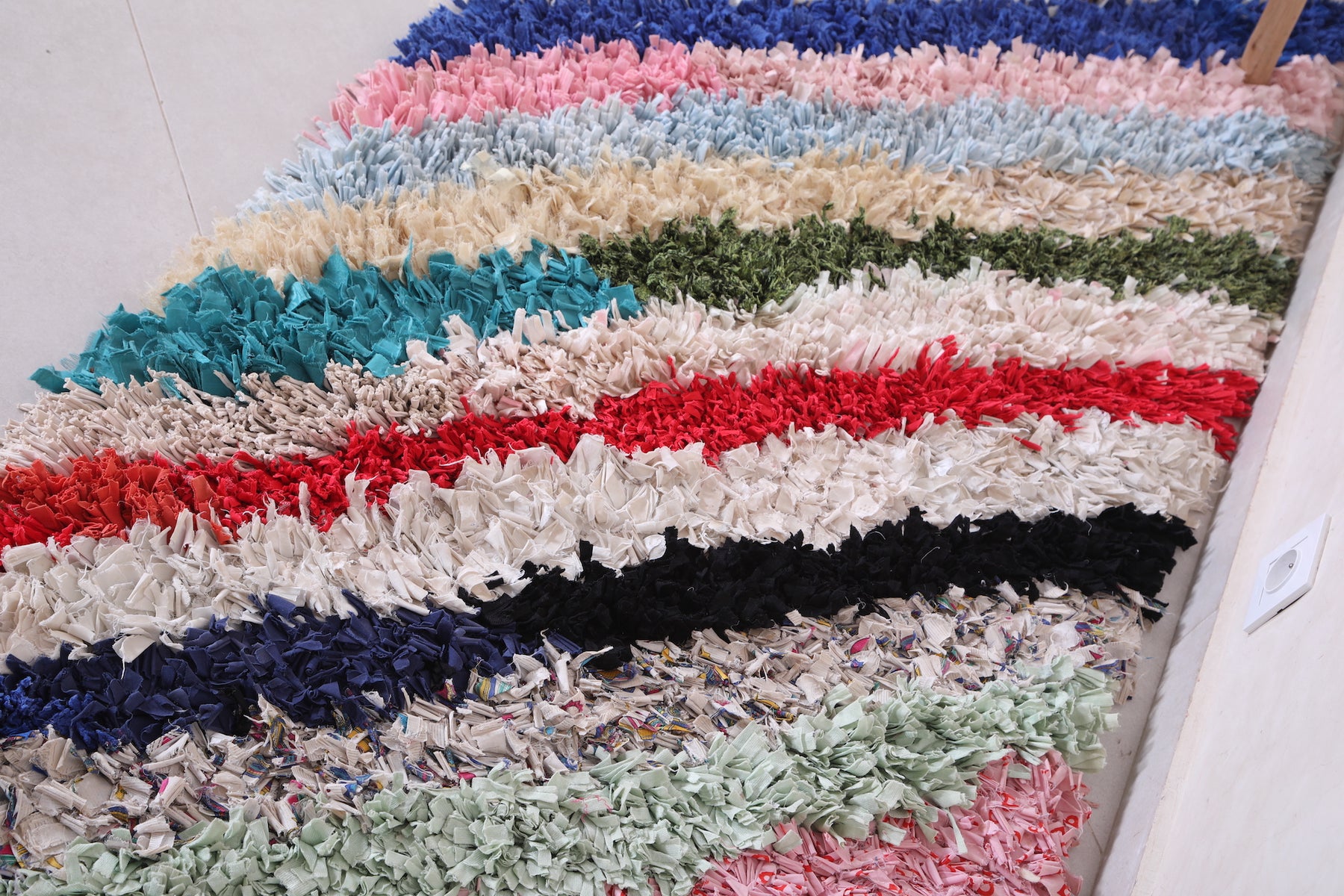 • Handwoven in Morocco from recycled fabric and textiles