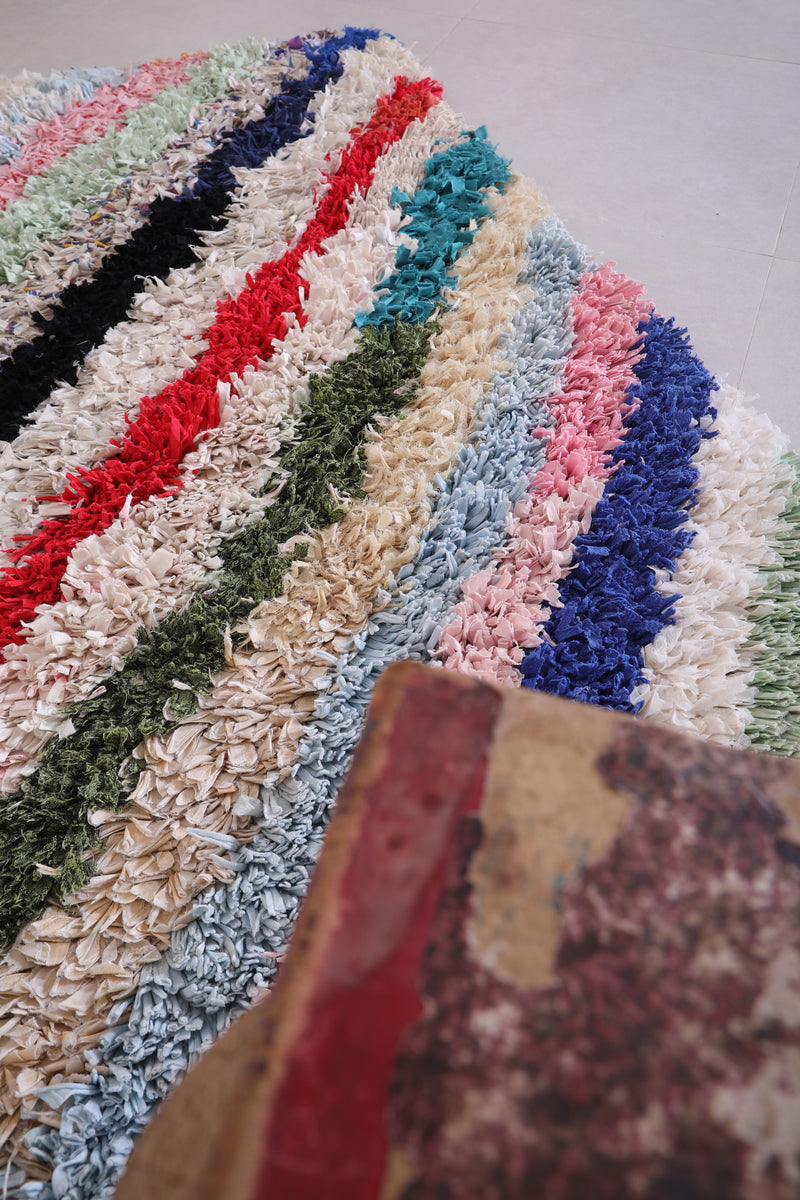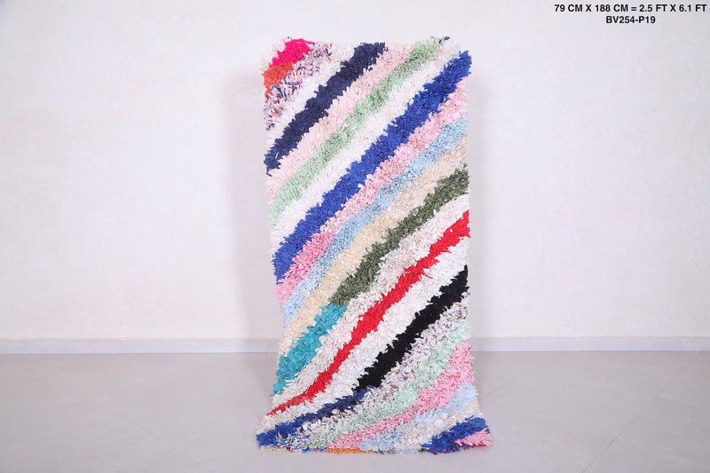 Colorful Striped Runner Boucherouite Rug 2.5 X 6.1 Feet