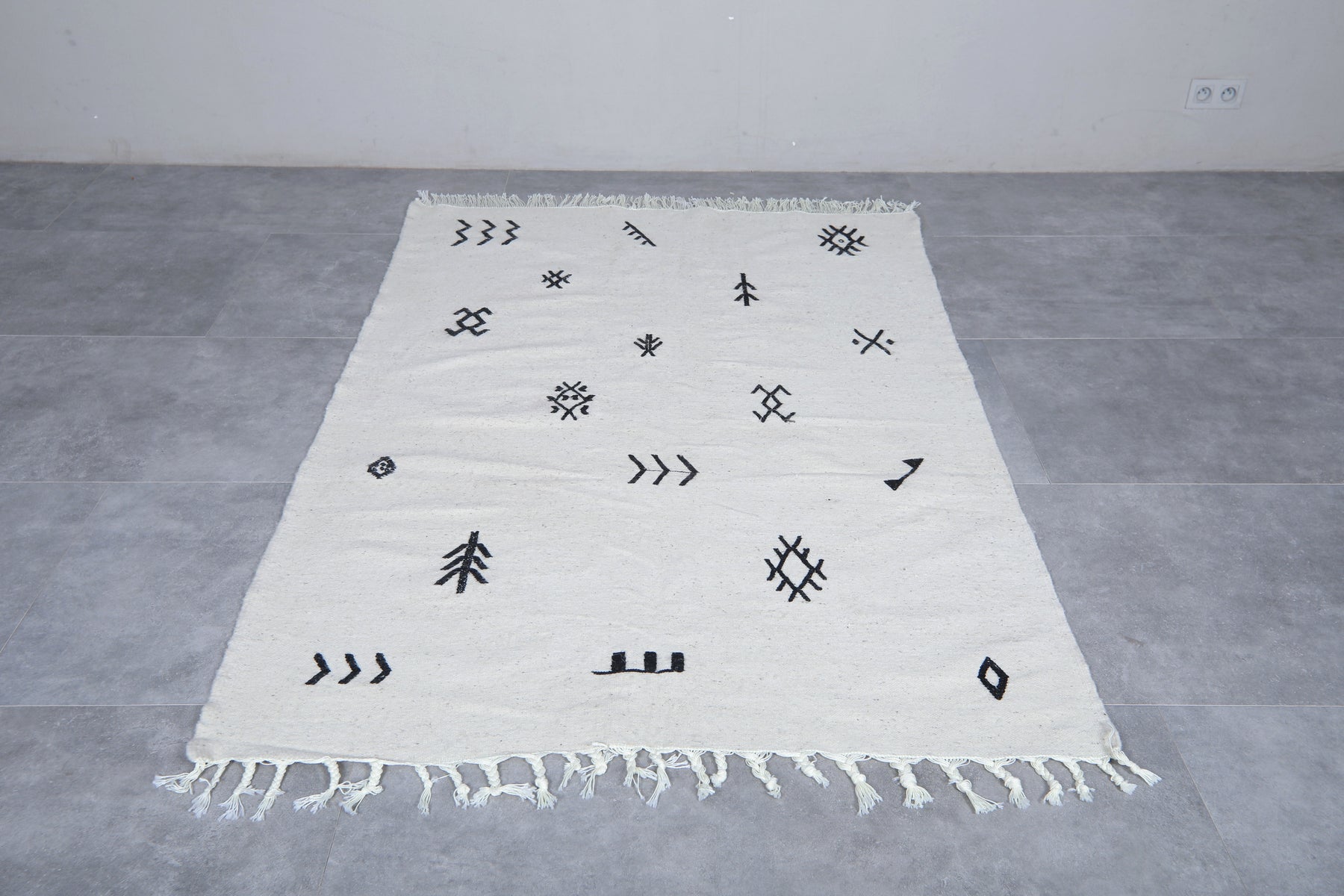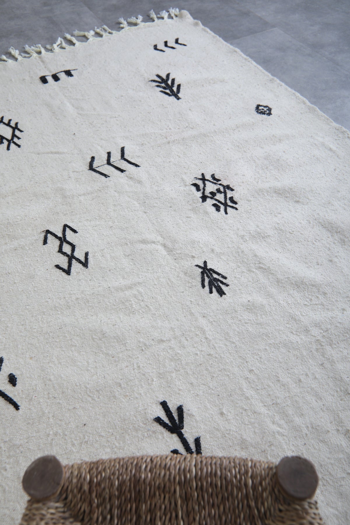 Custom azilal flatweave rug – Tribal symbols in black & white
