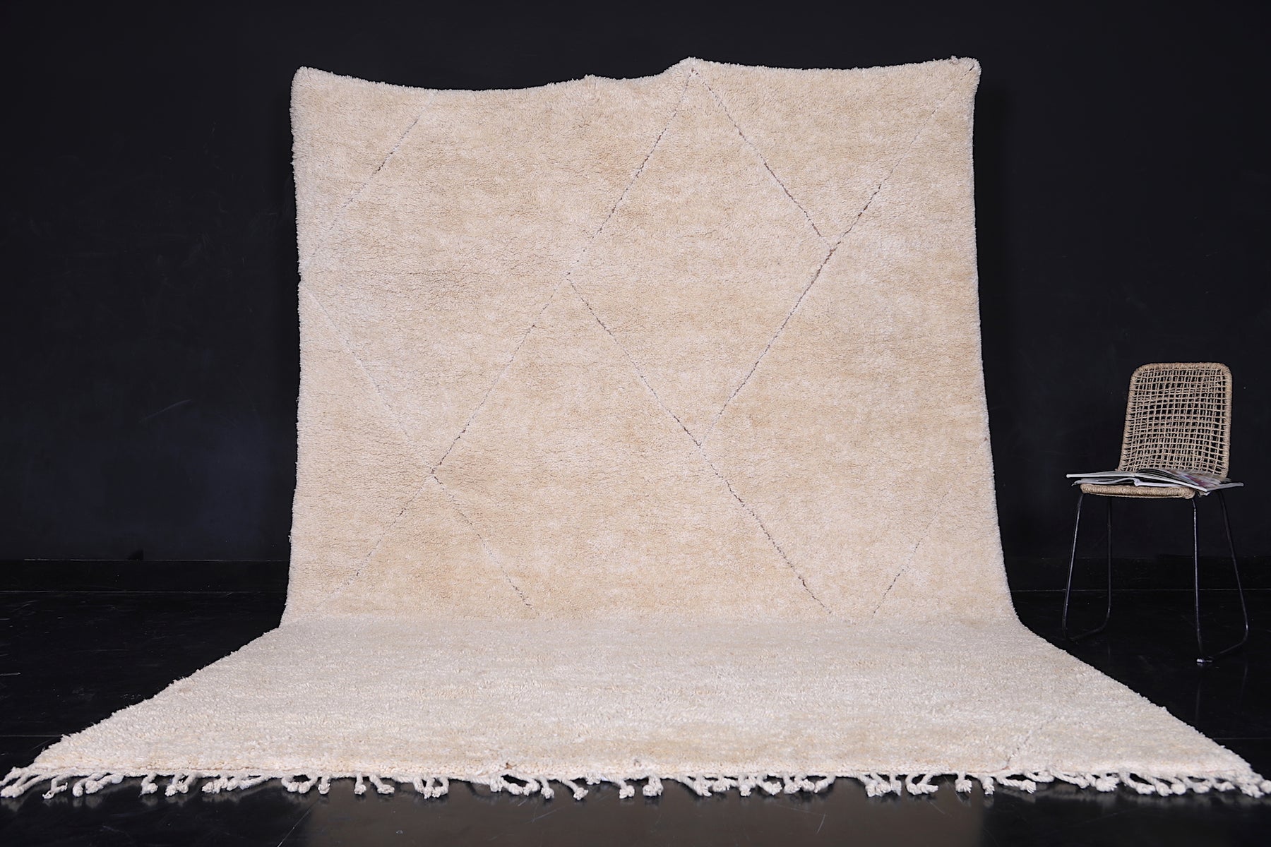 Add timeless elegance to your space with this authentic Beni Ourain Moroccan rug, handwoven from 100% natural wool. Featuring a soft cream background and subtle diamond lattice pattern, this minimalist rug brings warmth, texture, and sophistication to any room. Perfect for modern, bohemian, or Scandinavian-inspired interiors, its plush pile offers luxurious comfort underfoot while showcasing traditional Berber craftsmanship. Ideal for living rooms, bedrooms, or cozy reading nooks, this neutral-toned rug effortlessly blends with any décor style.