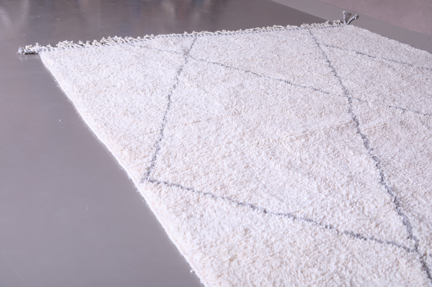 Add timeless warmth and authenticity to your space with this White Beni Ourain Rug. Handwoven from 100% natural wool by Berber artisans in the Atlas Mountains, this rug features a soft ivory base with classic gray diamond motifs—a hallmark of traditional Beni Ourain design. Its plush, high-pile texture offers both comfort and luxury, making it ideal for bedrooms, living rooms, or cozy reading corners. The minimalist color palette and geometric lines bring elegance to both modern and boho-chic interiors. Ethically crafted and designed to last, this rug is a beautiful blend of heritage, comfort, and contemporary style.