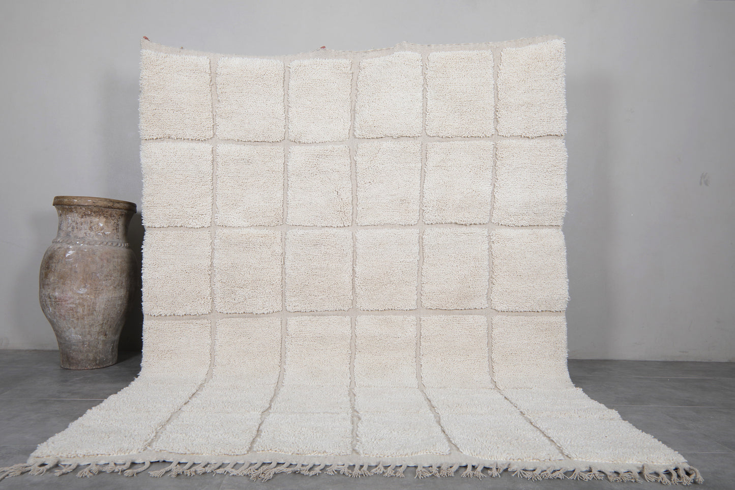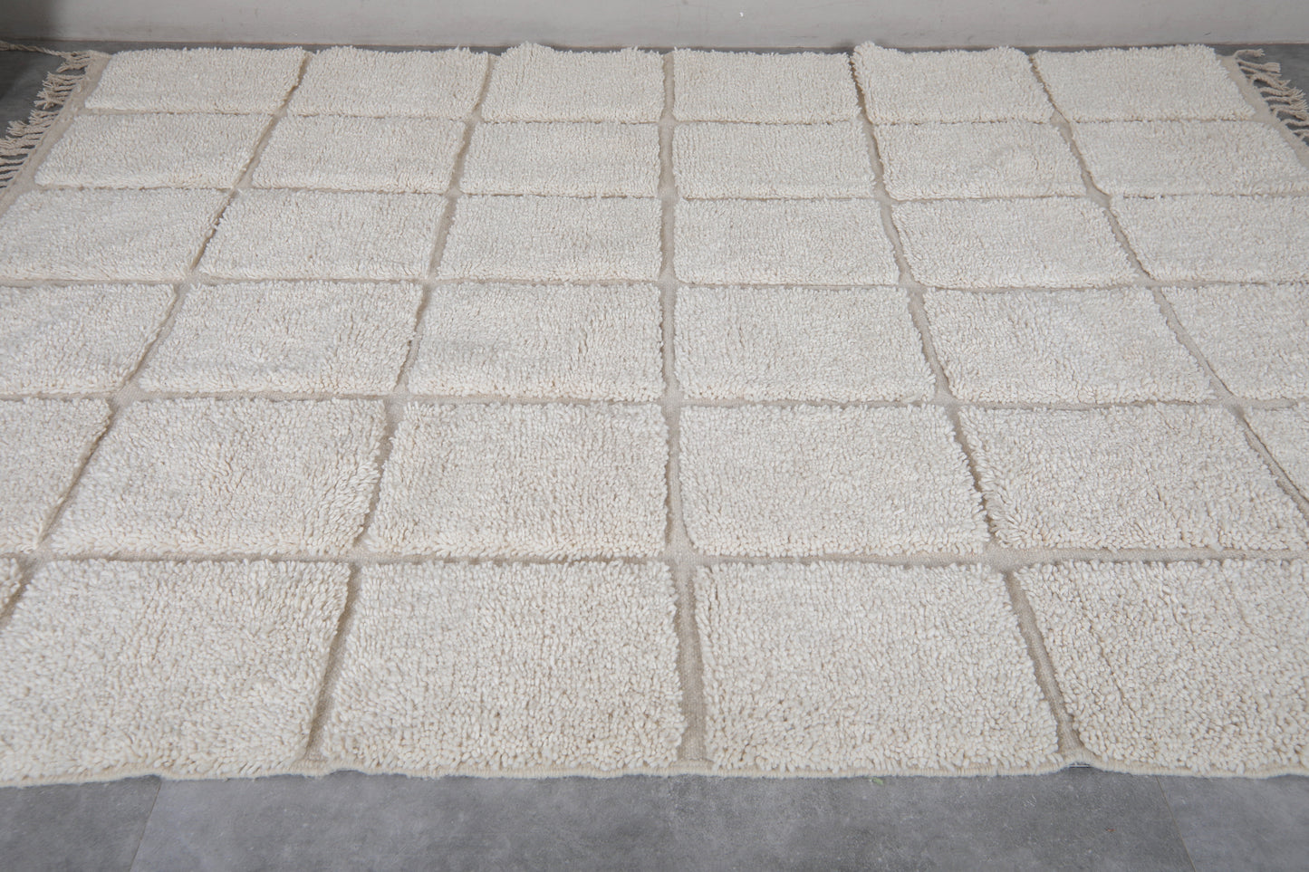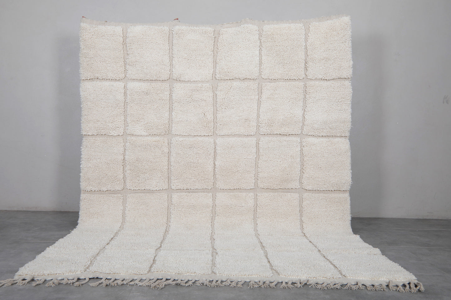 Custom size white Moroccan checkered wool rug