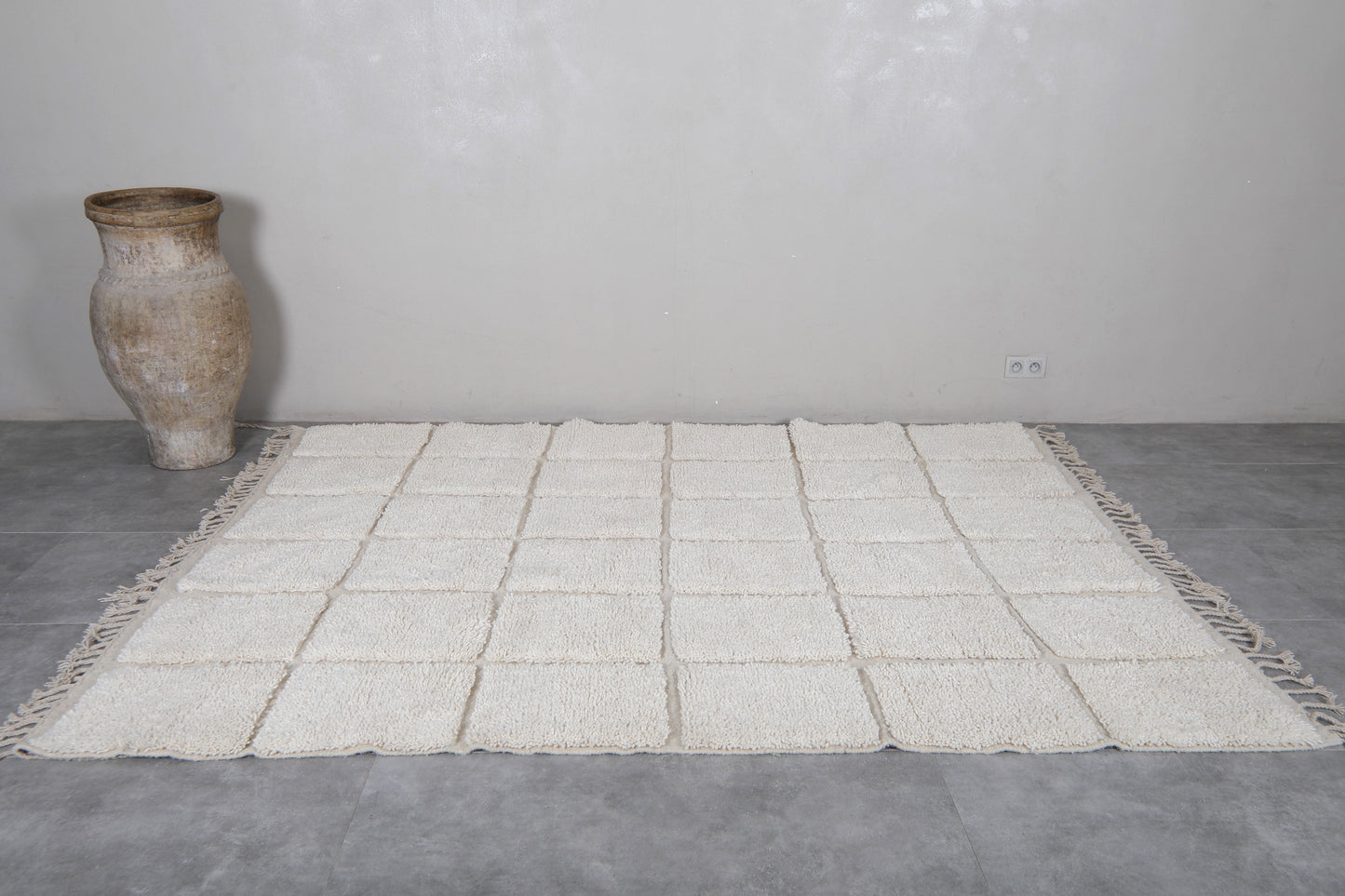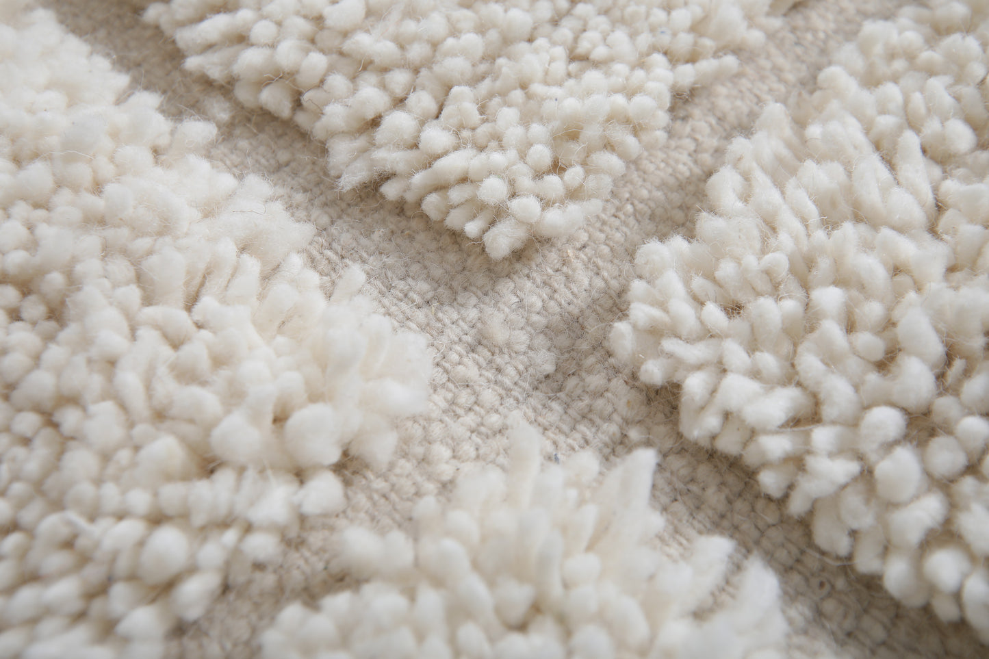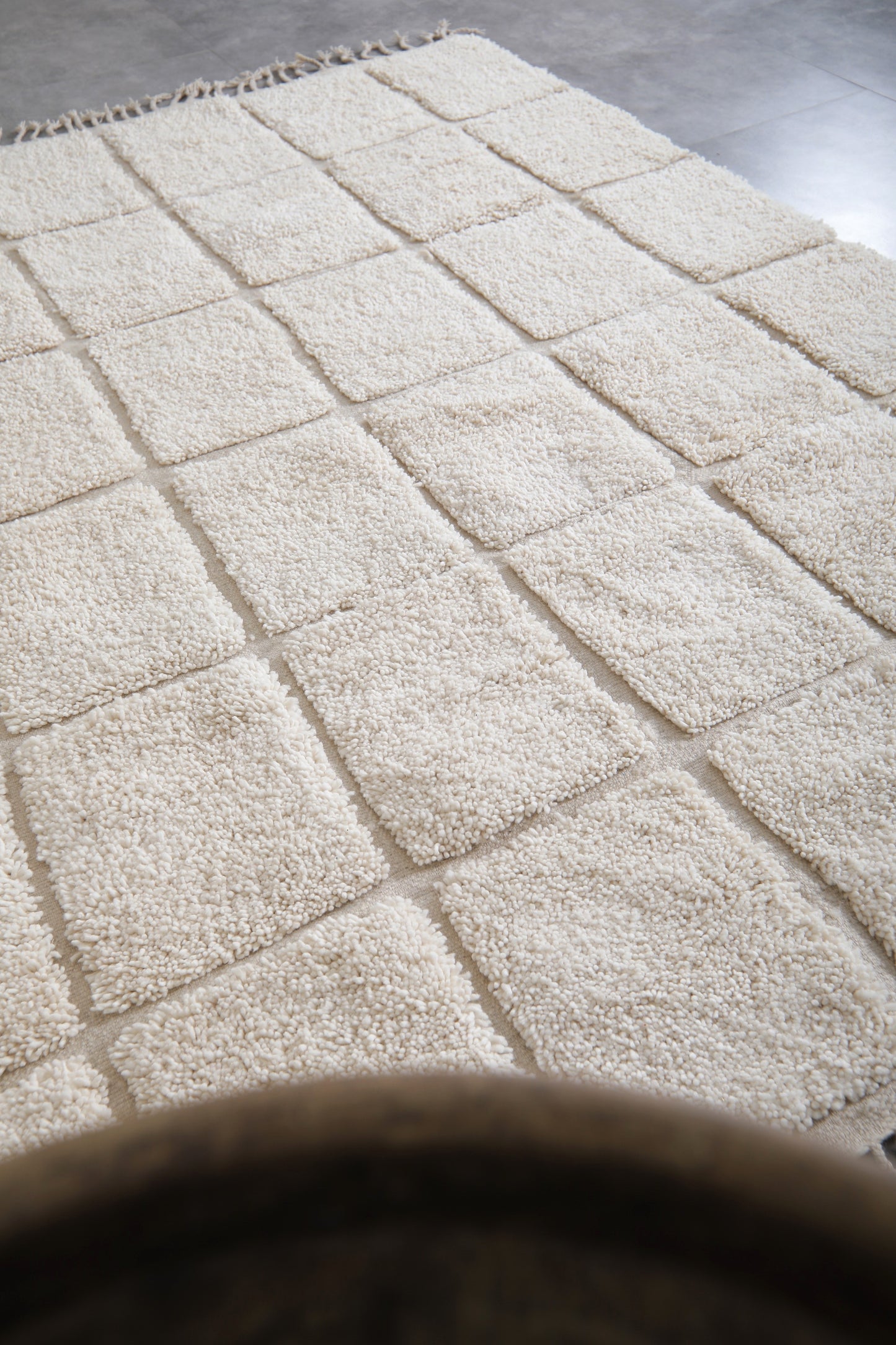 Custom size white Moroccan checkered wool rug