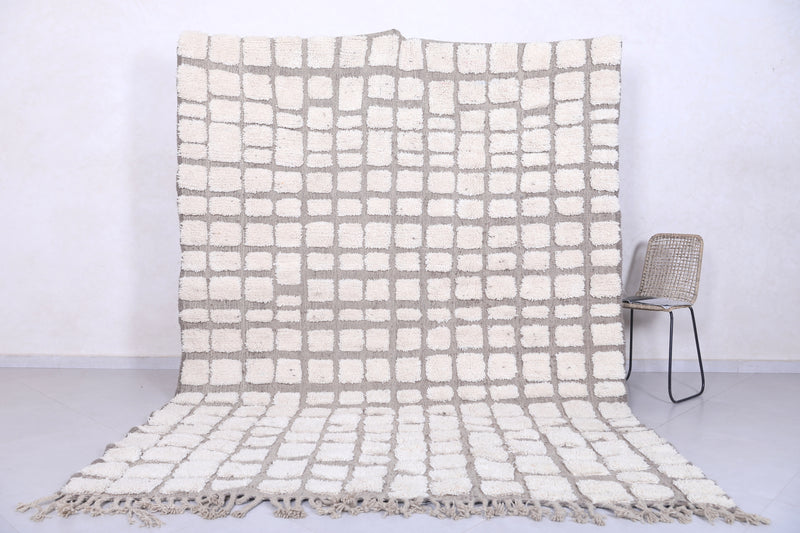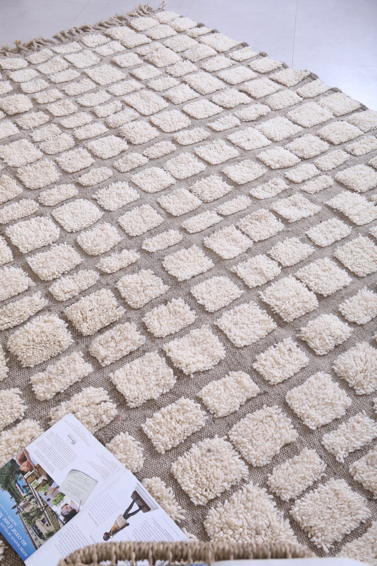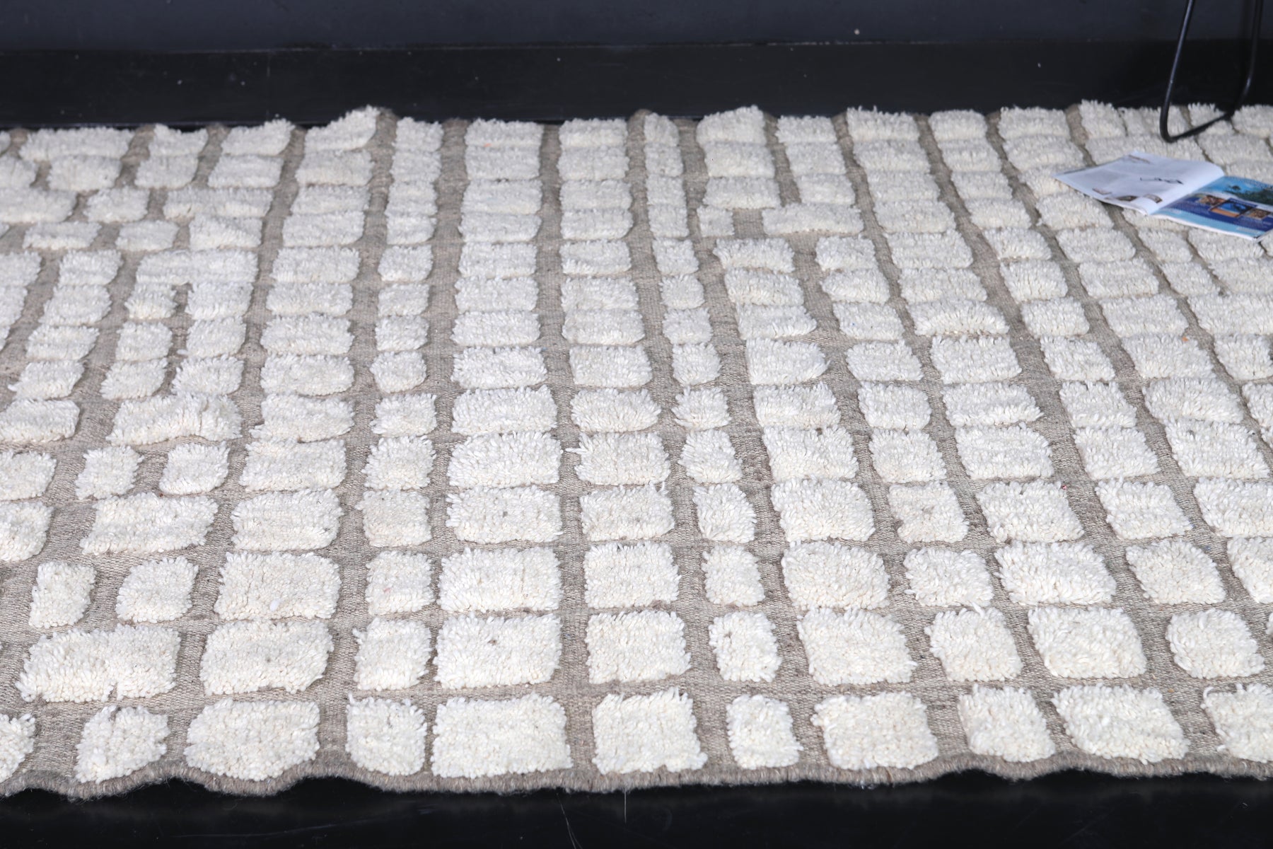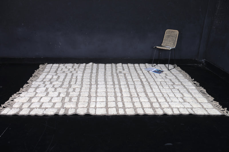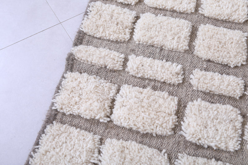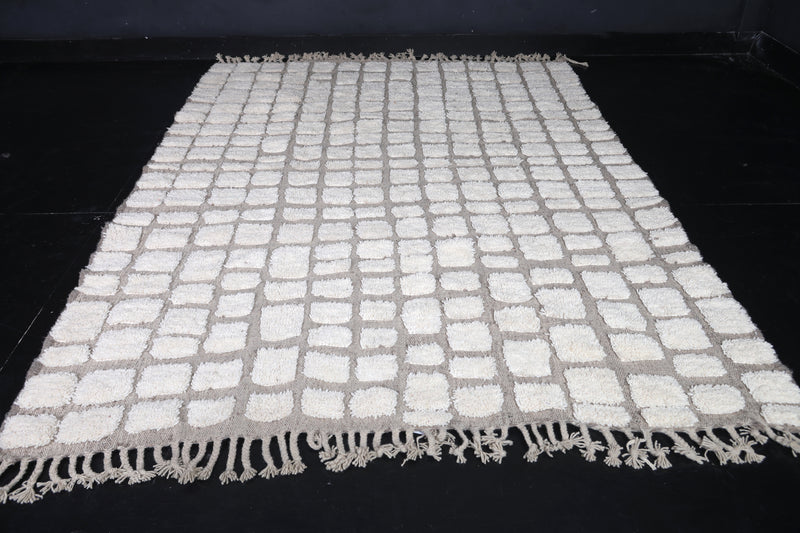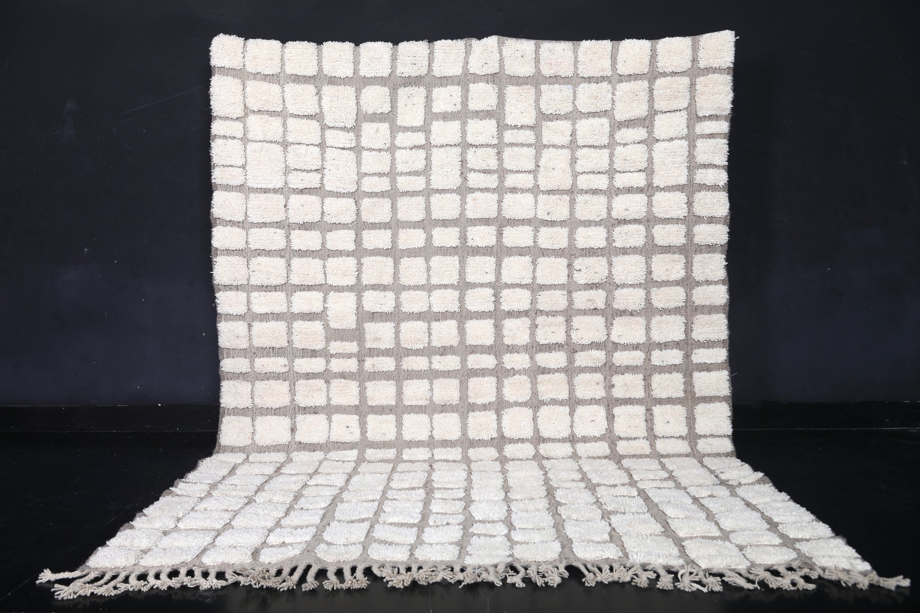 Add modern texture and artisanal charm to your home with this Checkered Moroccan Rug in Cream and grey. Handwoven by skilled Berber artisans, this rug features a unique grid-like pattern that blends traditional Moroccan weaving with a clean, minimalist aesthetic. The soft cream pile contrasts beautifully against a natural taupe base, creating a cozy yet sophisticated look.