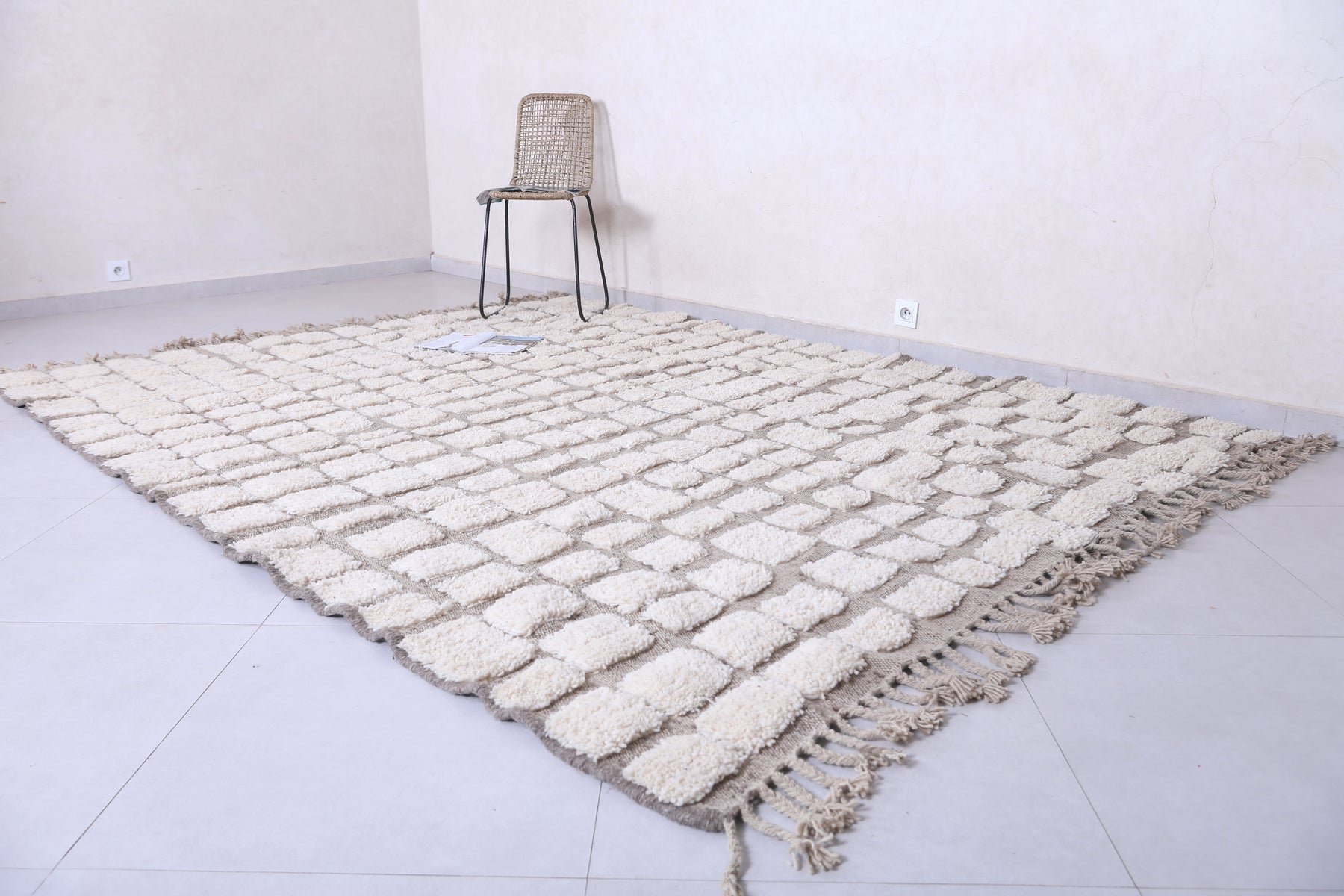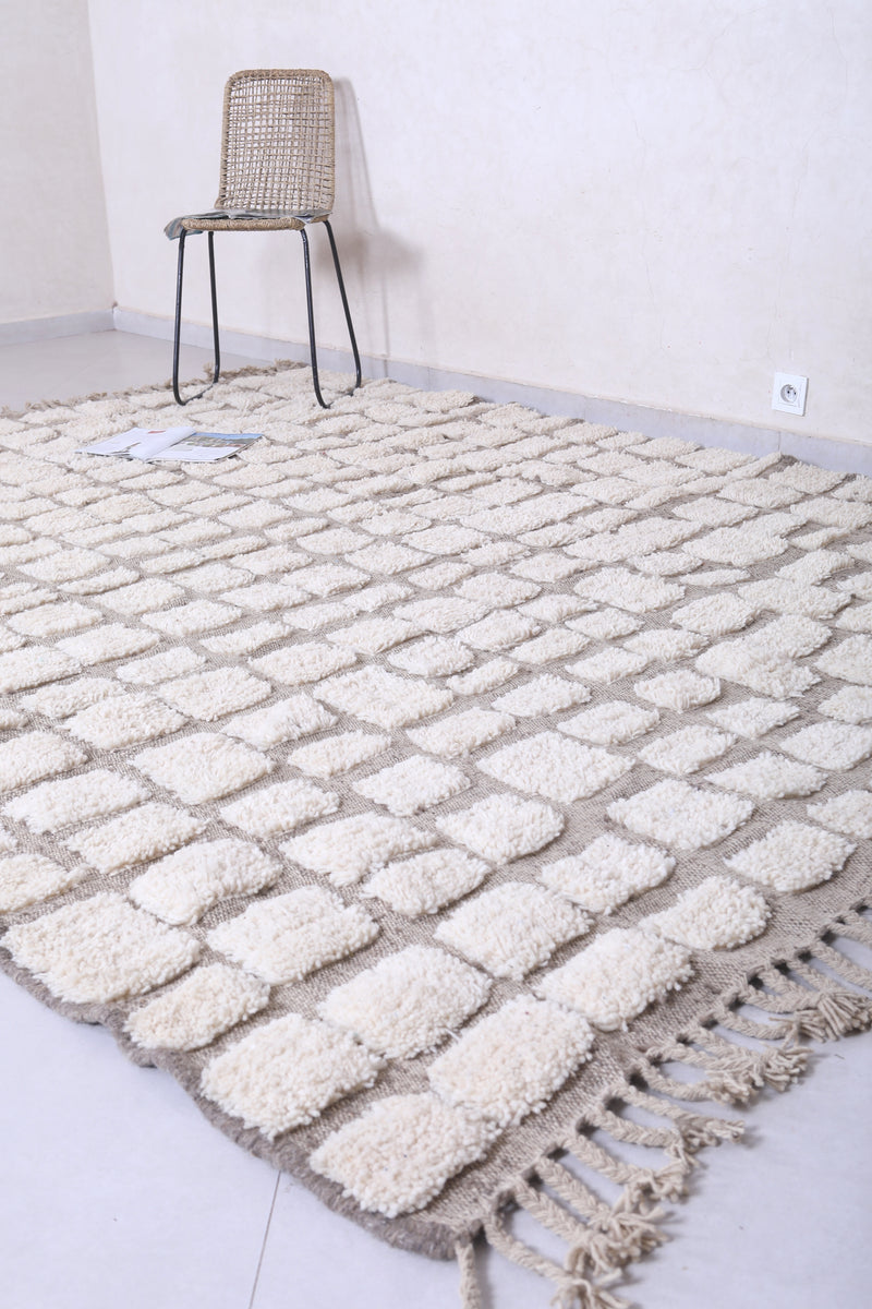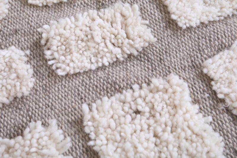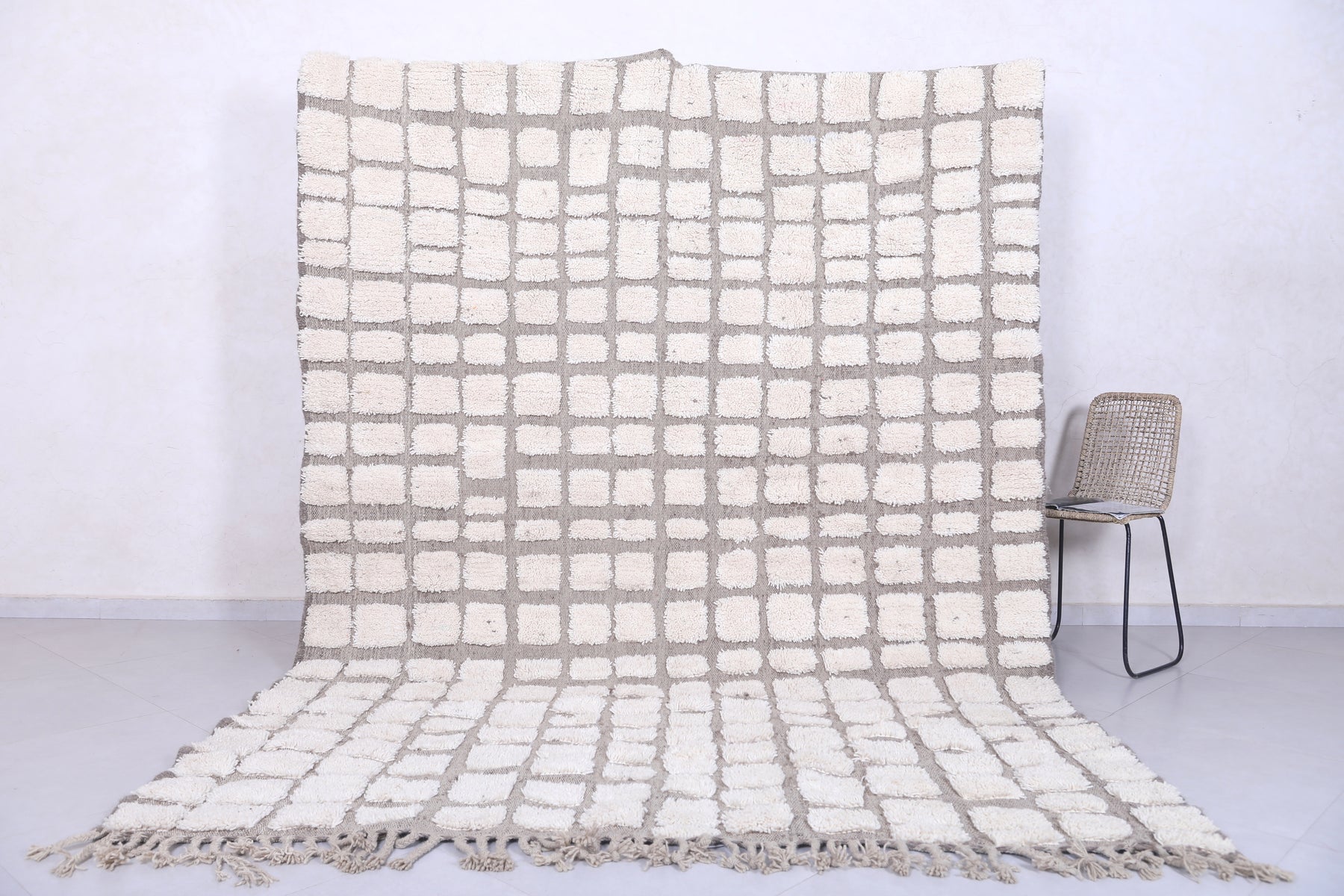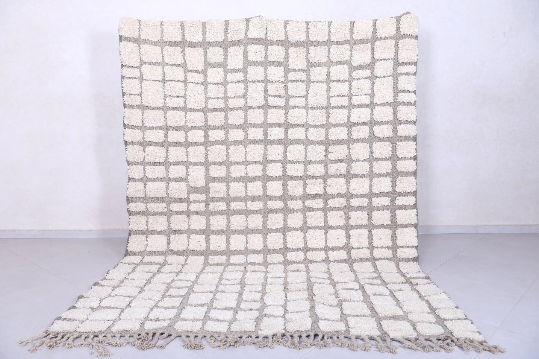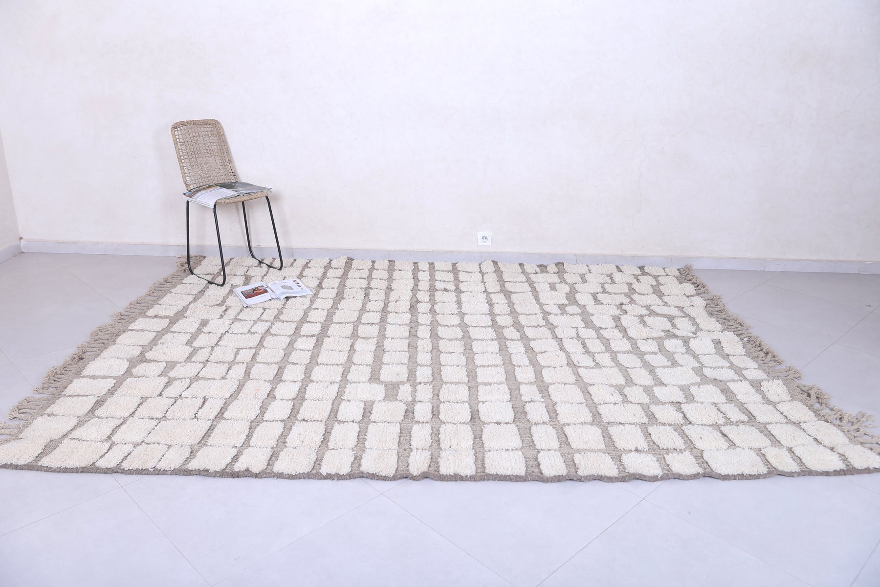 Add modern texture and artisanal charm to your home with this Checkered Moroccan Rug in Cream and grey. Handwoven by skilled Berber artisans, this rug features a unique grid-like pattern that blends traditional Moroccan weaving with a clean, minimalist aesthetic. The soft cream pile contrasts beautifully against a natural taupe base, creating a cozy yet sophisticated look.