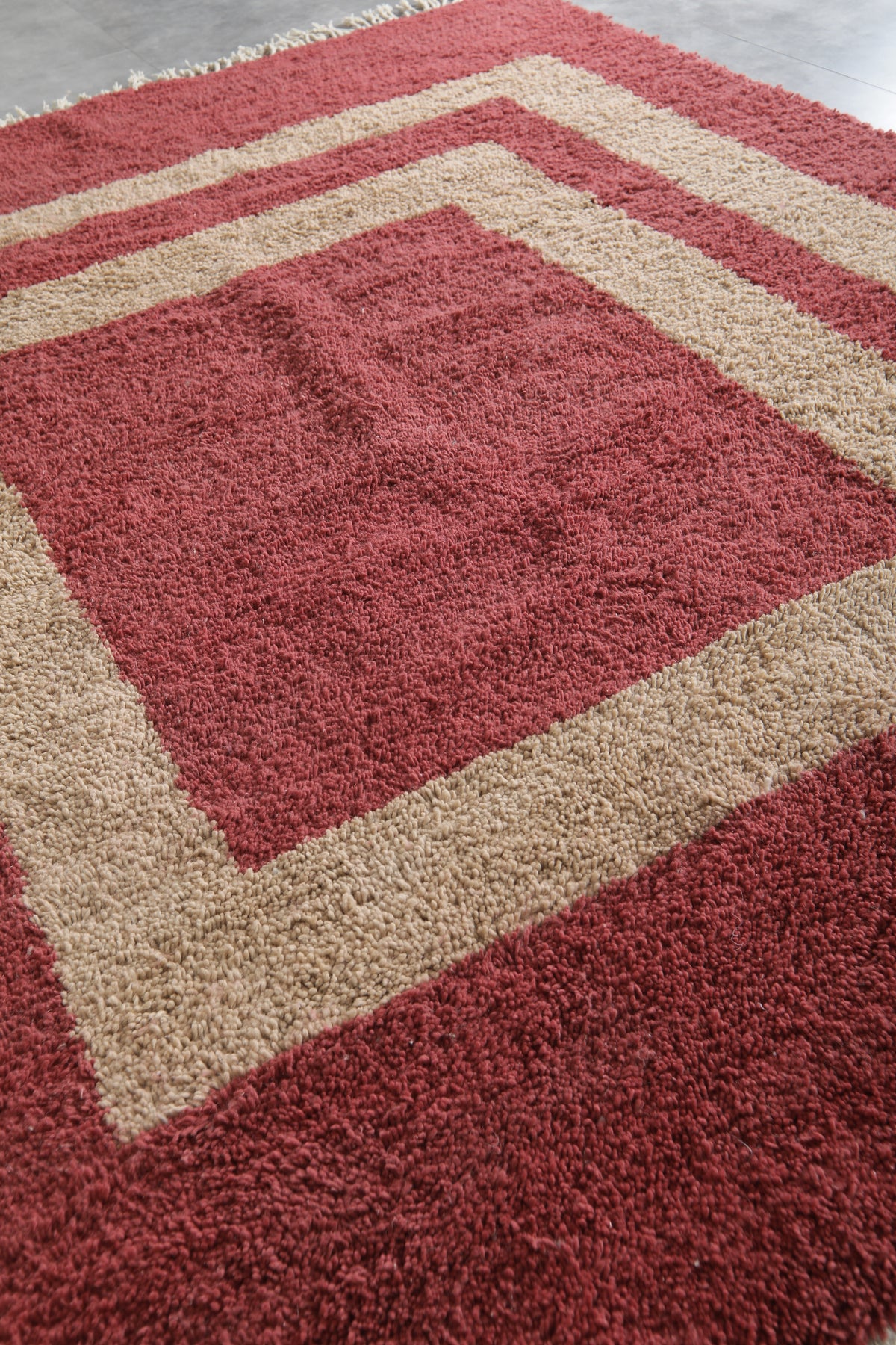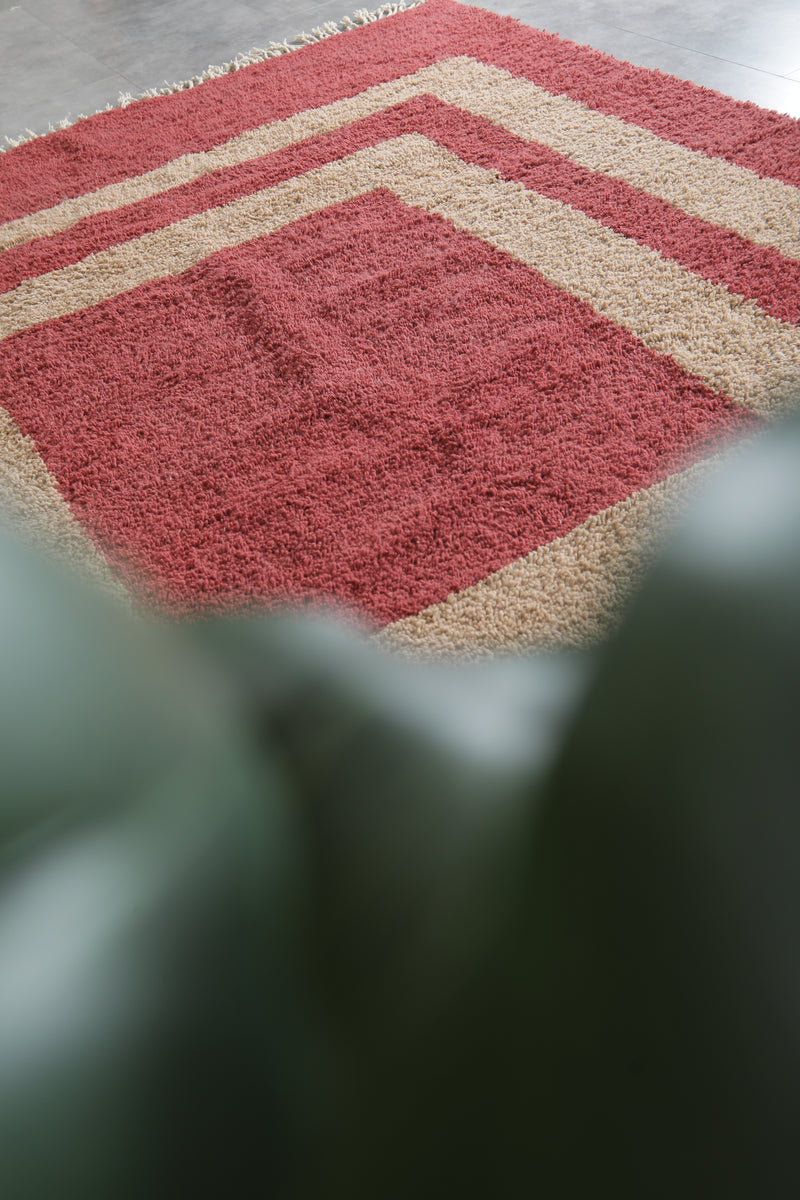 Custom handwoven Moroccan wool rug in red & beige