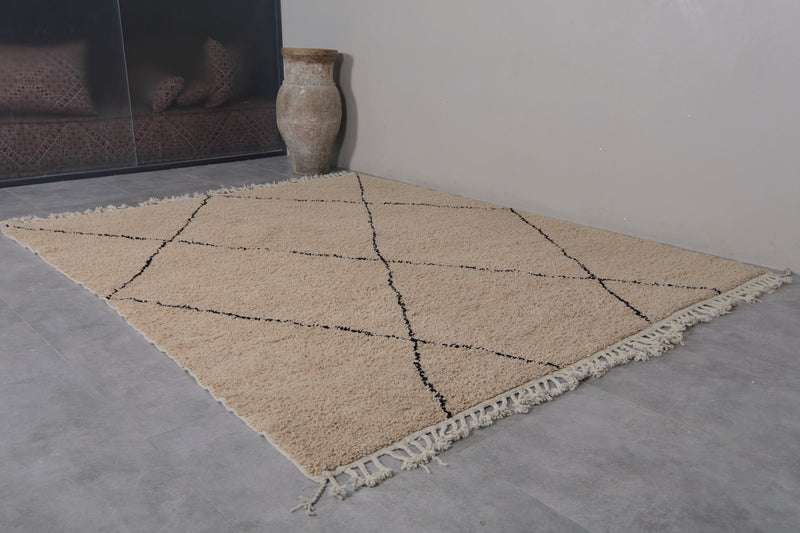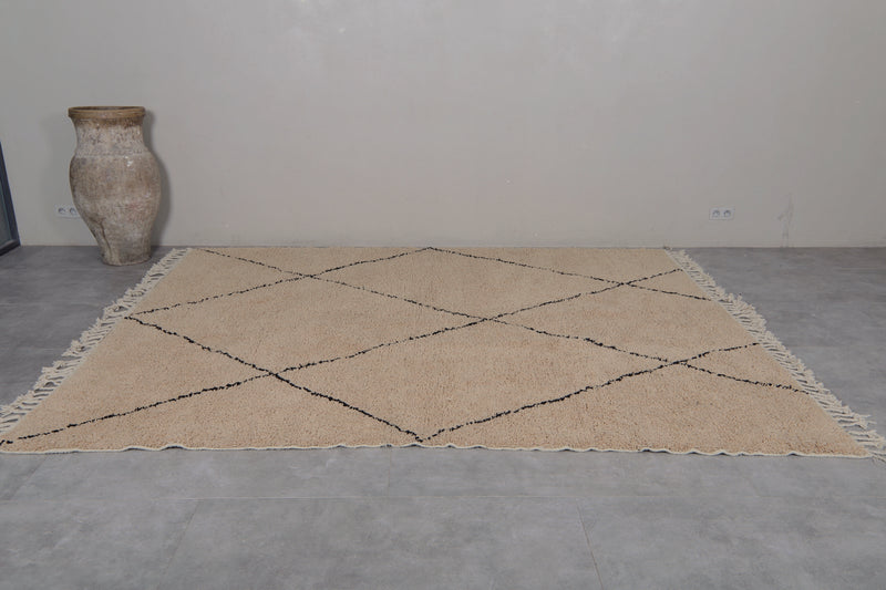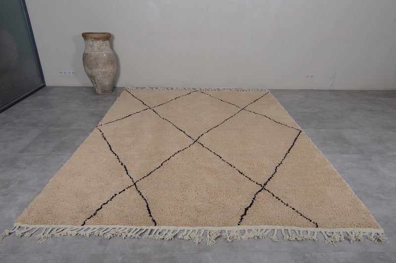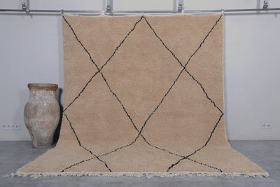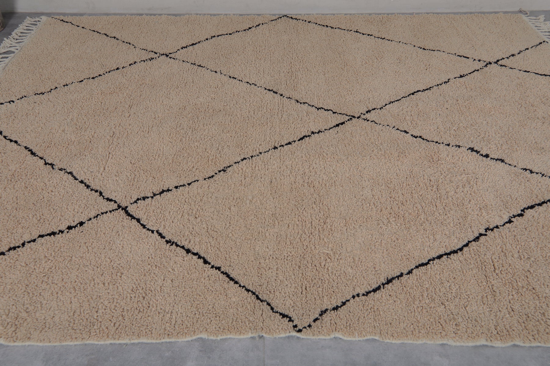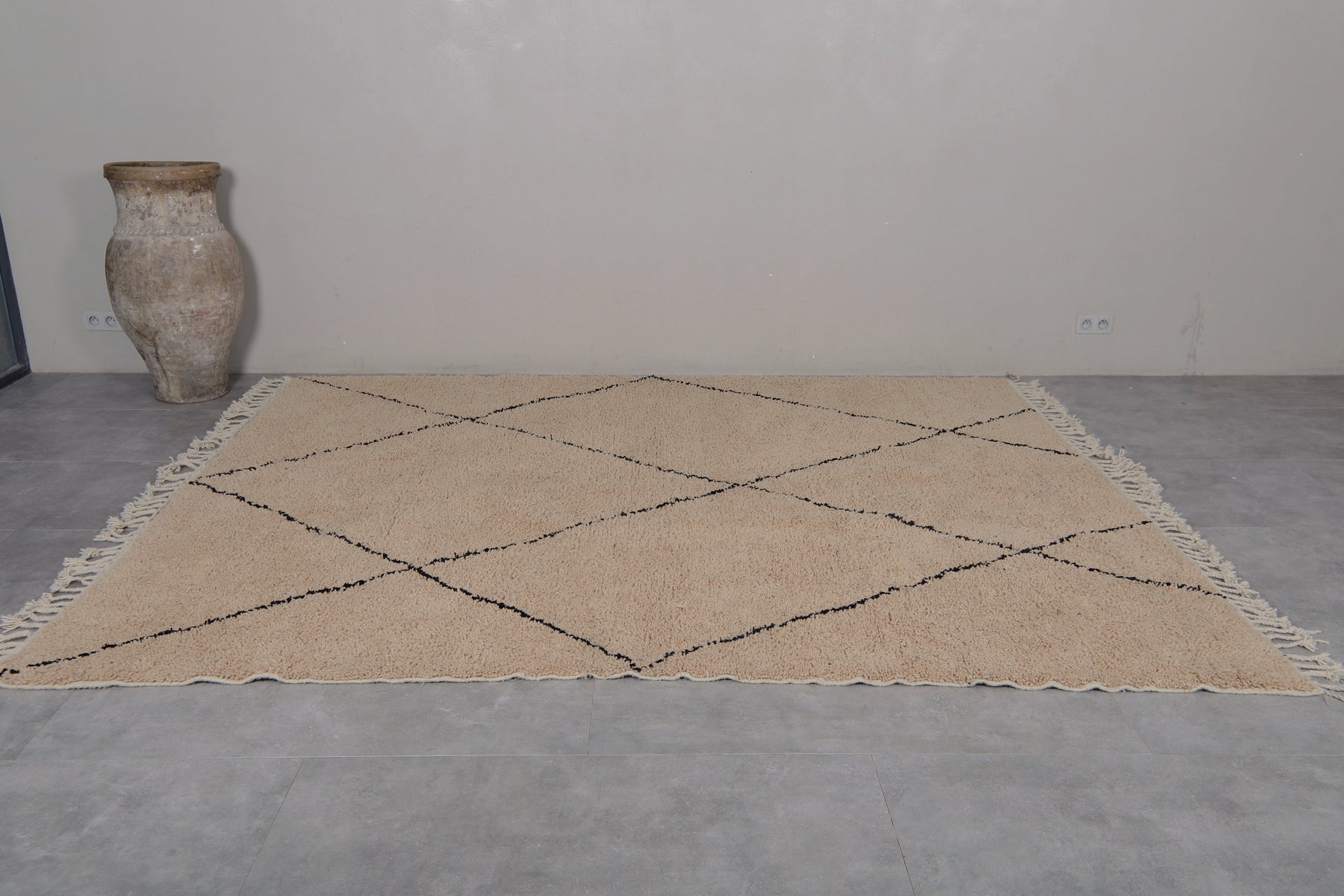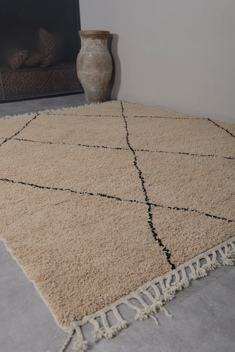 Infuse your home with the rich heritage of Morocco with this handwoven Beni Ourain rug, crafted by skilled artisans using traditional Berber techniques. This stunning beige Moroccan rug features a classic diamond lattice pattern in black, delivering the perfect balance of minimalist elegance and cultural charm.