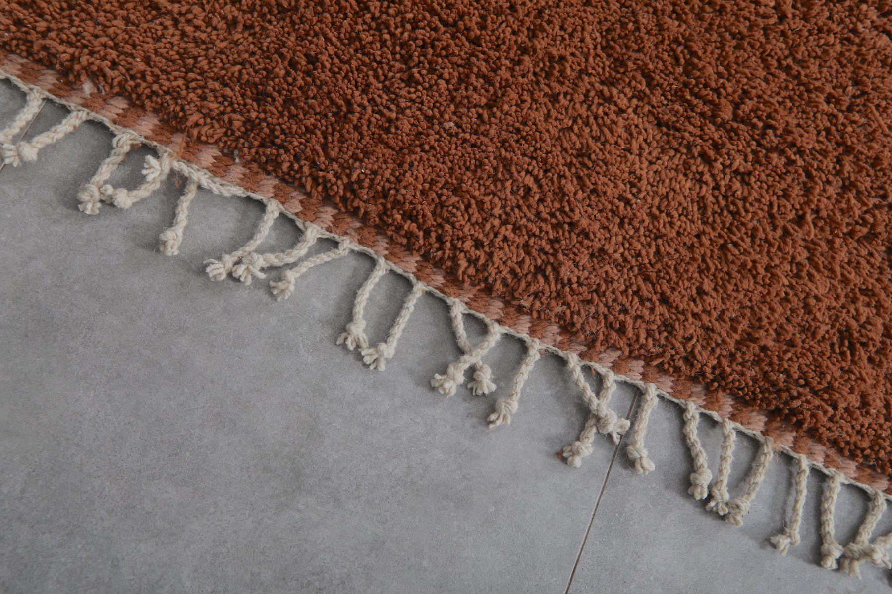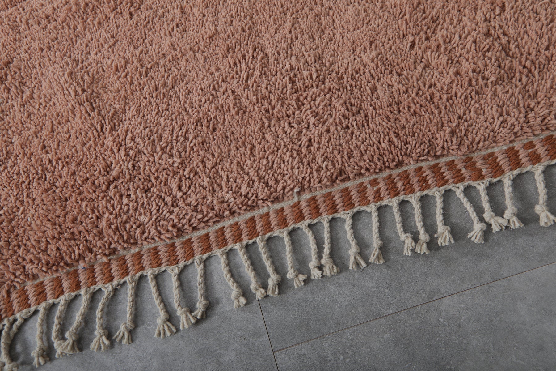 Add warmth and modern charm to your space with our Minimalist Pink & Brown Rug, a perfect balance of soft blush and earthy brown tones. Handwoven in the Berber tradition, this unique rug blends contemporary minimalism with artisanal heritage for a grounded, elevated look.