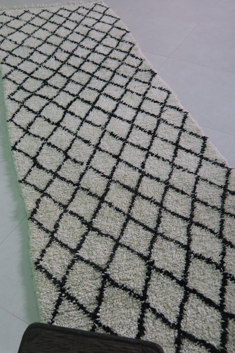 Enhance your home with this Diamond Moroccan Rug, sized at 3.1 x 9.3 feet (95 CM x 285 CM). Featuring a striking black diamond pattern on a soft beige background, this handcrafted runner blends traditional Berber craftsmanship with modern aesthetics.