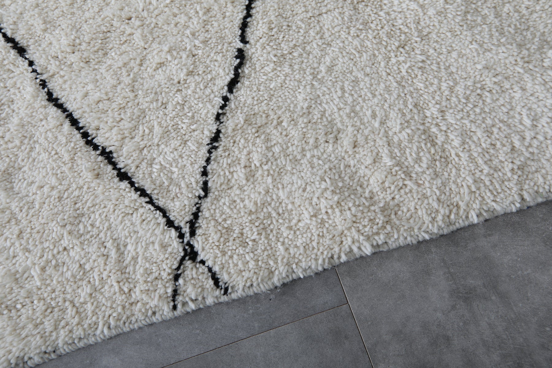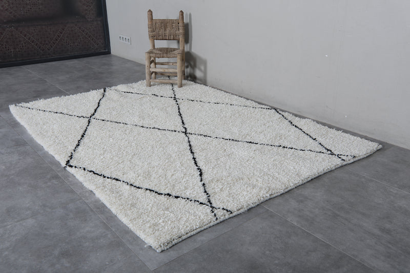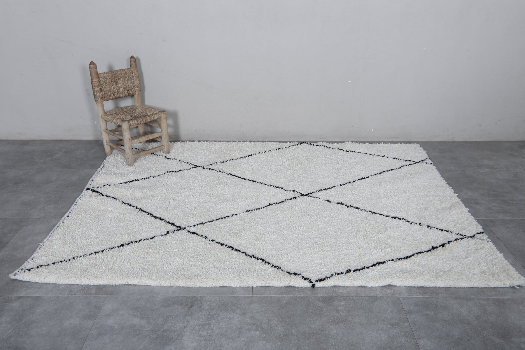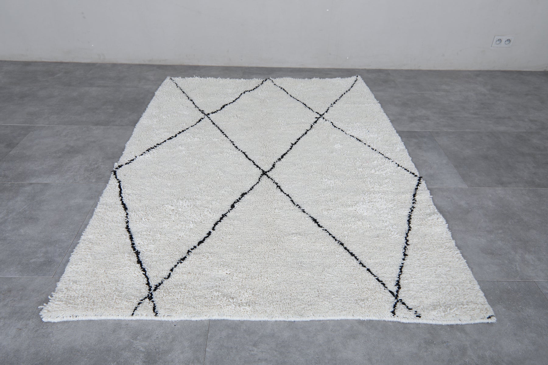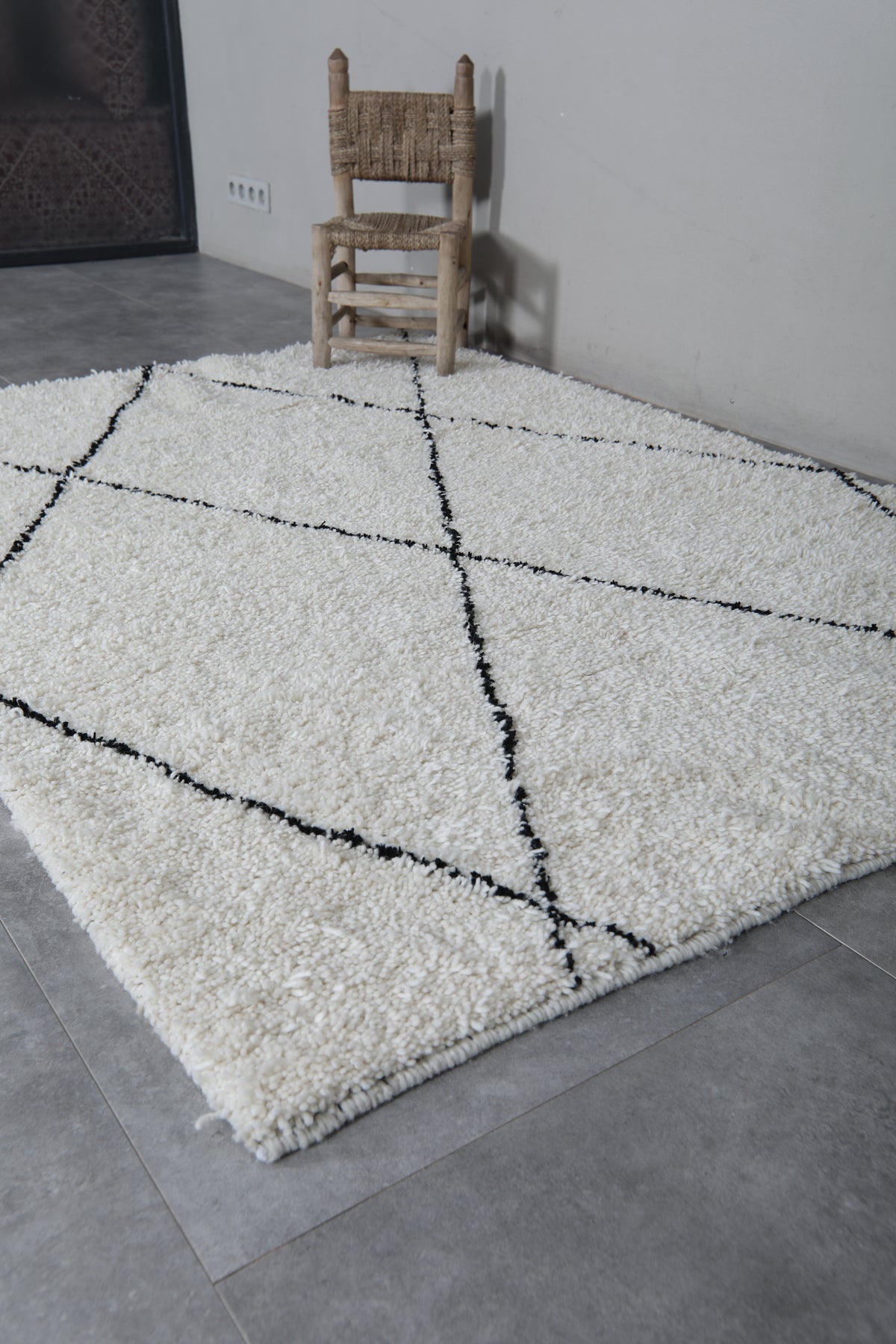 Bring timeless elegance to your home with this Diamond Moroccan Rug, handwoven from soft natural wool. Measuring 5.1 x 7.1 feet (156 CM x 217 CM), this rug features a classic diamond pattern in bold black lines on a neutral white background, making it a versatile addition to modern or traditional interiors. Its medium size and plush texture are perfect for adding warmth and sophistication to living rooms, bedrooms, or offices. Durable and stylish, this Moroccan rug is a testament to exceptional craftsmanship. Elevate your décor with this stunning handmade piece today!
