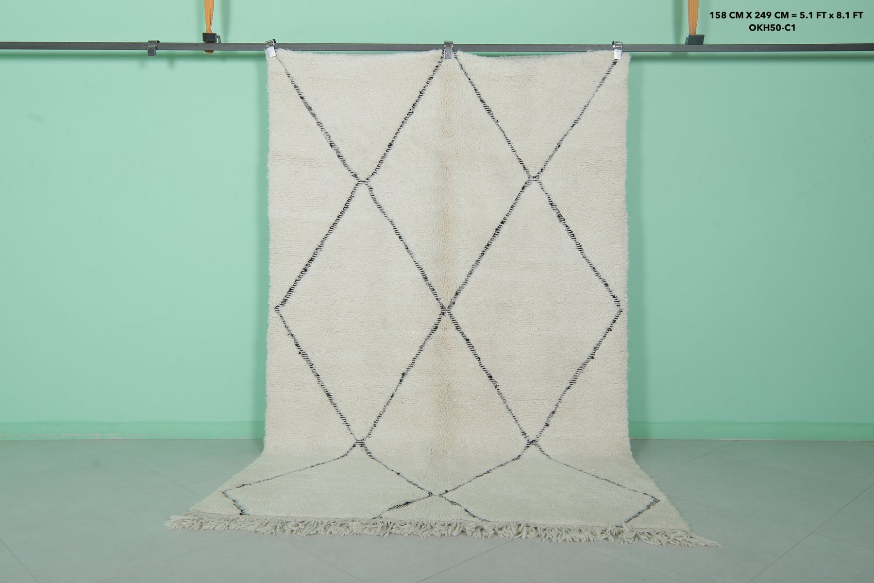 Bring a touch of Moroccan charm to your home with this Diamond Moroccan Rug 5.1 x 8.1 ft, handwoven from 100% natural wool. Featuring a striking diamond pattern, this rug stands out beautifully against its soft, neutral background.