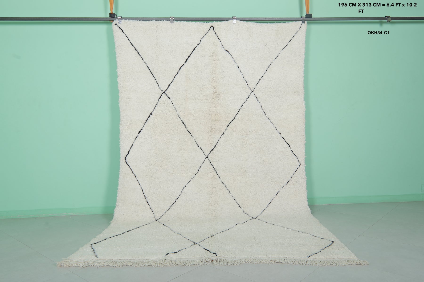 Transform your space with this stunning Diamond Moroccan Rug 6.4 x 10.2 ft, handwoven from luxurious natural wool. Featuring an elegant diamond pattern, this large rug adds a touch of Moroccan artistry to any interior.