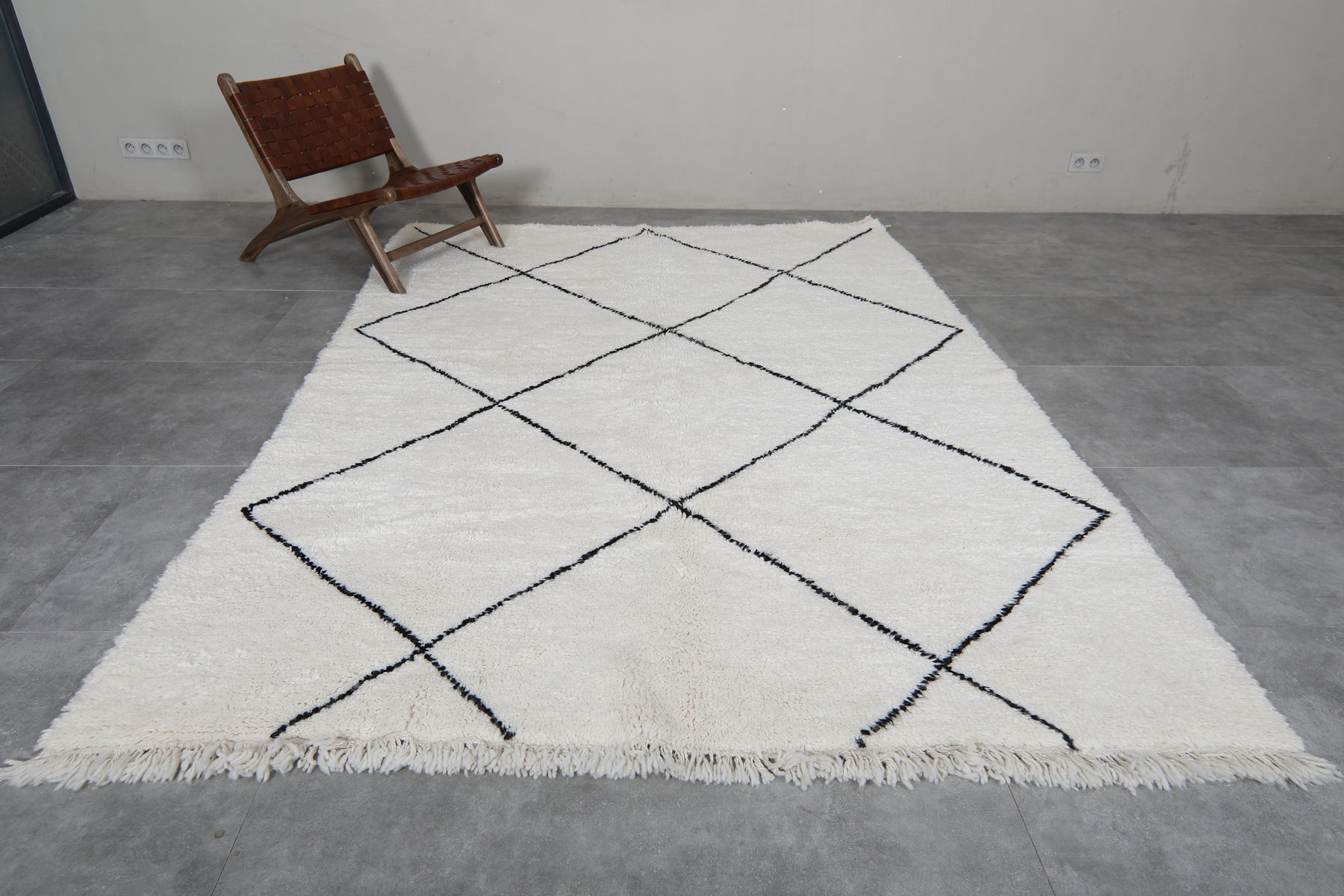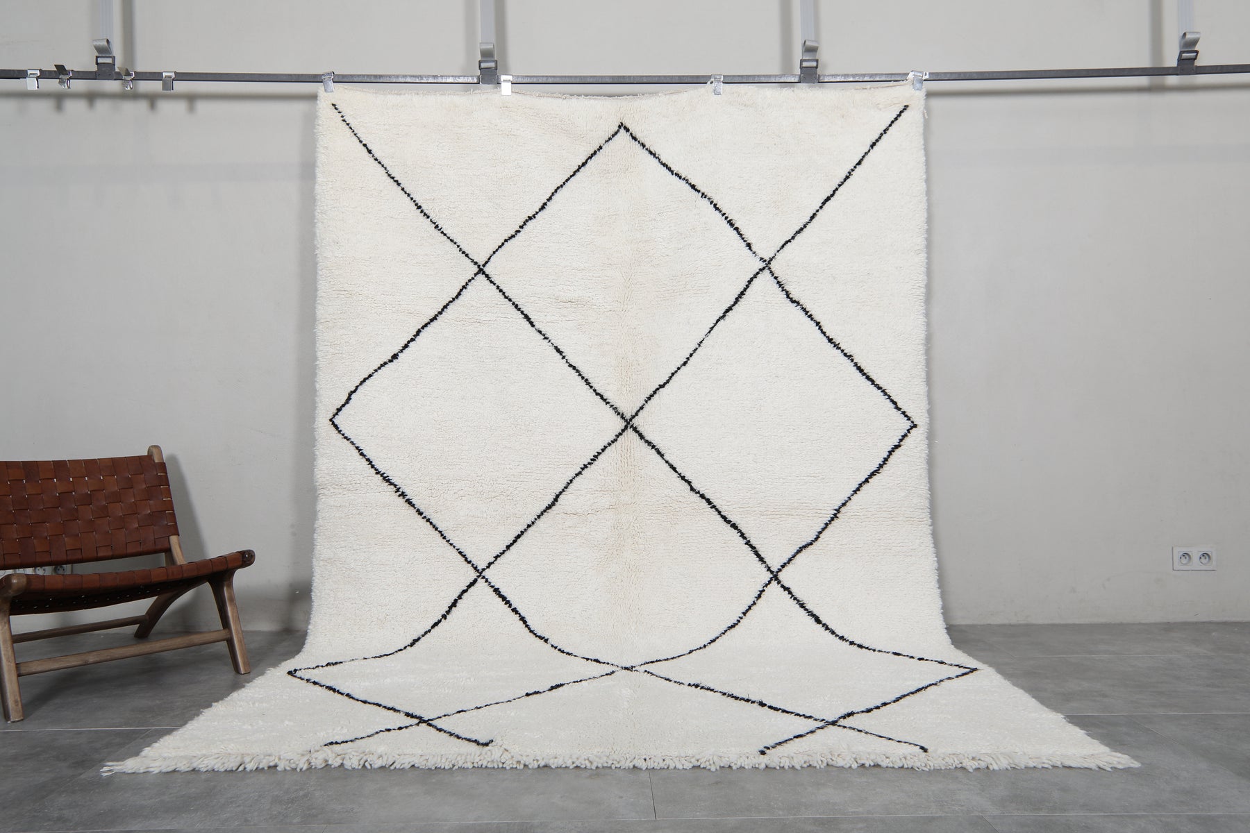 Diamond Moroccan wool rug - 6.8 x 9.3 Feet | Classic black & ivory design