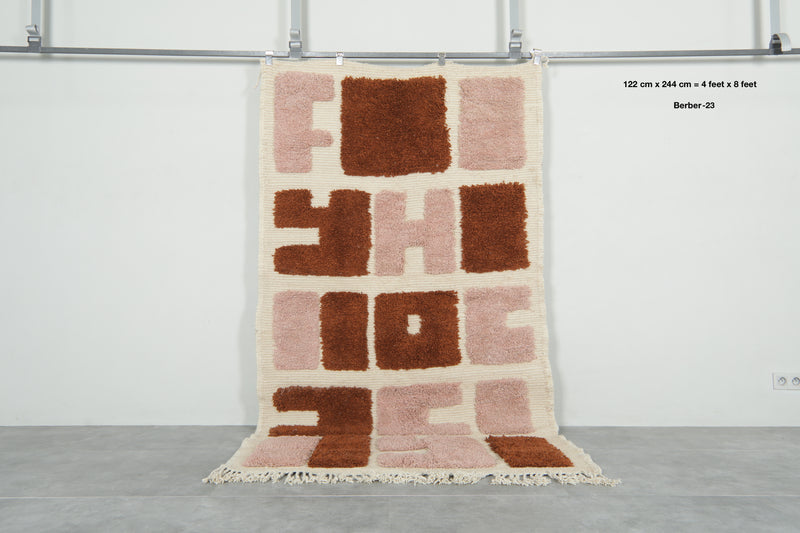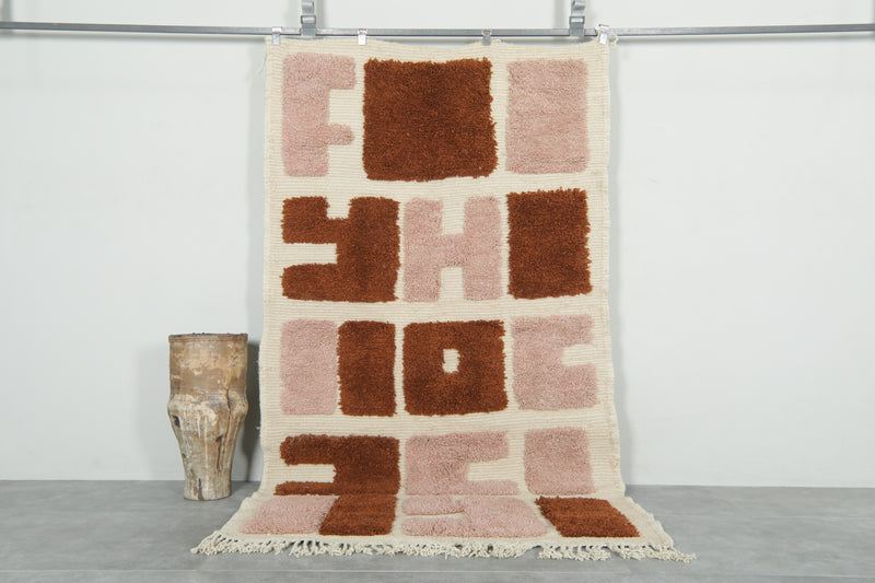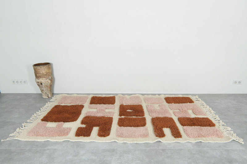 Modern abstract Moroccan rug – 3.6 x 6.2 ft bold rose & rust design