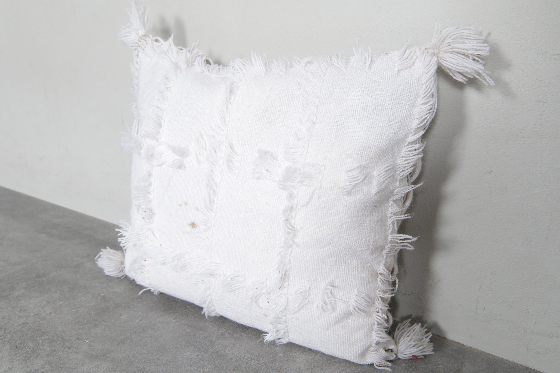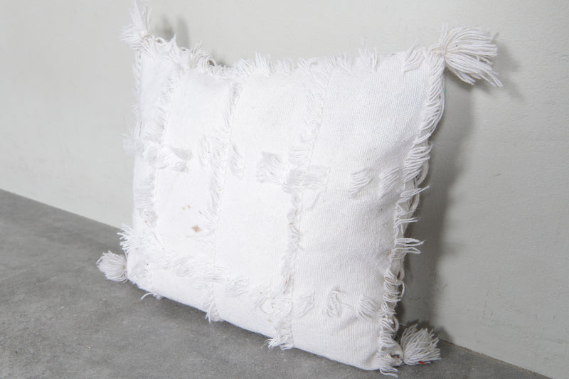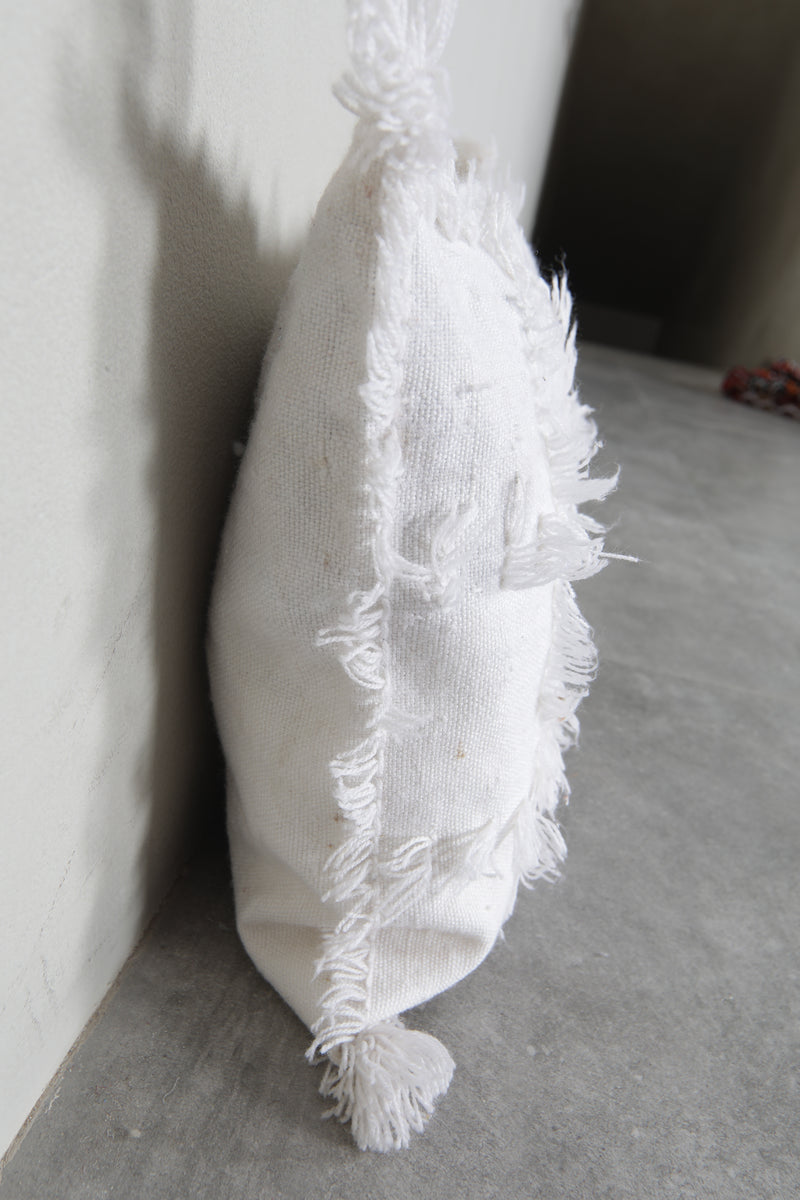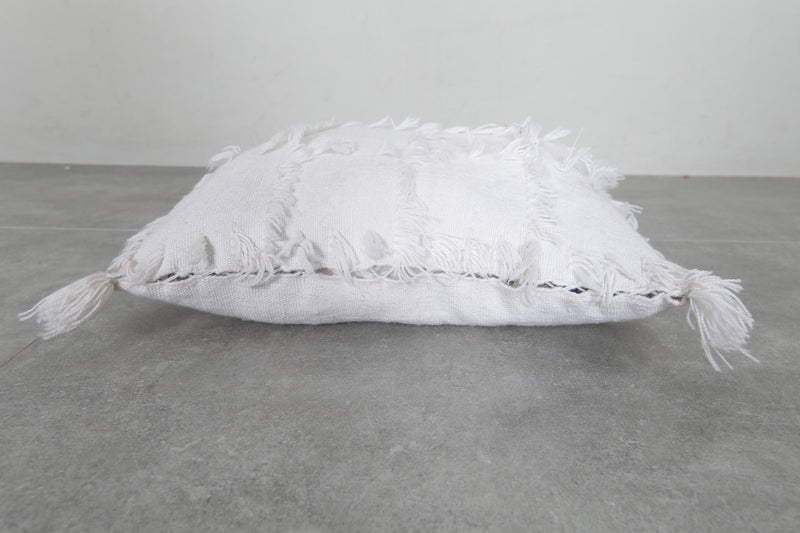 Add a touch of Moroccan elegance to your space with this fringed white pillow, measuring 17.3x20 inches. Featuring soft textured patterns and tassels, it's a perfect addition to boho-inspired interiors. Crafted for comfort and style, this cushion cover enhances any sofa or bedroom decor.