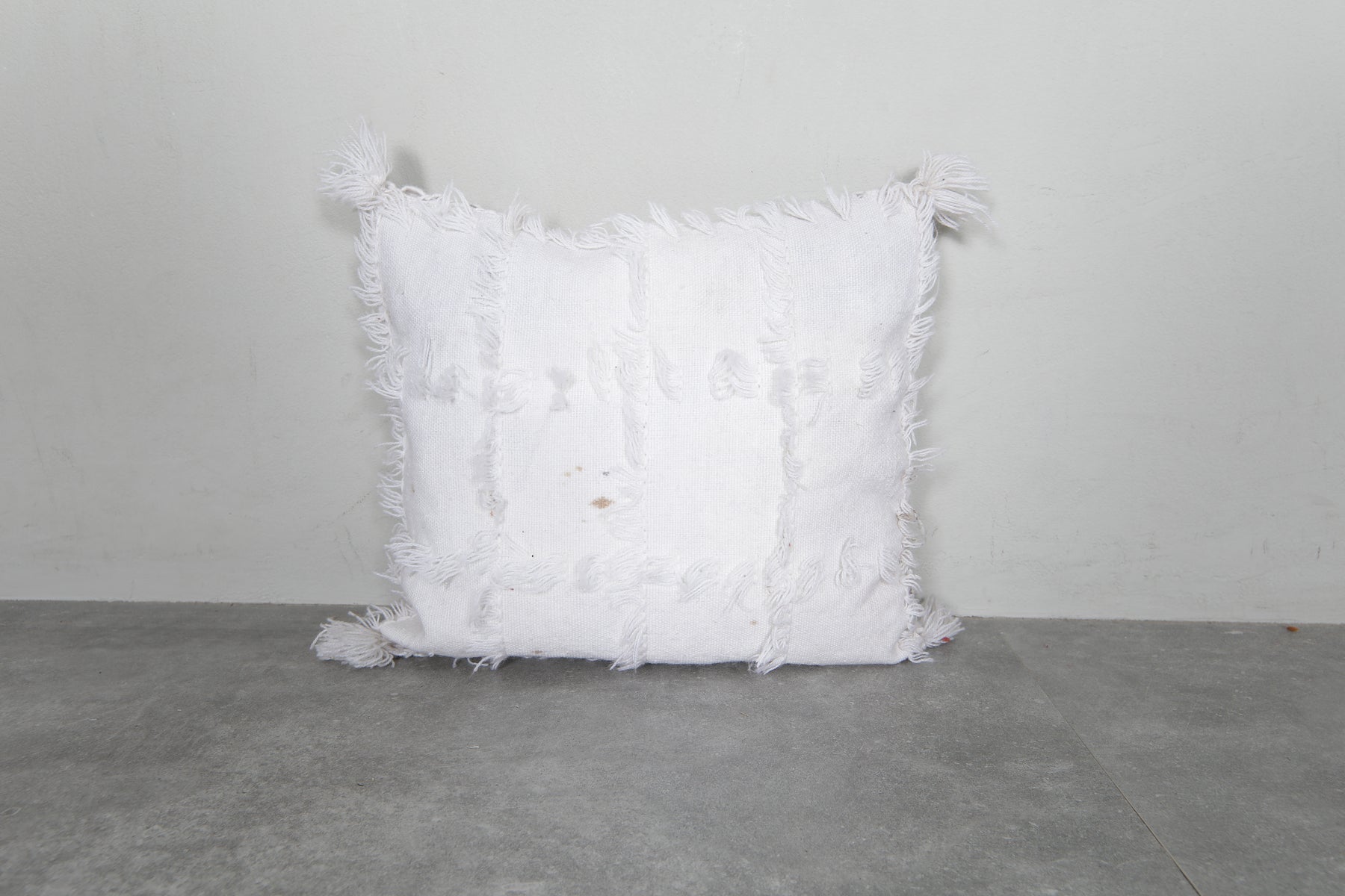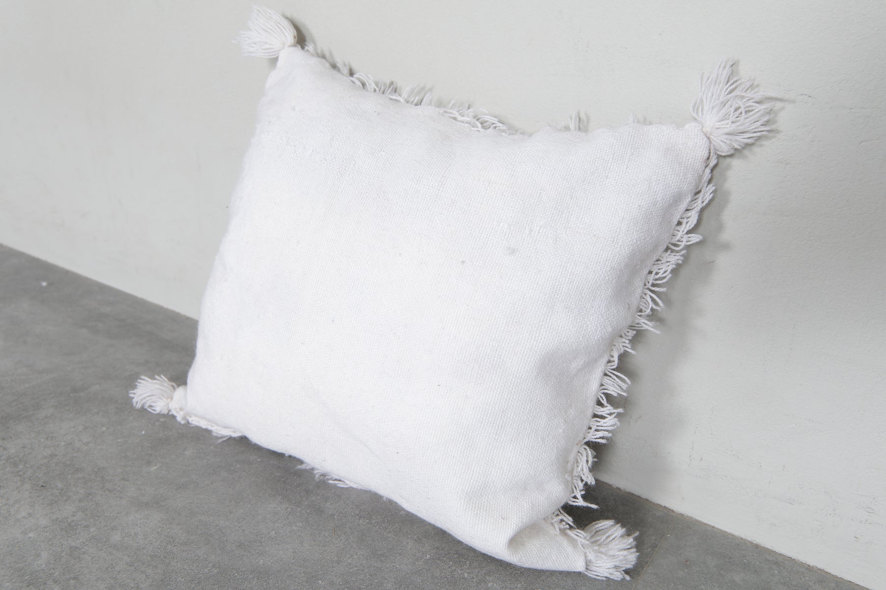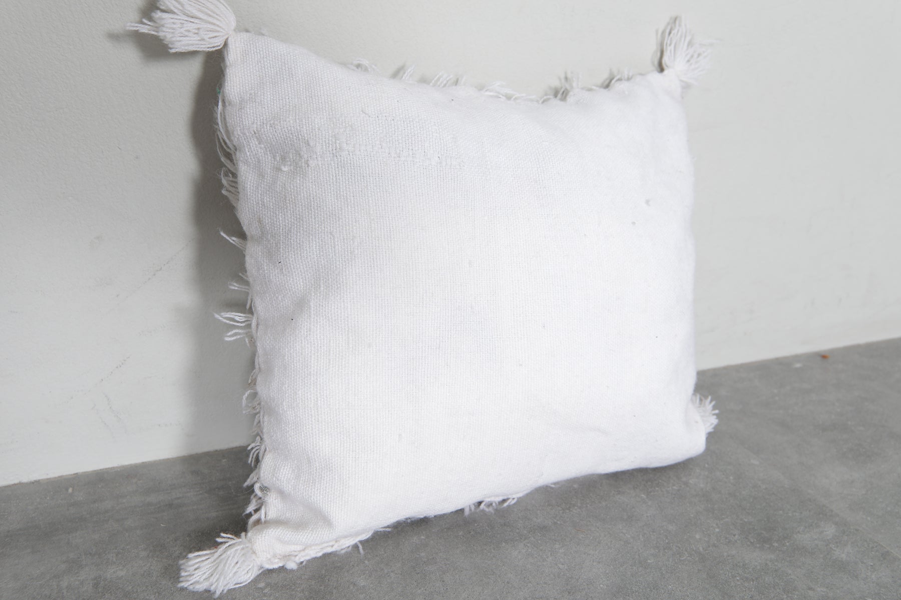 Add a touch of Moroccan elegance to your space with this fringed white pillow, measuring 17.3x20 inches. Featuring soft textured patterns and tassels, it's a perfect addition to boho-inspired interiors. Crafted for comfort and style, this cushion cover enhances any sofa or bedroom decor.