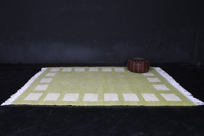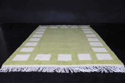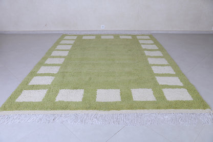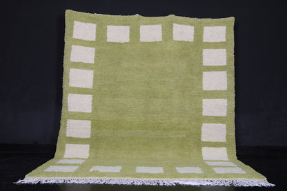 Add a bold yet earthy touch to your interior with this handcrafted sage green Moroccan rug, featuring a modern border of soft ivory rectangular motifs. Made from premium wool, this plush rug brings warmth, comfort, and minimalist elegance to any room. Ideal for boho, Scandinavian, or contemporary decor styles, it’s a timeless piece that blends artisanal tradition with modern design.