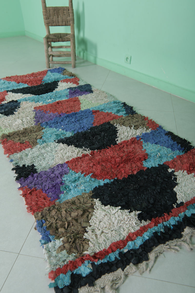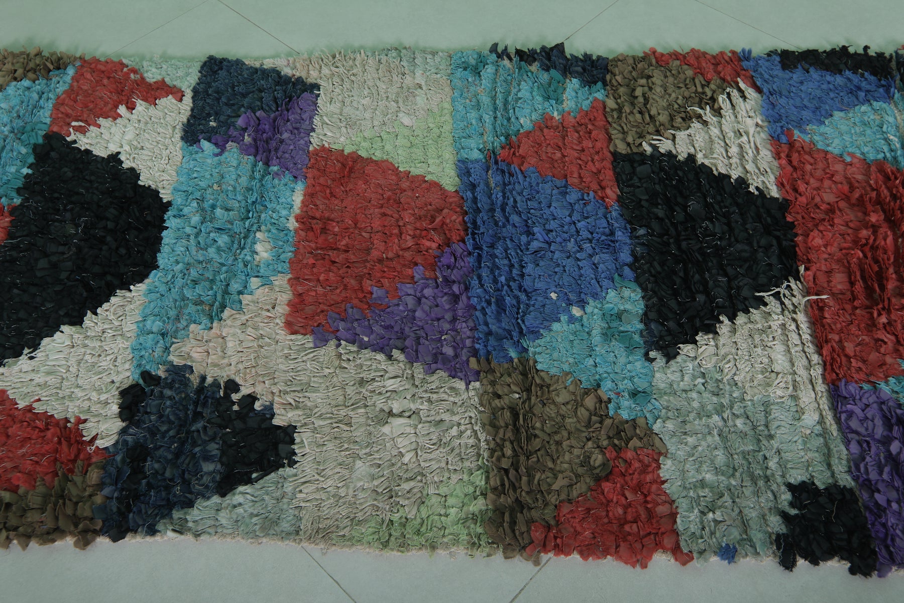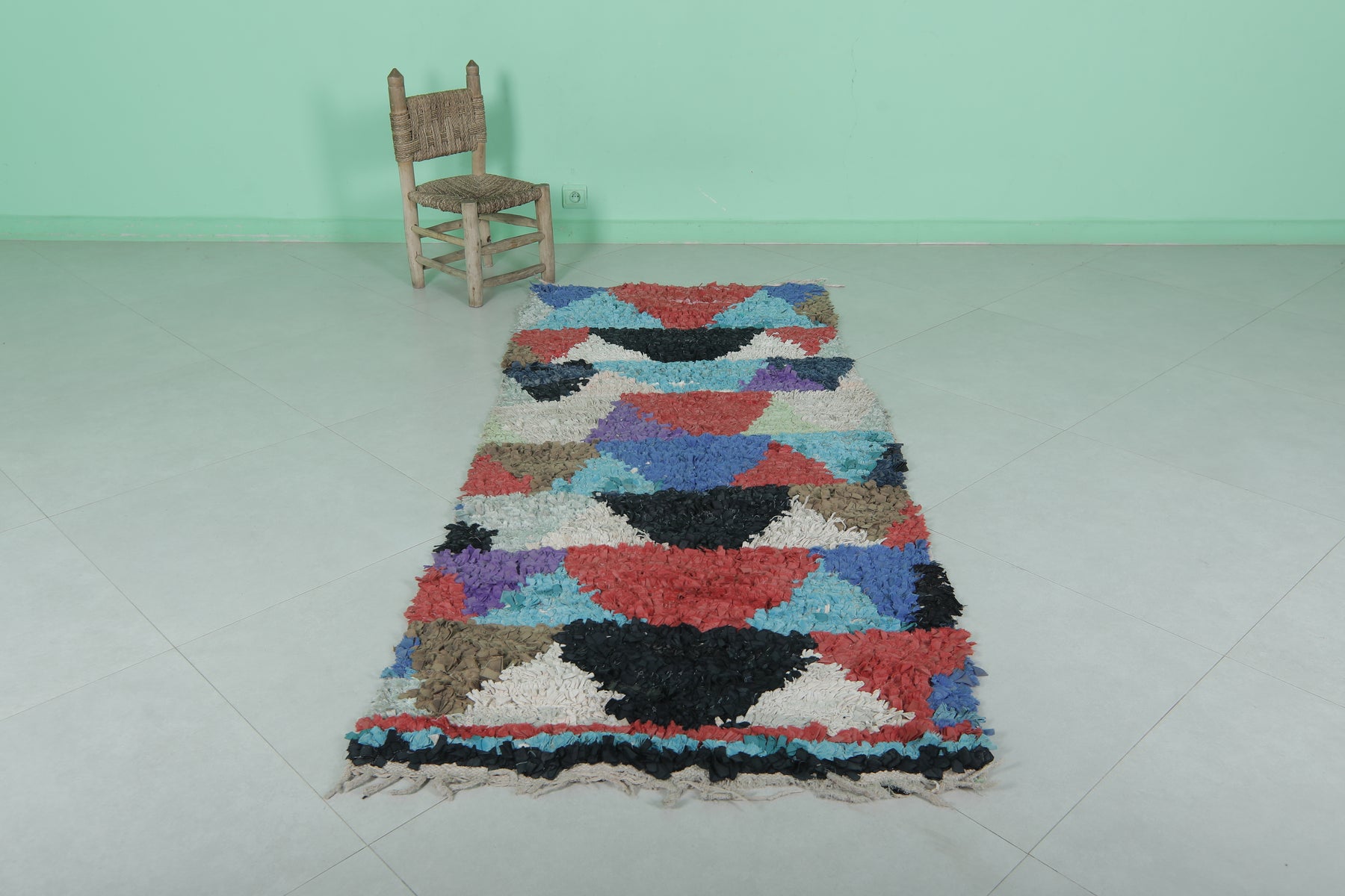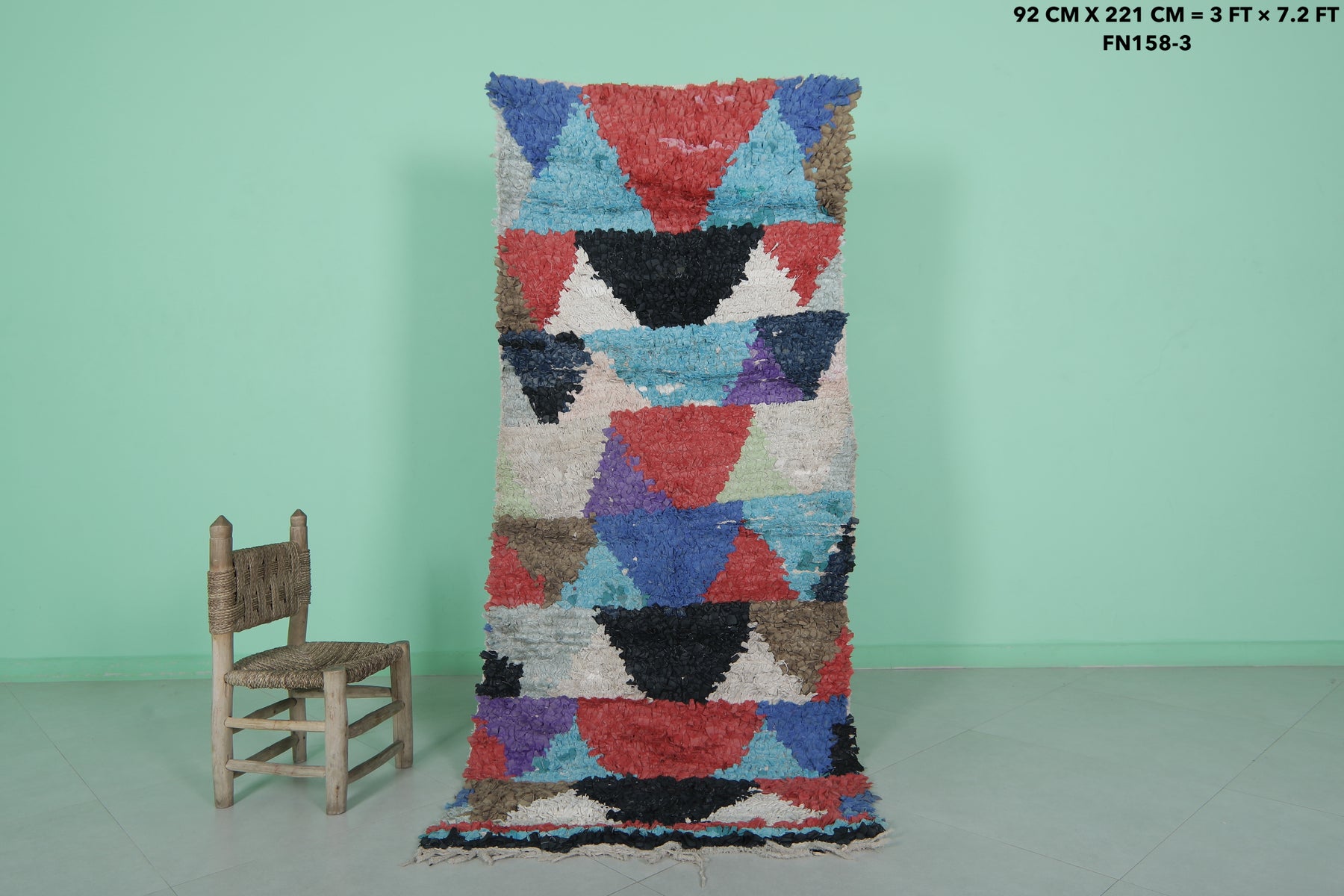 Hand-Knotted Boucherouite Rug - 3x7.2 ft | Vibrant Moroccan Design