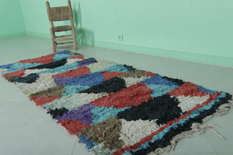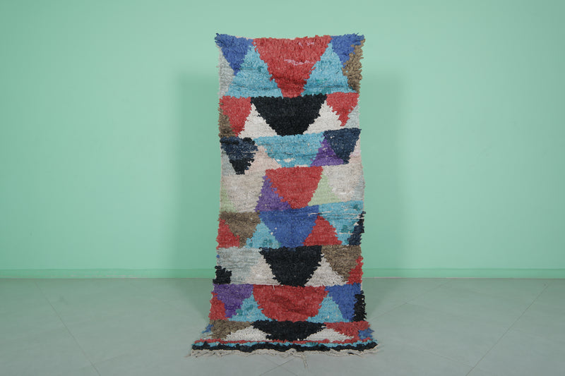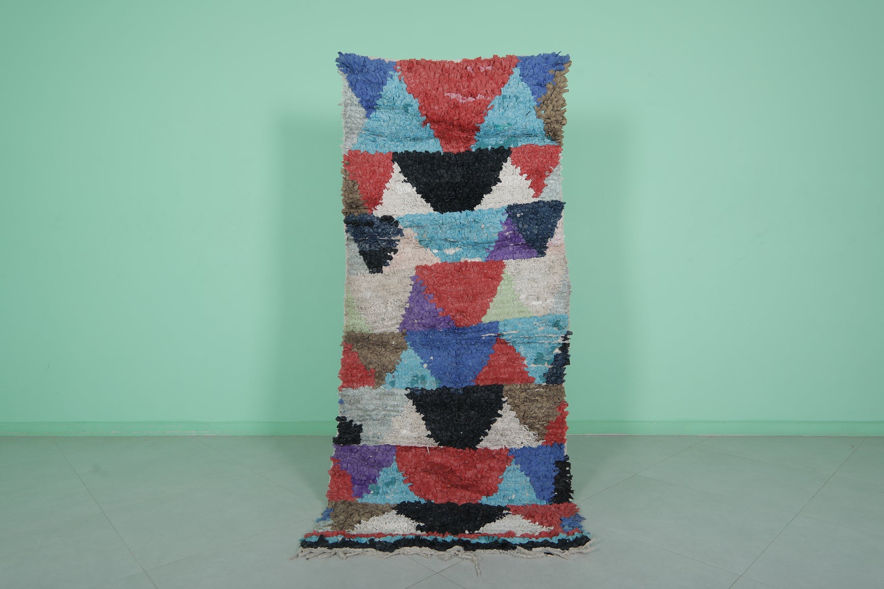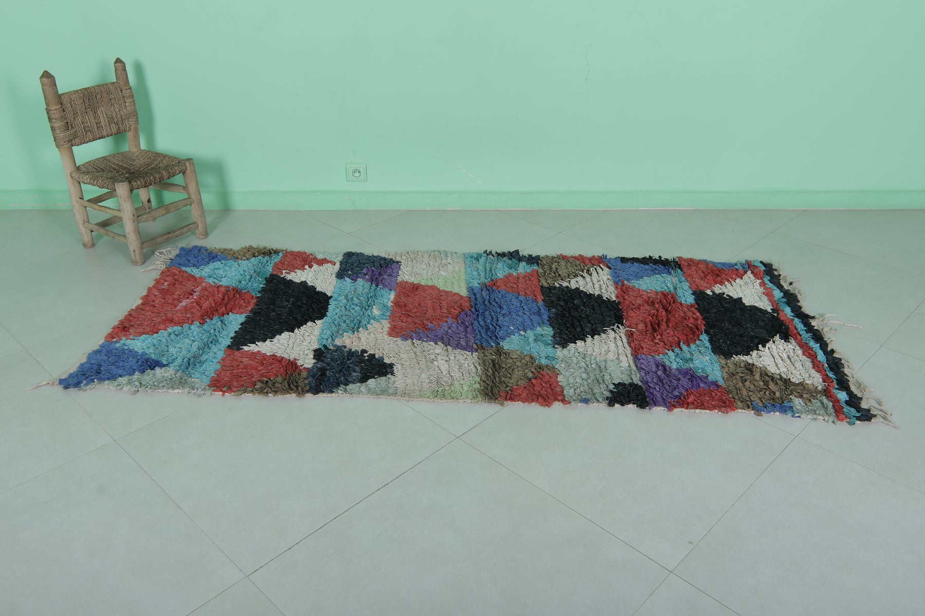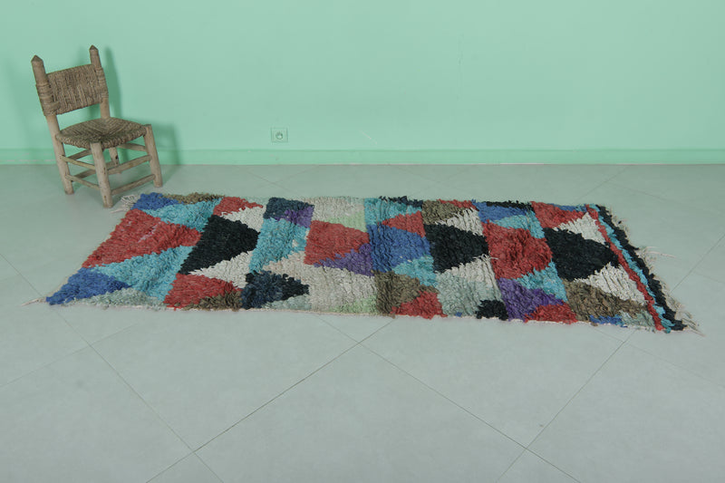 Hand-Knotted Boucherouite Rug - 3x7.2 ft | Vibrant Moroccan Design